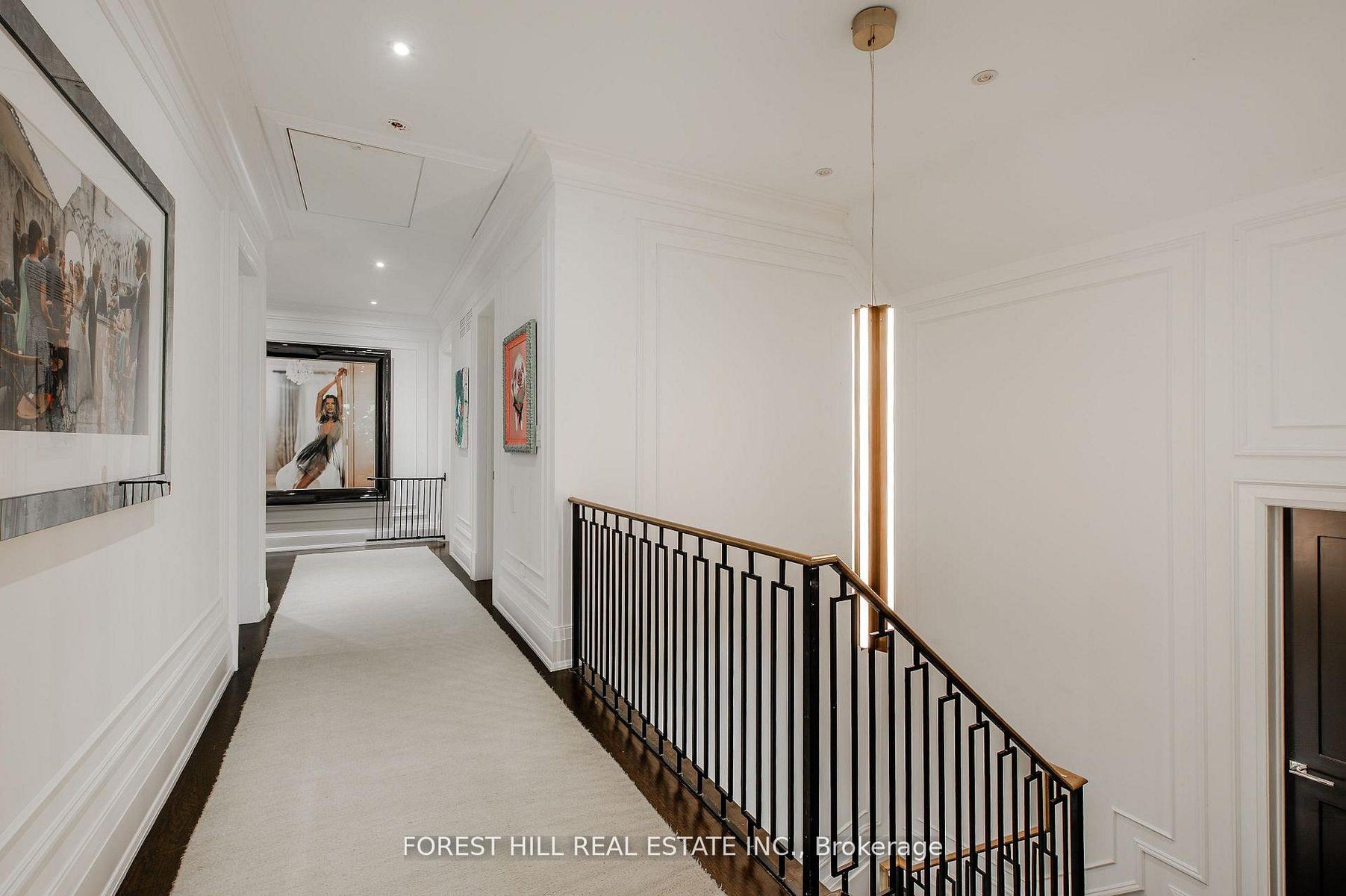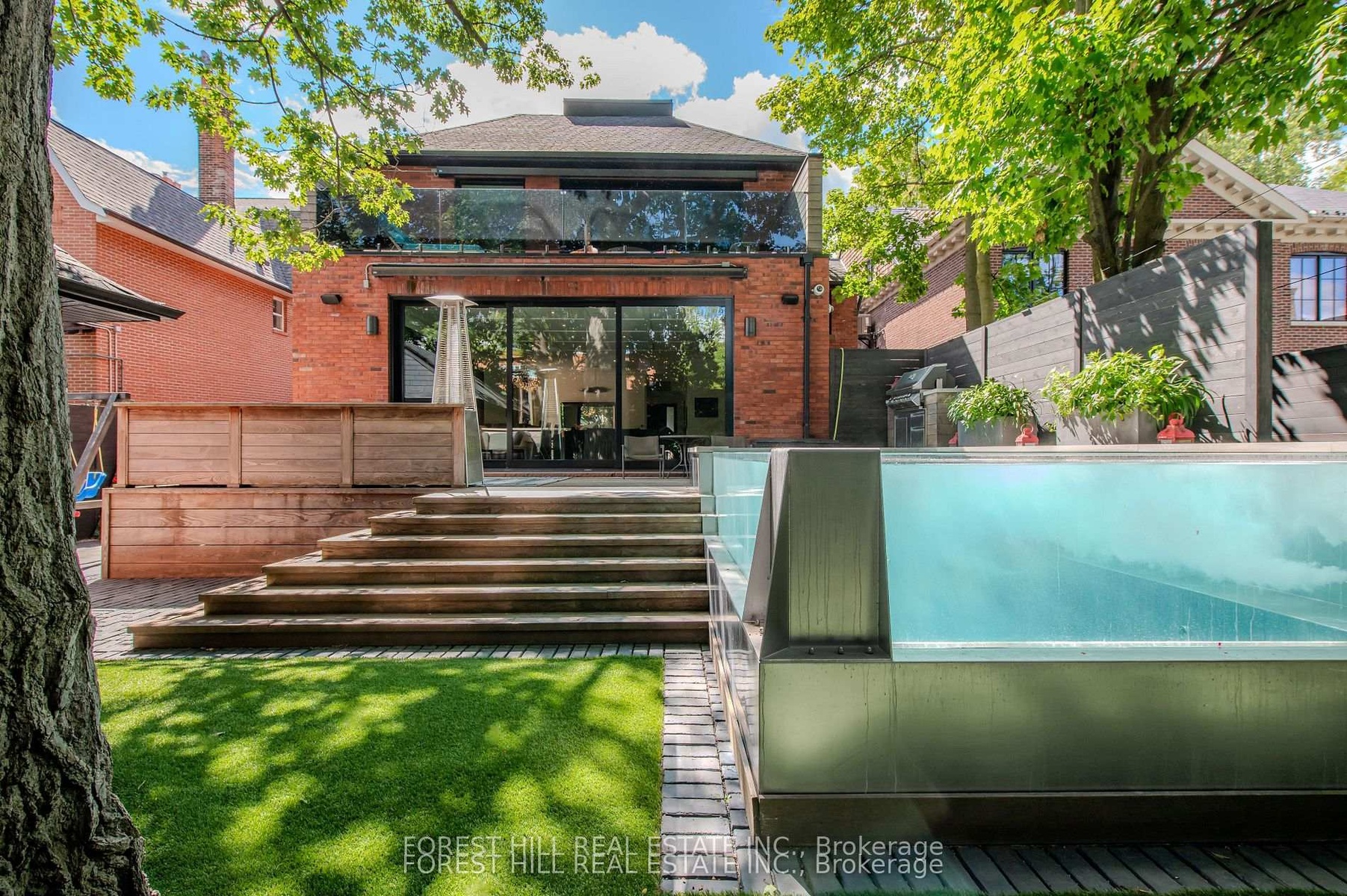 Extraordinary South Hill Landmark Residence. A rare offering of architectural brilliance and historic significance, this storybook red-brick estate was originally built in 1908 and is attributed as the early residence of Lawren Harris, celebrated founder of Canada's famed Group of Seven. Painstakingly rebuilt w/a full-scale reconstruction and rear addition in 2018, followed by an elevated design renovation in 2020 by Sherwood Homes and Connie Braemer Design, this property masterfully blends heritage charm w/modern luxury. Behind its romantic facade lies a sophisticated contemporary interior, curated with exceptional attention to detail. The dramatic foyer showcases a Nero Marquina and Oriental White marble checkered floor beneath a mirrored bronze ceiling, with Macassar ebony archways and custom aged-metal French doors. The living room offers a bespoke black metal fireplace with Nero Assoluto stone and custom window seating, while the jewel-like powder room is wrapped in Phillip Jeffries cork wallpaper. The chefs kitchen by Cando Woodworking features rift-cut ebony-stained oak cabinetry w/brass detailing, a custom metal hood, Belvedere quartzite counters, 10 foot sliding glass doors that connect seamlessly to the outdoors. Ebony-stained mahogany millwork and a sleek black metal mantel enrich the adjoining family room. The primary suite is a private retreat w/custom Sapele mahogany furnishings, a Noir St. Laurent marble fireplace, and a boutique-style walk-in closet. The ensuite is clad in Noir St. Laurent marble with a dramatic backlit feature wall, custom vanity, and integrated sinks. Outdoors, a spectacular acrylic and stainless-steel pool by Elite Pools anchors the private garden oasis, complemented by extensive cedar decking, multiple terraces, and retractable awnings. A heated driveway with custom pavers and illuminated walkway complete this world-class residence. This is more than a home, it is a South Hill landmark, where history, design, and luxury converge.