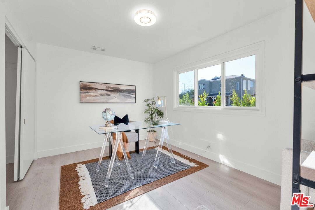 Welcome to this beautifully renovated single-family home in the heart of the highly desirable Mar Vista neighborhood of Los Angeles. Originally built in 1927 and newly renovated, this 3-bedroom, 2-bath residence blends timeless character with modern comfort and a relaxed California lifestyle. Offering approximately 1,553 square feet of living space on a 3,933 square foot corner lot, the home has been thoughtfully updated inside and out. The brand-new kitchen features new cabinetry, countertops, and appliances, including stove, dishwasher, vent hood, and garbage disposal, along with updated lighting and new flooring. Both bathrooms have been fully remodeled with new tubs, tile, vanities, mirrors, and fixtures. New vinyl flooring flows throughout the living areas, complemented by tile in the kitchen and bathrooms, and the home has been freshly painted inside and out. The primary suite is a true highlight and a rare find for the area, featuring two walk-in closets and a spacious en-suite bathroom with modern lighting, designed for comfort, functionality, and everyday ease. A renovated fireplace anchors the living room, while an indoor laundry room conveniently located near the kitchen adds to the home's practical layout. Double-pane windows, central heating and air, and a repaired roof complete the interior features. Outdoor spaces have been completely reimagined to create a low-maintenance, private retreat. The side yard and backyard connect seamlessly into one inviting outdoor area, featuring synthetic turf, a built-in BBQ with refrigerator and trash storage, and mature hedging that provides excellent privacy. The space is ideal for entertaining, relaxing, or enjoying indoor-outdoor living year-round. A detached one-car garage offers future ADU potential for guest space, a home office, or rental income (buyer to verify). The property includes a private driveway, parking at the garage, and ample street parking. A paid off leased solar system provides you with a low monthly energy cost. Ideally located just minutes from freeway access and approximately two miles from the beach, the home is conveniently close to popular shops and restaurants along Venice Boulevard, offering an easy, bike-friendly Westside lifestyle. Nearby schools are highly rated per public sources, and proximity to Silicon Beach and major employment centers adds to the home's appeal. A rare opportunity to own a turnkey, fully renovated home offering style, function, and location in one of the Westside's most sought-after neighborhoods.