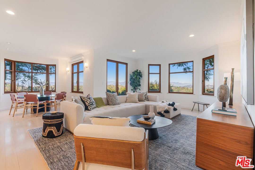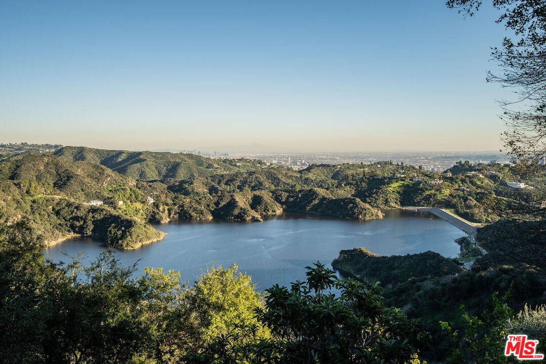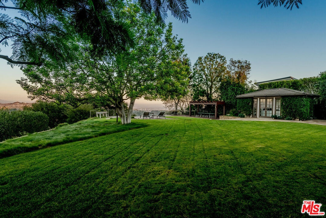 Gated Bel Air Estate perched high above the city, this extraordinary private estate commands sweeping panoramic views of the Bel Air Reservoir, downtown Los Angeles, Century City, the Santa Monica Mountains, and city lights. Situated on approximately 1.3 acres flat lot, the property offers a rare combination of complete privacy, expansive flat grounds, and breathtaking views that evolve throughout the day and night. A circular motor court welcomes you to the residence, accommodating 10+ vehicles and complemented by a three-car garage. The main residence features seven bedrooms and nine bathrooms, thoughtfully arranged within an exceptional floor plan designed for both elegant daily living and sophisticated entertaining. Refined finishes, custom doors and windows, built-in cabinetry, and timeless architectural details are showcased throughout. The entry has architectural details with high ceiling this leads to an expansive living room, floor-to-ceiling pocket doors that open directly to the trellis covered patio, lawn, pool, and reservoir beyond creating an effortless indoor-outdoor lifestyle. The adjacent formal dining room featuring a built-in floating buffet, large windows, and doors that invite natural light and seamless access to the outdoors. The Poggenpohl chef's kitchen features a large center island with seating, Sub-Zero refrigeration, Wolf oven, cooktop, and pantry with full size wine refrigerator with custom cabinetry. The kitchen opens to a sunlit breakfast area, this flows seamlessly into the adjacent family room with lounge area, all framed by expansive windows overlooking the grounds and mountain views. The main living level offers four ensuite bedrooms, two powder rooms, and a laundry room. The second level features three very generously scaled bedroom all ensuite with sitting areas, large windows, custom built-in cabinetry, large closets thoughtfully designed to take in views of the property, trees and mountains. The estate includes a detached guest house with a full kitchen and bath can be used as a studio or office. Outdoors, the estate unfolds into a resort-style setting featuring a sprawling flat lawn, sparkling pool and spa, expansive lounge and entertaining areas, and a full-size basketball court that also functions as a pickleball court. Mature olive and oak trees, lush landscaping, and manicured grounds create a serene, park-like environment with multiple vantage points designed to capture the property's extraordinary views. This rare Bel Air offering seamlessly blends elevated privacy, refinement, comfort and sophistication, delivering an unparalleled lifestyle in one of Los Angeles' most coveted enclaves.
