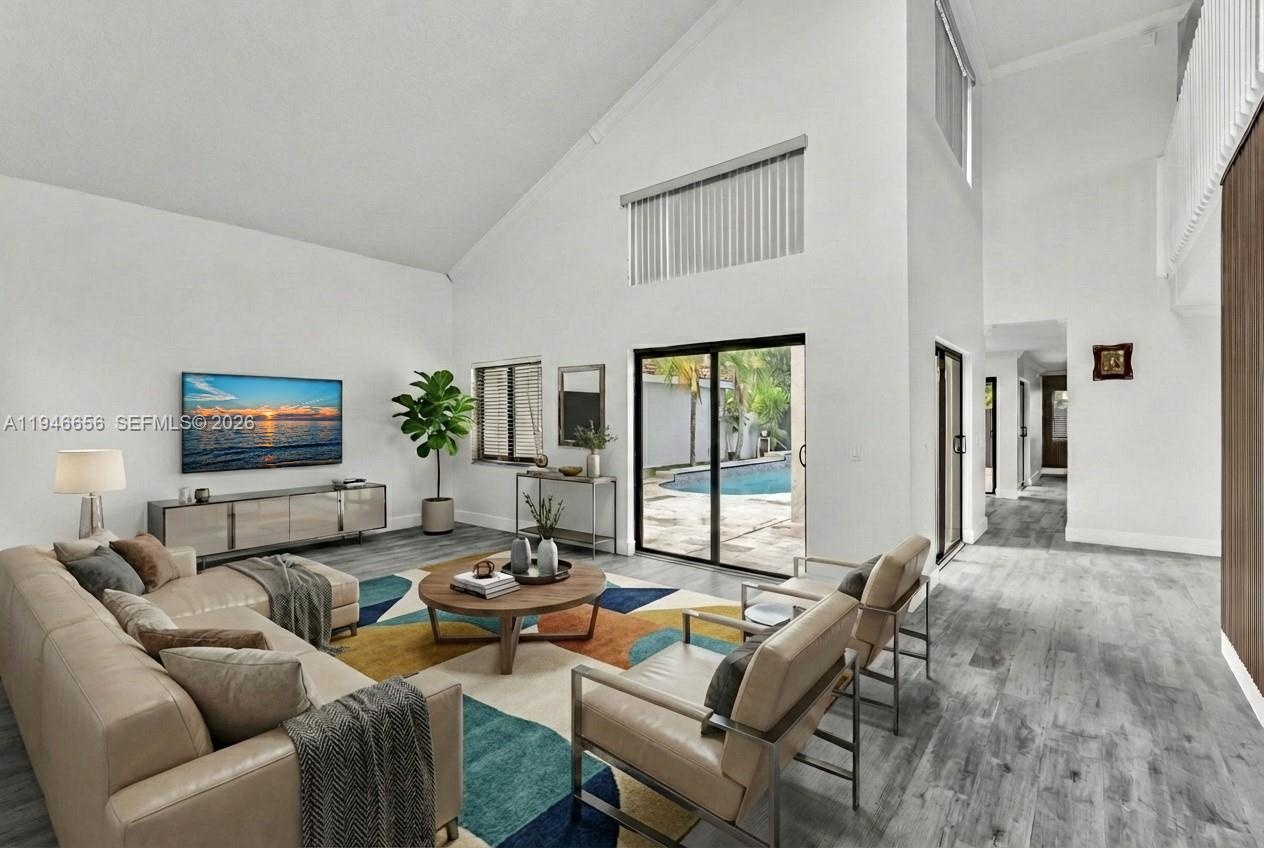 Welcome to The Moors – Fully renovated 2-story dream home in gated community! Located near the Palmetto Expressway, this 4BD/3BA home features a spacious loft, new roof (10-year warranty), impact windows, waterproof laminate flooring, renovated bathrooms, The updated kitchen has quartz counters, wood cabinets, stainless steel appliances, and a pass-through to the living area. One bedroom and full bath are on the first floor; remaining bedrooms and loft upstairs. Oversized master with walk-in closet and luxurious bath with tub and shower. Enjoy 24/7 security, low HOA, and resort-style amenities: clubhouse, gym, guesthouse, and lake great for fishing. Covered patio and pool-sized yard.