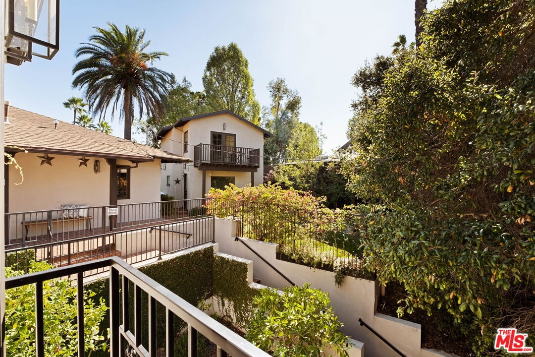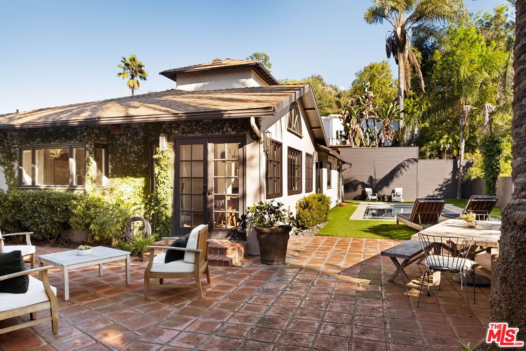 Your own private compound tucked away in Nichols Canyon, this soulful 1956 retreat feels both secluded and deeply connected to the city. Lush greenery, layered landscaping, and thoughtfully placed structures create a sense of calm, privacy, and intention throughout. Inside, vaulted ceilings, rich textures, and warm color palettes set the tone. The main living level includes the living and sitting areas, kitchen, and three bedrooms including the primary suite and flows seamlessly to the outdoors for effortless indoor-outdoor living. The kitchen, anchored by a Lacanche range and Sub-Zero refrigerator, opens to a sunlit dining nook ideal for slow mornings and easy gatherings. The primary suite is its own sanctuary with vaulted ceilings, a statement skylight, French doors with views, and a spa-like bath featuring a soaking tub, oversized shower, and classic black-and-white tile. Secondary bedrooms are bright, versatile, and inviting. Downstairs, a dedicated gym offers and fourth bedroom offers flexible space to suit your lifestyle. Outdoors, a grassy lawn wraps around a large pool and spa with space to lounge and entertain. The separate two-story creative studio/guest house soars with light and energy. Warm, private, and thoughtfully updated, 2770 La Castana is ready for its next chapter.