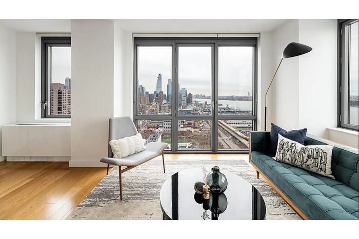 Rising 44 stories above Manhattan's waterfront, The Max redefines riverfront living with panoramic views of Midtown Manhattan and the Hudson River. Through convenience, hospitality, art, architecture, and over 45,000 square feet of modern amenities, The Max offers the best in luxury living. Fitness amenities include a full court basketball gymnasium, weight training, cardio balcony, peloton bikes and a 1,200 square foot yoga room with regularly scheduled yoga classes, exclusive to residents at The Max. Expansive outdoor amenities include BBQ Grills, garden, sundeck, lounge and dining areas. Inside, residents have their pick from a variety of indoor lounges, club rooms and co-working spaces. Indoor amenities also include a screening room, a dog grooming room that offers concierge pet care services, a 2,000 square foot children’s playroom, game tables, art gallery, and social stair.