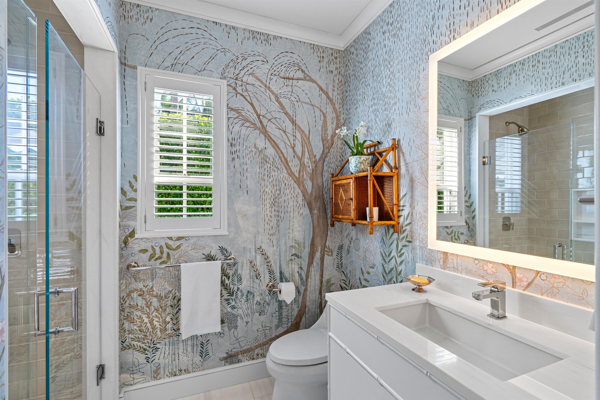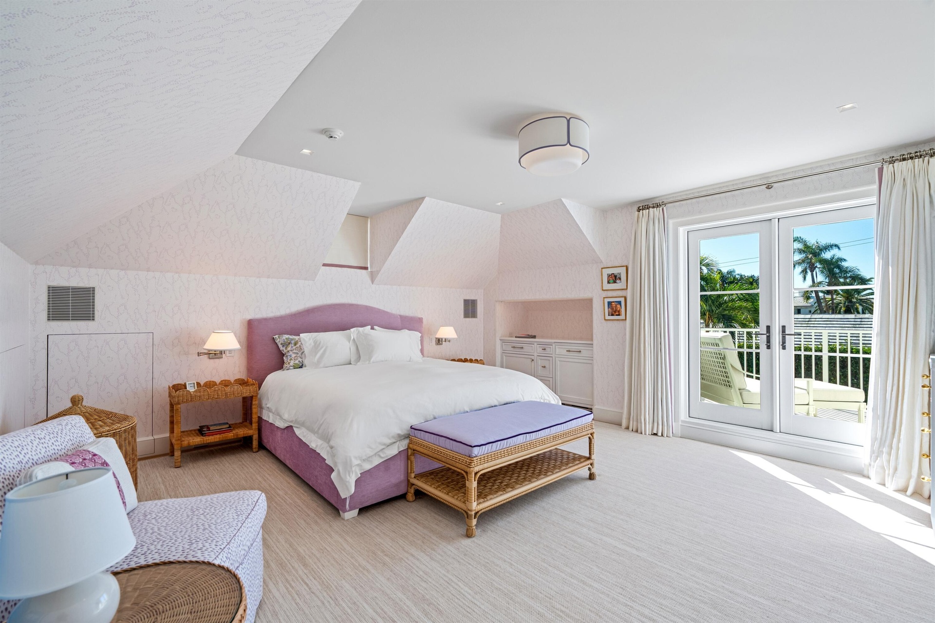During the extensive 3-year renovation, the Sellers spared no expense and collaborated with one of Palm Beach's finest teams of professionals: Fairfax & Sammons Architects, John G. Mitchell Inc, General Construction and McCann Design Group to create a home to the very highest standard. Details include ten-foot ceiling heights, handsome wood-plank flooring, custom built-in French Lime Oak cabinetry, rich paneling, molding-enhanced ceilings, decorator wall coverings, Lutron lighting throughout, and sound wired independently in each room. The living room, epitomizing chic refinement, features a charming Louis XIV limestone fireplace, while three sets of French doors lead out to the pool and dining loggia. The sleek chef's kitchen pairs form and function, finished with contemporary, custom cabinetry, stone counters and backsplashes, top-of-the-line appliances, and an adjoining breakfast area set within an enchanting bay window. The split bedroom plan places the first-floor primary suite in a wing of its own for total privacy. Luscious greenery and well-manicured grounds are hallmarks of this enchanting property. An old-brick motor court approach creates a distinguished street-side impression, and for outdoor living, an alfresco dining area is next to the sun-splashed pool, while an intimate private patio with seating is tucked away in the charming east garden. The home is complete with a full house generator.
