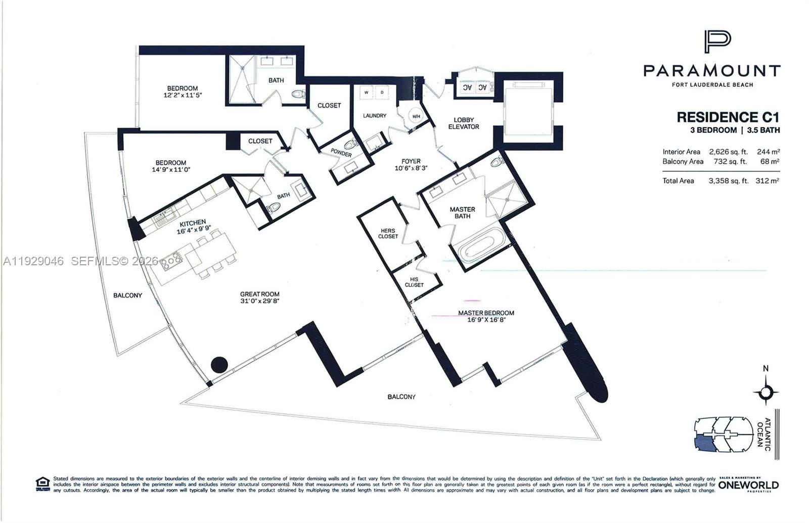 Welcome home to your South-Facing Crown Jewel in the Paramount! Exit your private elevator into a sanctuary of curated coastal elegance. With over 3,350 Total SFT & 2 balconies, Residence 705 is one of only 85 boutique homes in the prestigious Paramount, offering an unrivaled vantage point where the Atlantic Ocean, Intracoastal, and city skyline converge. What distinguishes this property is its coveted southern exposure, bathing the home in a perpetual arc of light from sunrise to sunset. This rare orientation creates a natural wind-shield, transforming one of the largest private balconies on the beach into a serene, year-round outdoor salon for alfresco dining and starlit entertaining. Bespoke Artistry & Intuitive Design refined with over $300,000 in custom upgrades. The epicurean kitchen is a masterwork of Italkraft cabinetry, Quartz, Wolf, Sub-Zero, and Bosch suite with dedicated wine preservation. A stunning centerpiece wet bar with a Scotsman ice system anchors the social space, while smart-lighting & acoustics allow for effortless sensory mastery. An Exclusive Private Club Lifestyle is what you deserve as you indulge in private oceanfront dining at the building’s signature restaurant Truluck's, infinity-horizon pool, retreat to the wellness center & yoga studio. The 24-hour Porte-cochere ensures your beach experience is seamless, Nestled against the protected 35-acre Bonnet House Estate. NO assessments, furniture package negotiable. Simply write a check, unpack & enjoy