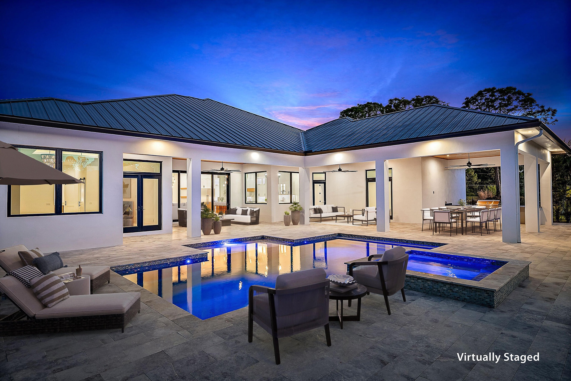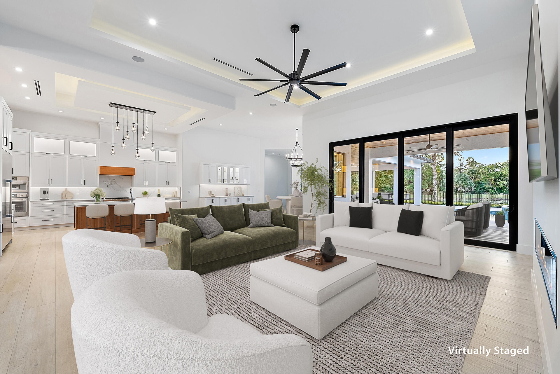 Set across 6.51 acres within a private estate community of spacious homesites and custom residences, this newly built home offers privacy, scale, and presence. The home features a modern floor plan with a clean, timeless design. Multiple interior spaces flow to a large covered and open-air outdoor patio with a summer kitchen, built-in speakers, and a heated saltwater pool & spa for seamless indoor-outdoor living. The rear grounds overlook a tranquil pond, with plenty of surrounding green space. A detached four-bay garage with lift-height ceilings connects via breezeway. Flexible for a full equestrian estate or private retreat, the property also allows for a guest quarters or private office. Short hacking distance to the 30-acre community equestrian park, 32 miles of bridle trails, and nearby stables, and just miles to shopping, dining, golf, and beaches. Additional features include full-house reverse osmosis (RO) water system, buried propane, generator hookup, spa-style primary suite, all ensuite secondary bedrooms, dedicated office, and a spacious media/recreation room. Full details list available.