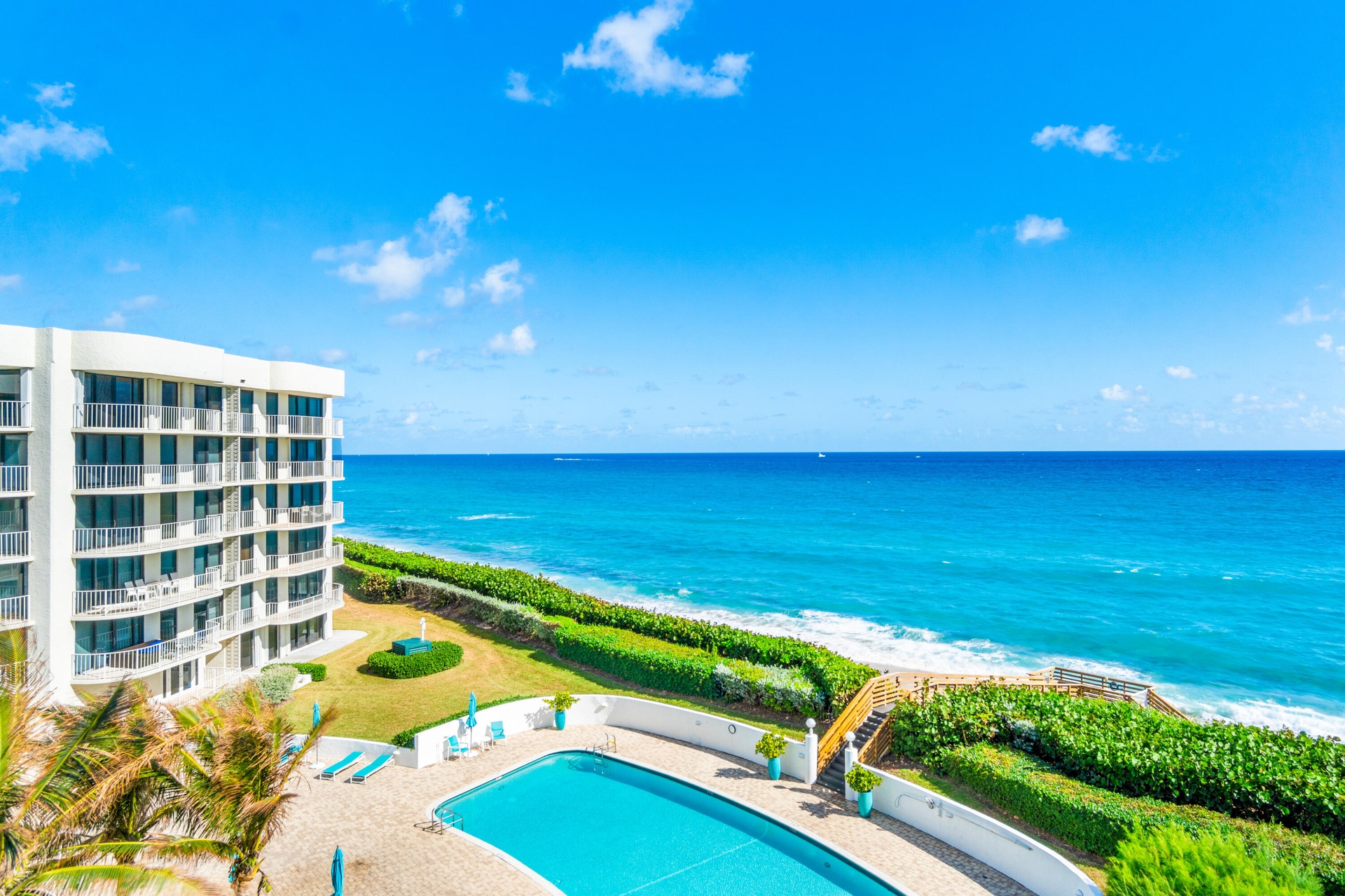 Sweeping, direct ocean views wrap around to the Intracoastal from this tastefully renovated 2b 2.5 ba apartment. Floor-to-ceiling impact sliders in every room open to East and South terraces, perfect for enjoying sunrises, sunsets, and ocean breezes. The open-concept, custom chef's kitchen complements the modern design. The primary suite features a spa-like bath and two large walk-in closets. Includes a new guest bath, powder room, and laundry room. This oceanfront building offers top amenities: doorman, fitness center, garage parking, two tennis courts, saline pool with a serene deck, and new steps to the wide beach. Ideally located near five-star hotels, Palm Beach Par 3 Golf, Worth Avenue, fine dining, shopping, and cultural attractions.