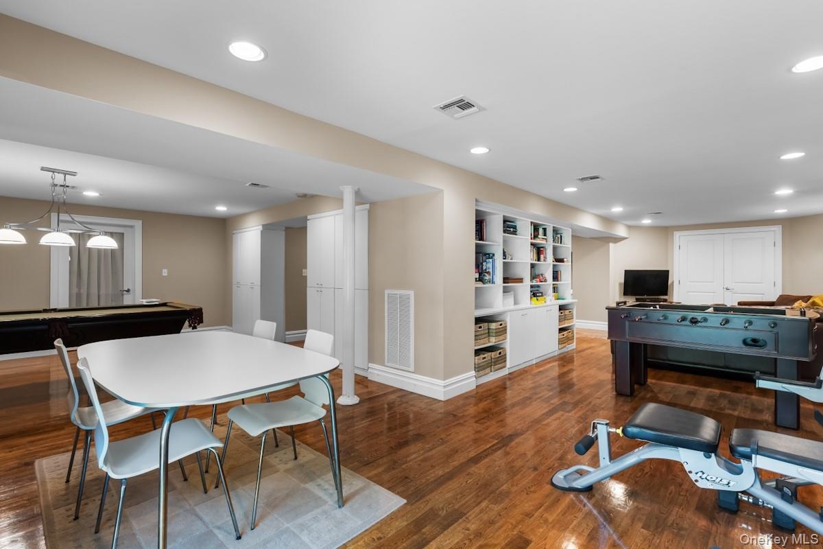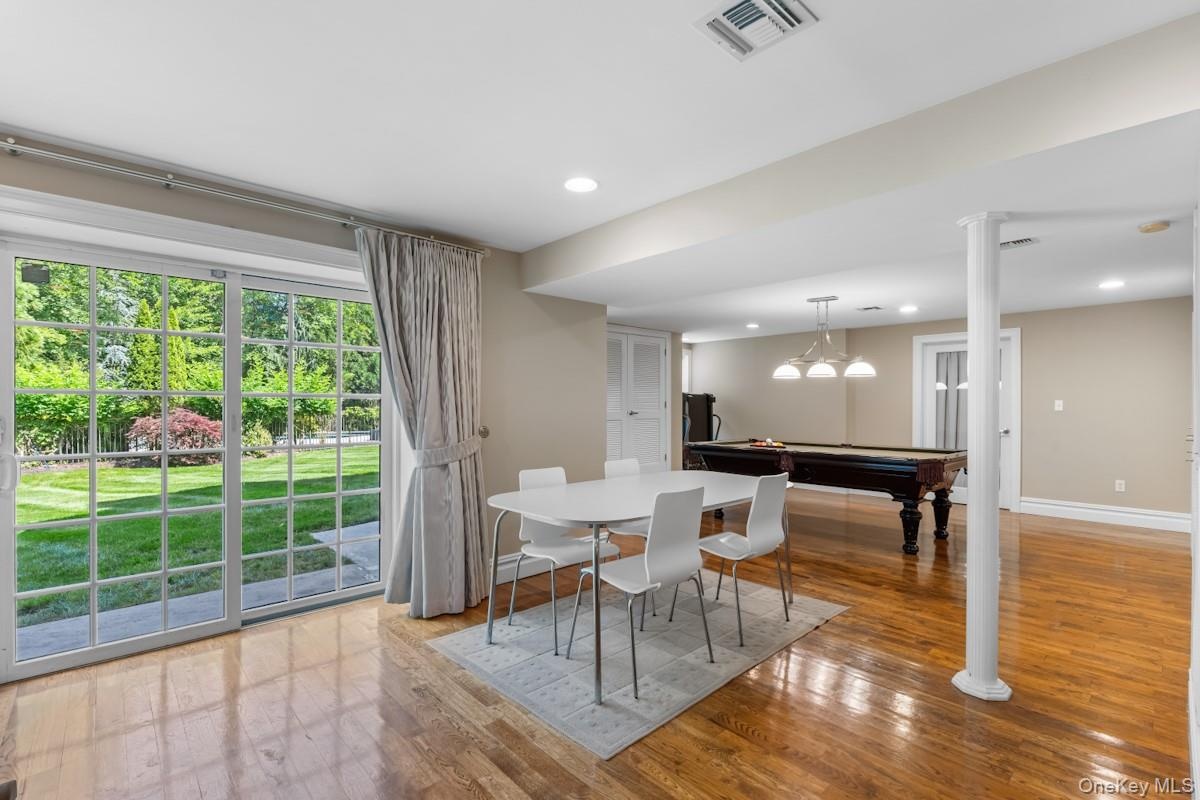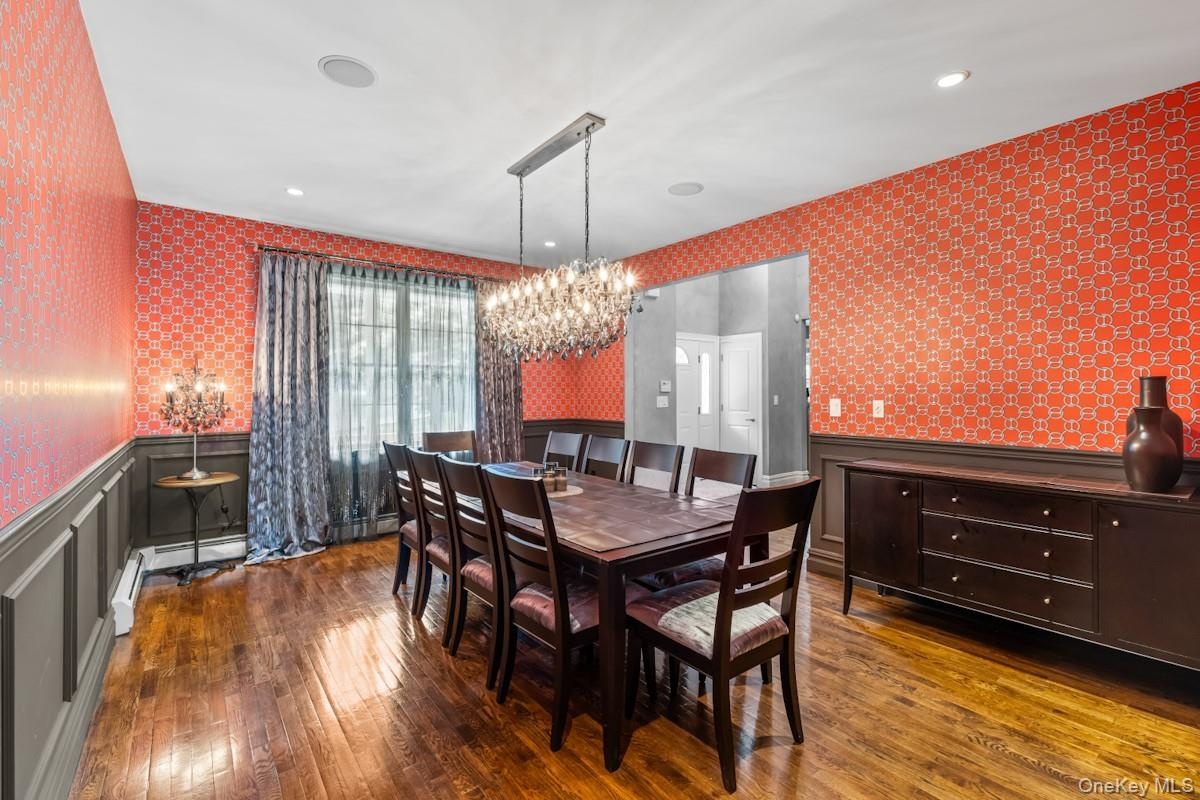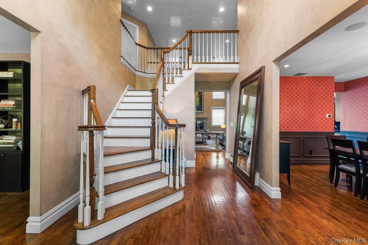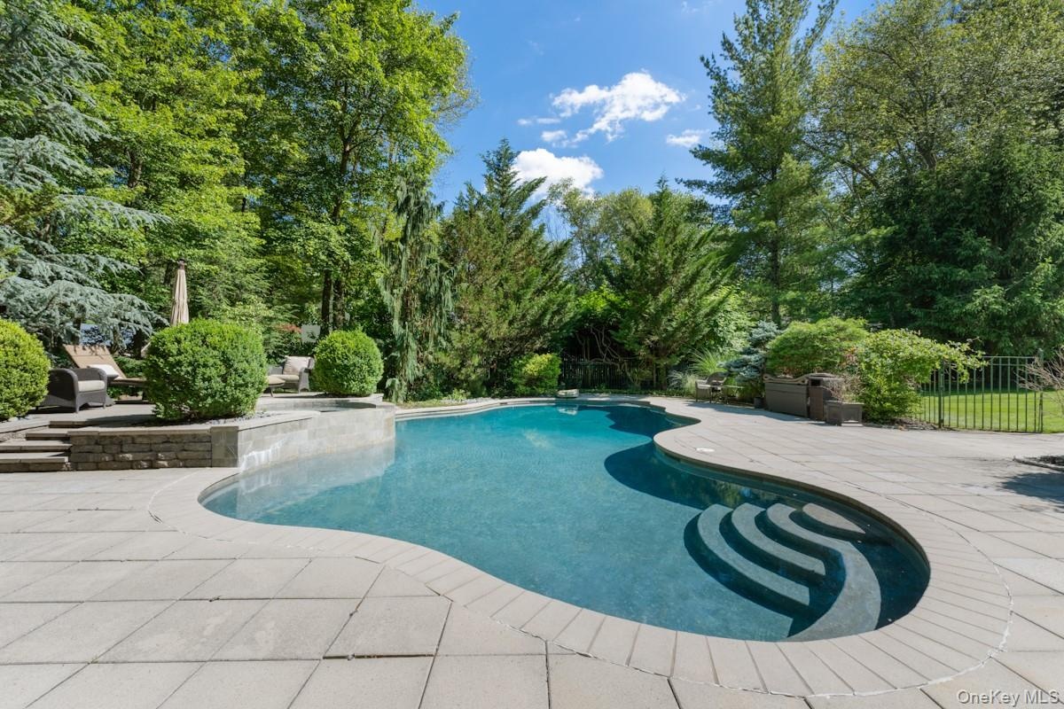 This exceptional property in the Village of Chestnut Ridge, NY, borders Pearl River, NY, and Montvale, NJ, making it a commuter’s dream just minutes from major roadways to NYC and New Jersey. Situated at the end of a quiet cul-de-sac on 1.5 acres of park-like property, this beautiful Quality Custom-Built Colonial offers approximately 6,000 square feet of luxurious living space with Hermes wallpaper throughout and gleaming hardwood floors. The grand foyer leads to an expansive main level featuring a formal living room, formal dining room, a two-story family room with a cozy gas fireplace, and a private office/den with a full bathroom and laundry room. The chef’s kitchen is complete with cherry cabinets, granite countertops, slate tile floors, a center island, and opens to a solarium featuring a pellet stove and deck access. The second floor hosts a grand luxurious primary suite with vaulted ceilings, three walk-in closets, and an en-suite bathroom with a soaking tub, alongside three additional large bedrooms and a main bathroom. The finished lower level provides further comfort with recreation rooms, gaming rooms, an additional office/den/guest, storage and access to the backyard. The outdoor oasis is designed for entertaining, featuring a resort-style heated pool, a spa, and an outbuilding with a deck, reclaimed wood pergola, recreation room and changing areas. The 1.5 acres offers the opportunity to expand by bringing your ideas to reality. Located just 2 miles from Bergen County and 30 miles from NYC, this home is ideally positioned near shopping, hiking trails, parks and Woodbury Common.