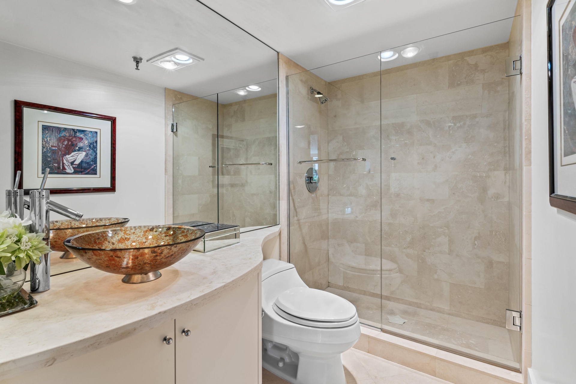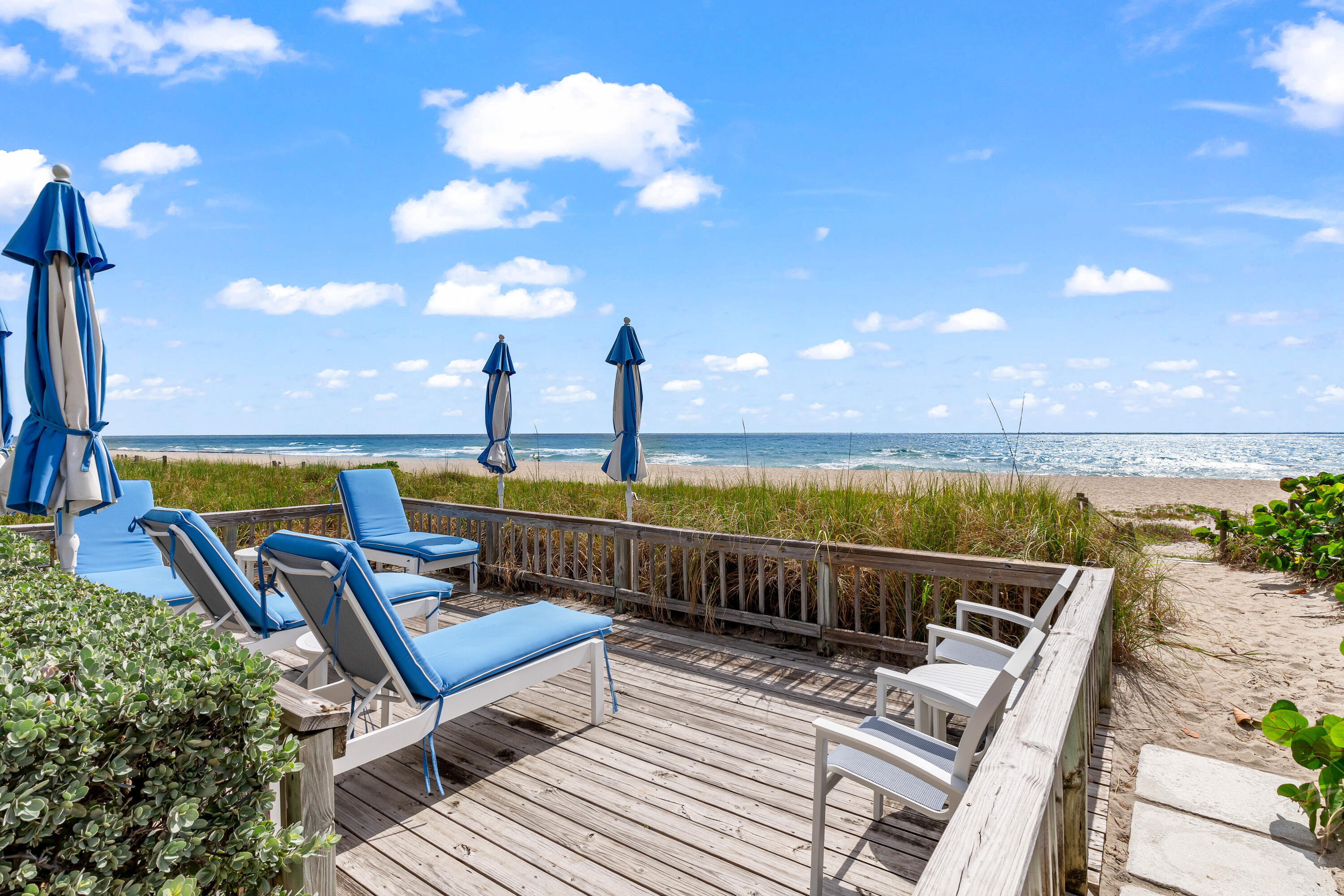 Spacious 3 bedroom, 3 bathroom Palm Beach Stratford garden apartment with a 885 sqft terrace to relax, entertain and enjoy the ocean breezes. Located in a prestigious building with only 42 luxury units, this total high end, modern renovation features floor to ceiling impact doors leading from every room to the terrace surrounded by tropical landscaping, offering living like a private oceanfront home with direct access to the pool and spa, Oceanfront sun deck, and wide beach and Ocean. Other features include marble floors, luxurious baths, and custom chef's kitchen with top of the line appliances and fixtures. Amenities include 24 hour doorman, fitness center, tennis courts, community room, and 2 space garage parking. Located close to Five Star hotels and Palm Beach Par 3 Golf Course with clubhouse restaurant. Short drive to Worth Avenue and cultural centers.