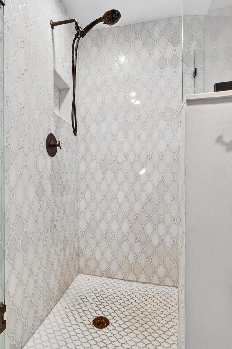 The kitchen is in a Mediterranean style, as well. It has all the amenities for a chef, such as plenty of prep and storage space, a gas range, and pantry, all of which is ideal for both everyday cooking as well as entertaining.