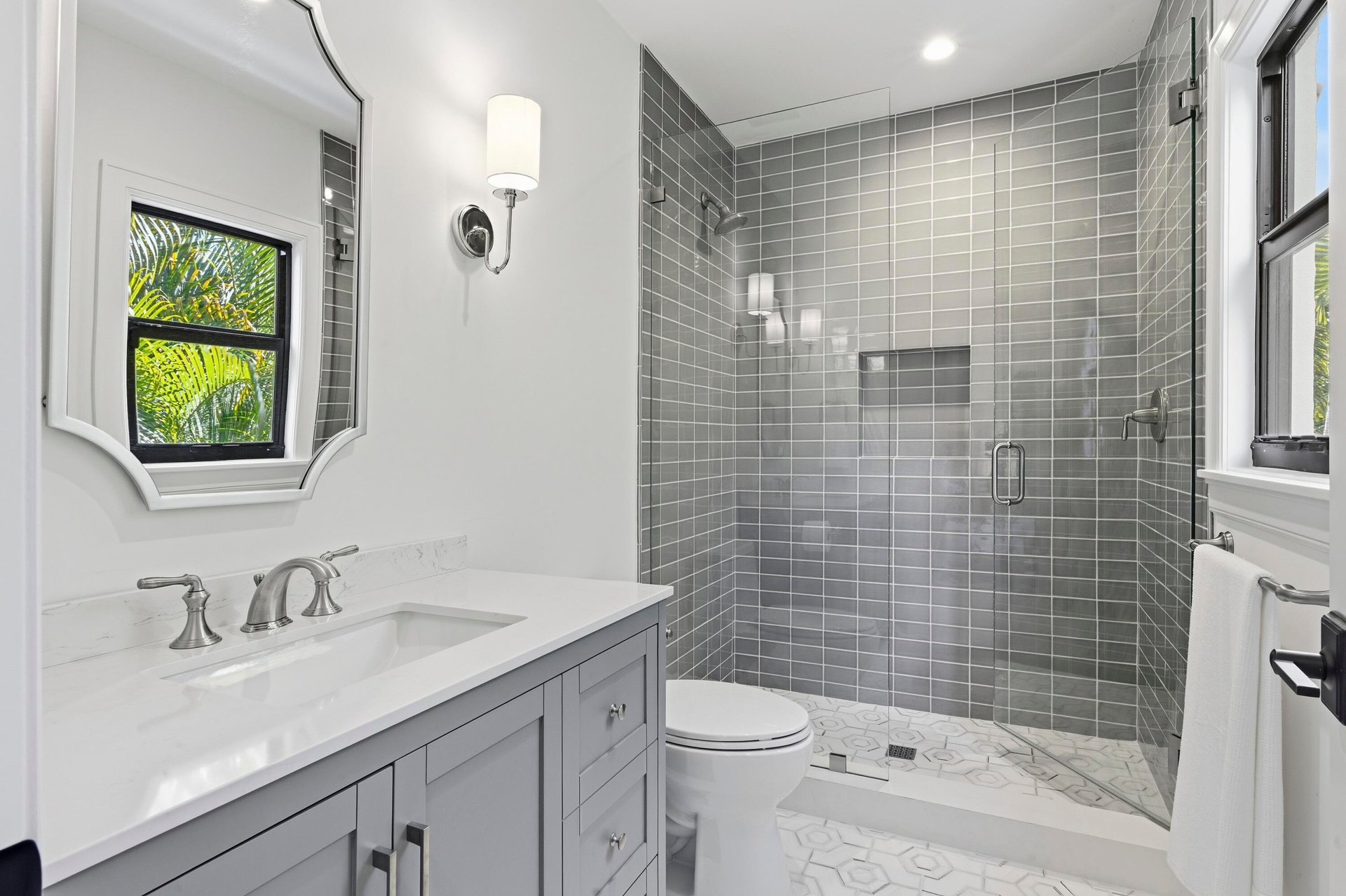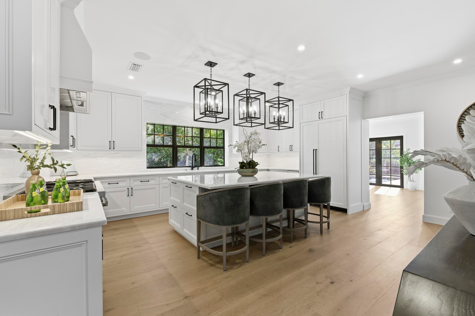 Step into a world where elegance and Spanish-Mediterranean romance come together in perfect harmony. Originally built in 1926 and masterfully reimagined with a full renovation in 2025, this architectural jewel invites you through lush, manicured landscaping into a private Chicago-brick courtyard centered around a shimmering saltwater plunge pool with a tranquil water feature, a serene introduction to the timeless beauty within. Inside, the foyer welcomes you with a signature spiral staircase. At the focal point of the formal living room an original wood burning fireplace and expansive sliders that frame the courtyard and bathe the interiors in natural light. Adjacent, a warm and intimate den/office offers a quiet retreat. The formal dining room is a masterpiece of craftsmanship, featuring a custom built-in banquette, wall-to-wall cabinetry with pull-out drawers, and a floor-to-ceiling wine cooler, creating a setting worthy of unforgettable evenings. The kitchen exudes timeless sophistication with marble countertops, a full slab backsplash, and a Thermador stainless-steel appliance suite, including a 6-burner gas range with griddle, an exquisite stage for the true chef. A seamless transition leads to the inviting family room and club room, both opening to the home's rear courtyard, where a summer kitchen and roll-down phantom hurricane screens set the tone for effortless indoor-outdoor living. Around the property, mature Calophyllum trees form a natural privacy hedge, enveloping each courtyard in a world of its own. Even the lanai reflects uncompromising attention to detail, showcasing Pecky cypress tongue-and-groove ceilings that add texture, warmth, and architectural soul. A versatile bonus/storage room provides additional custom cabinetry, workspace, laminate floors, and a mini-split system, accessible from both the summer kitchen and side courtyard. Ascending to the second floor, you'll find four beautifully appointed ensuite bedrooms, each with its own palette of mosaic and marble tile selections, giving every space a unique sense of artistry and refinement. A charming sitting room/loft with a private balcony completes the upstairs haven, an intimate perch overlooking the estate's tranquil courtyards. The primary suite is a true retreat with an oversized private balcony, spa inspired bathroom and a custom walk-in closet. This redesigned 1926 treasure is more than a home; it is an escape into another world, where history, craftsmanship, and Mediterranean romance blend into an unforgettable living experience. Perfectly positioned within walking distance of Flagler Drive and the Intracoastal Waterway, this home offers a rare opportunity to own a piece of West Palm Beach history reborn for todays lifestyle.