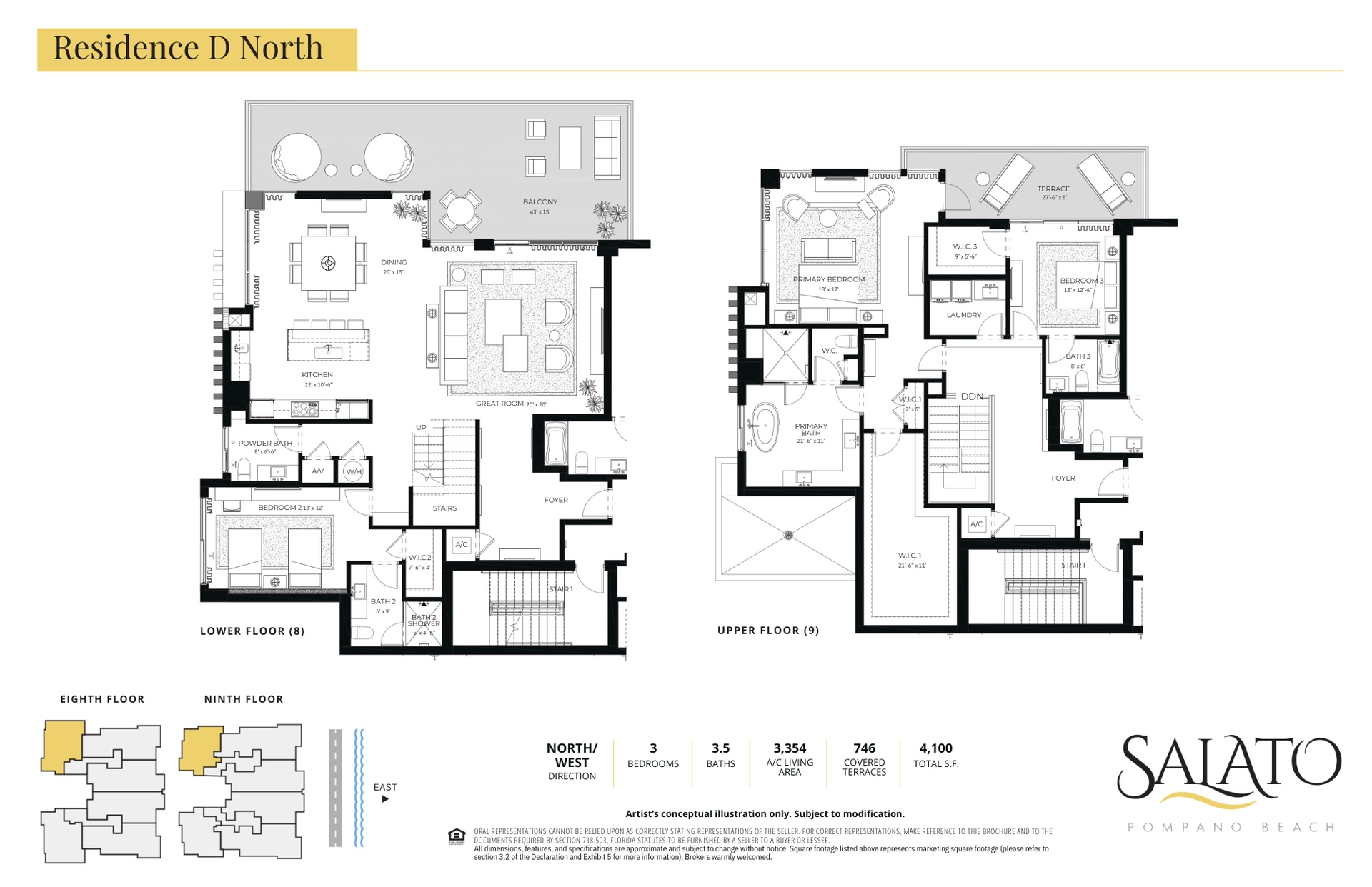 Indoor-Outdoor living at its best! Discover your exclusive oasis in this stunning new construction oceanside condominium, boasting spacious 3 bedroom, 3 1/2 bathrooms units. Experience unparalleled views of the Atlantic Ocean with floor to ceiling high-impact windows and sliders, bathing each residence in an abundance of natural light. Expansive outdoor terraces extend the living space dramatically, offering substantial usable square footage, on average 14x20 feet, ideal for elevated indoor-outdoor living. Designed to comfortably accommodate full outdoor furniture groupings and dining areas, these terraces provide a rare opportunity for seamless alfresco dining with friends and family or peaceful enjoyment of the morning sunrise. Culinary enthusiasts will delight in the gourmet kitchen featuring top-of-the-line Wolf & Sub-Zero appliances, complemented by exquisite Italian cabinetry, that add a touch of sophistication to every meal. With only 40 exclusive units, four dedicated semi-private elevators, self-parking spots as well as valet services, and over 20,000 square feet of exceptional amenities, on par with a 5-star resort, Salato residences provides the perfect blend of privacy and luxury. Expected Completion April 2026. Sales Gallery located at 3200 E. Atlantic Blvd, Pompano Beach.