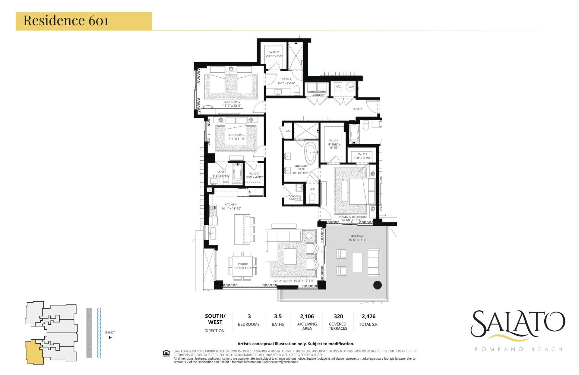 Indoor-Outdoor living at its best! Discover your exclusive oasis in this stunning new construction oceanside condominium, boasting spacious 3 bedroom, 3 1/2 bathrooms units. Experience unparalleled views of the Atlantic Ocean with floor to ceiling high-impact windows and sliders, bathing each residence in an abundance of natural light. Expansive outdoor terraces extend the living space dramatically, offering substantial usable square footage, on average 14x20 feet, ideal for elevated indoor-outdoor living. Designed to comfortably accommodate full outdoor furniture groupings and dining areas, these terraces provide a rare opportunity for seamless alfresco dining with friends and family or peaceful enjoyment of the morning sunrise. Culinary enthusiasts will delight in the gourmet kitchen featuring top-of-the-line Wolf & Sub-Zero appliances, complemented by exquisite Italian cabinetry, that add a touch of sophistication to every meal. With only 40 exclusive units, four dedicated semi-private elevators, self-parking spots as well as valet services, and over 20,000 square feet of exceptional amenities, on par with a 5-star resort, Salato residences provides the perfect blend of privacy and luxury. Expected Completion April 2026. Sales Gallery located at 3200 E. Atlantic Blvd, Pompano Beach.