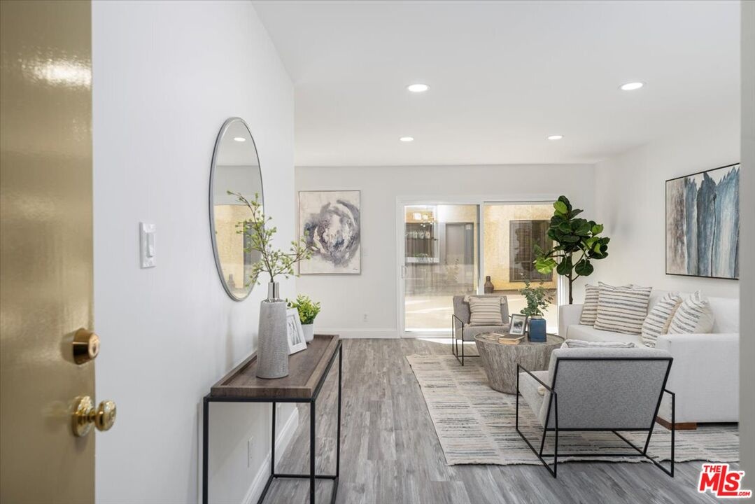 Here's your opportunity to acquire a beautifully renovated, design-forward condo in a prime location that delivers both luxury and everyday convenience. Welcome to Casa Palmero, where this exceptional one-bedroom, one-bathroom residence offers 784 square feet of thoughtfully curated living space. Every inch of the home has been upgraded with high-end finishes and modern sophistication. Waterproof vinyl wood flooring and recessed lighting set a sleek, contemporary tone, while new dual paned windows bathe the interior in natural light. LED lighting throughout allows you to tailor the ambiance to any mood. The open-concept layout effortlessly connects the living and dining areas, creating an inviting environment for entertaining or relaxing in style. A standout feature of the living room is the custom built-in bar, complete with a dual-sided beverage cooler wine storage on one side and space for snacks or drinks on the other. The kitchen is a chef's delight, showcasing quartz countertops, stainless steel appliances, and soft-close cabinetry that blend elegance with everyday functionality. The spa-inspired bathroom features nickel-finished waterfall fixtures and an antifog illuminated mirror, adding a touch of luxury to your daily routine. Step outside to an expansive patio that extends six feet into the courtyard and spans the full length of the unit offering considerably more outdoor space than upper floor balconies and perfect for lounging or dining al fresco.The generously sized bedroom provides a peaceful retreat, and the secure building includes two tandem parking spaces for added convenience. Residents also enjoy access to premium amenities, including two gyms, a sauna, and a swimming pool and spa currently being refreshed for future enjoyment. Nestled at the base of Runyon Canyon, this home offers the ideal blend of tranquility and urban energy. Don't miss the chance to own a sophisticated sanctuary in one of LA's most desirable neighborhoods.
