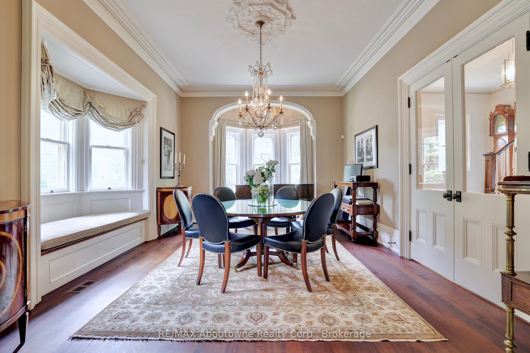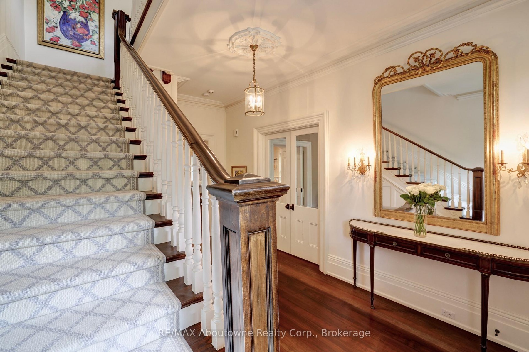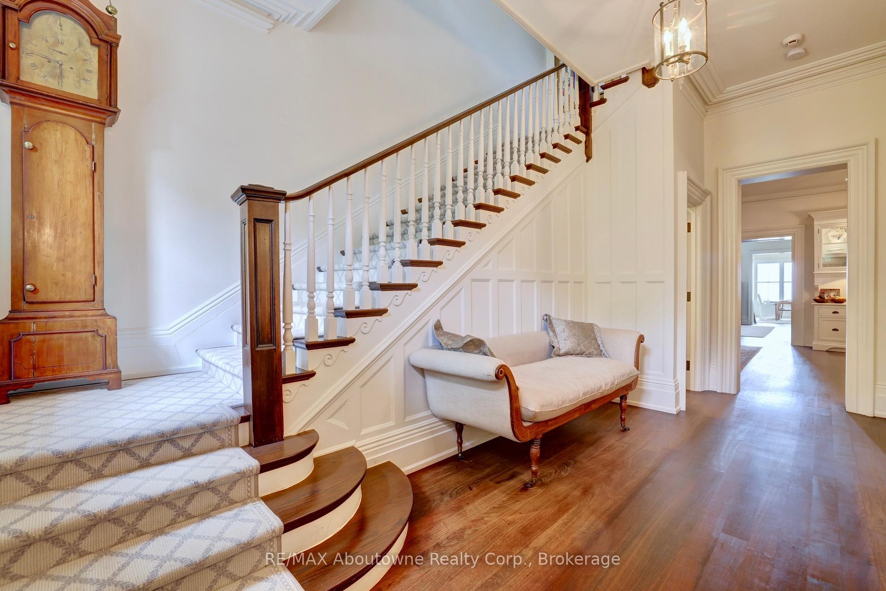 Nestled in the heart of downtown Oakville, this magnificent historical home offers unparalleled charm and elegance, combined with modern amenities. Spanning over 8,000 square feet, the expansive layout provides both grandeur and comfort, perfect for family living or entertaining on a grand scale. With stunning views of the sparkling waters of Lake Ontario, every room is designed to maximize the beauty of its lakeside setting. The home boasts high ceilings, intricate architectural details and walnut hardwood floors, blending timeless craftsmanship with contemporary design. The private lush yard with 104 feet of frontage is a rare gem, providing a serene outdoor oasis with mature trees and ample space for outdoor activities or quiet relaxation. Whether you're enjoying a morning coffee while gazing at the lake or hosting a summer gathering, the outdoor space is as inviting as the interiors. The property's prime location puts you just steps from Oakville's charming downtown, offering convenient access to world-class dining, shopping, and cultural attractions, while still providing the tranquility of lakeside living. With its rich history, extraordinary space, and unbeatable location, this is a once-in-a-lifetime opportunity to own a piece of Oakville's heritage.