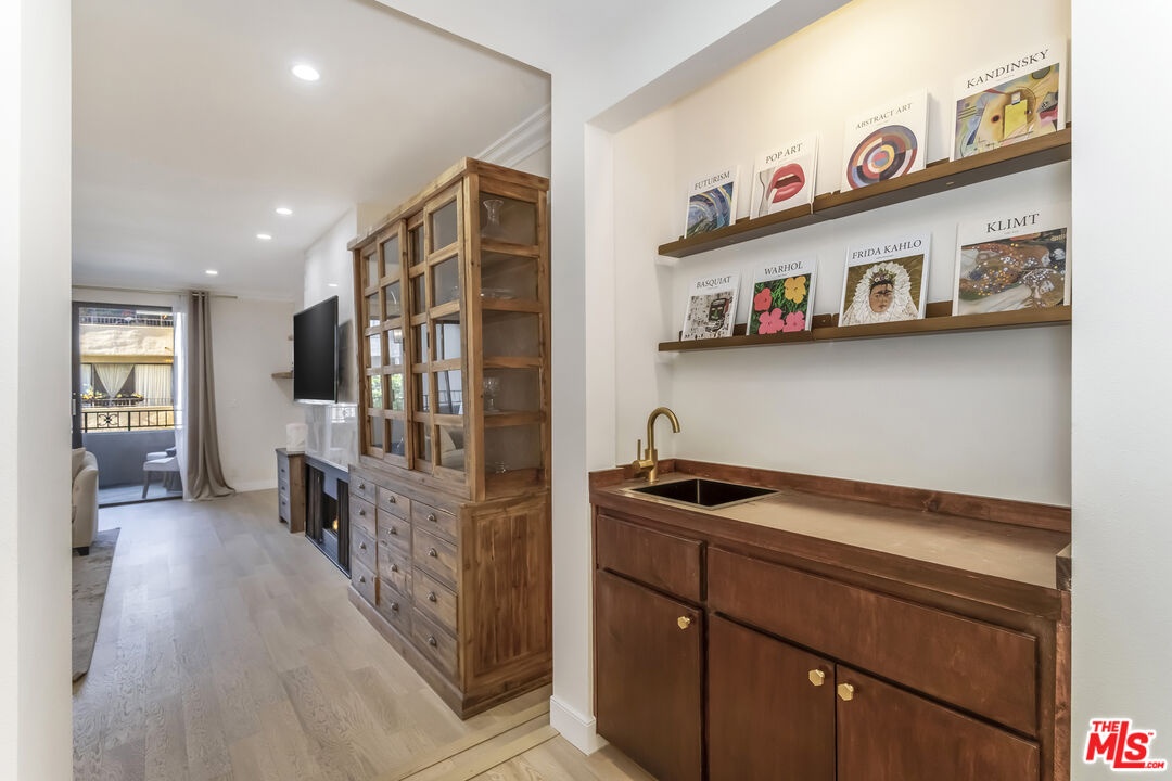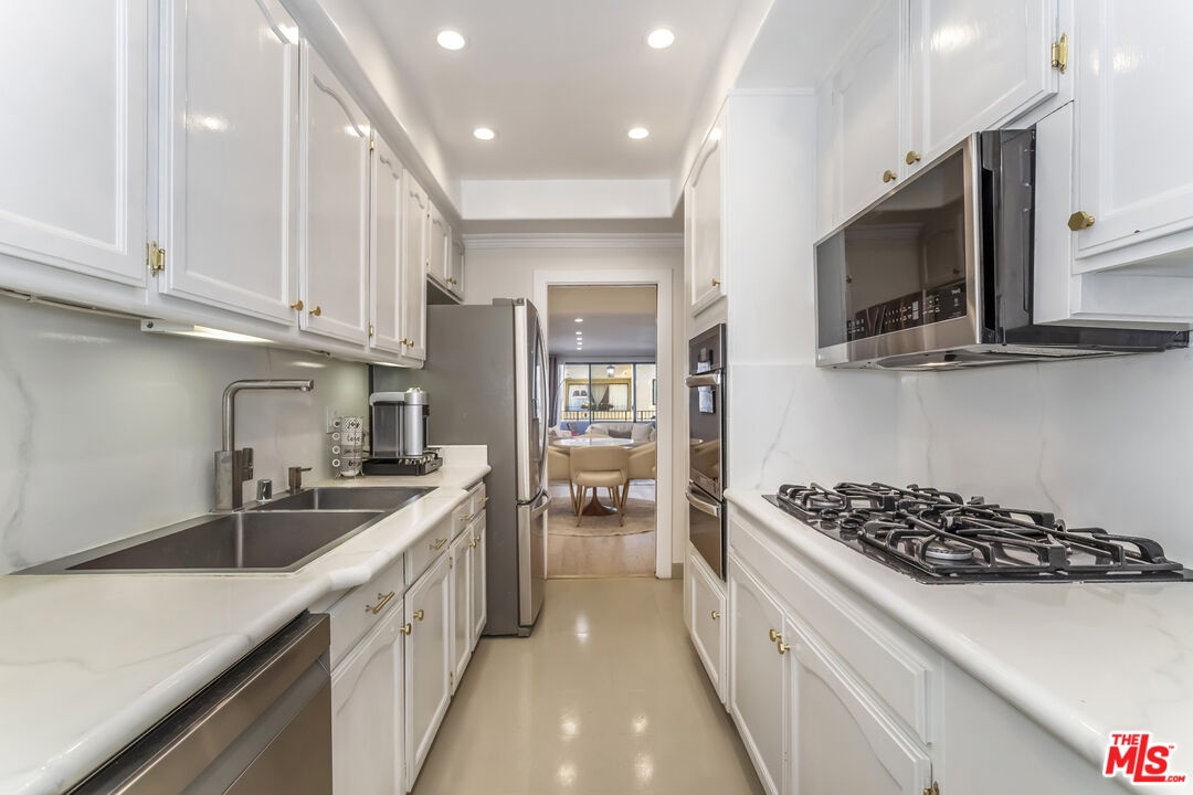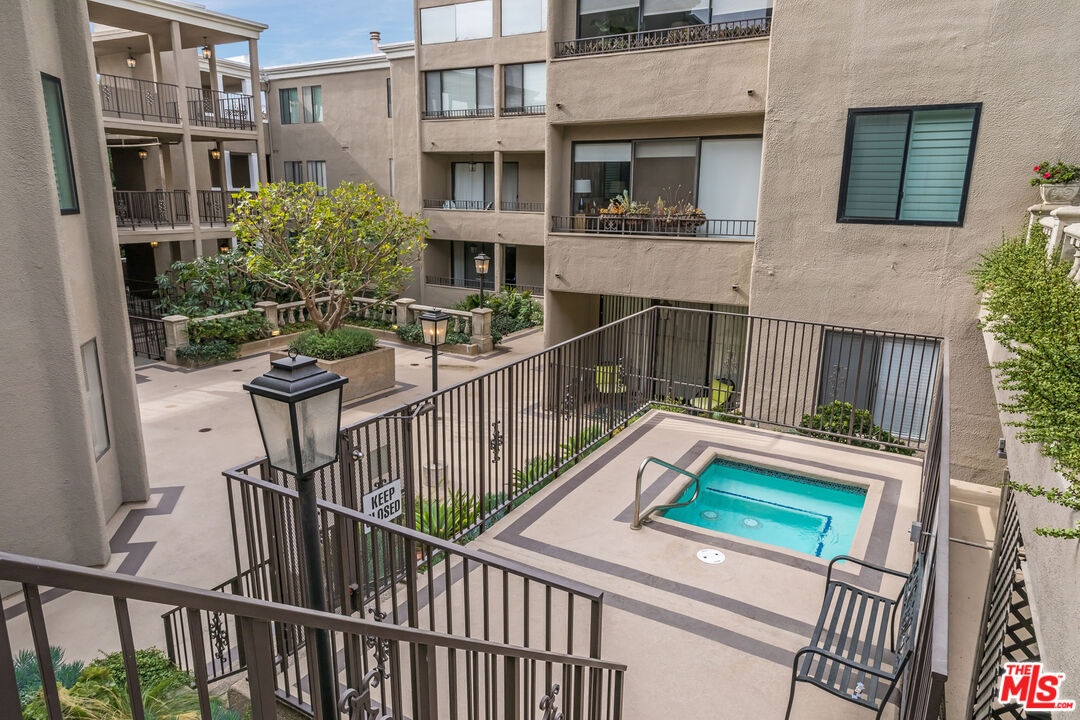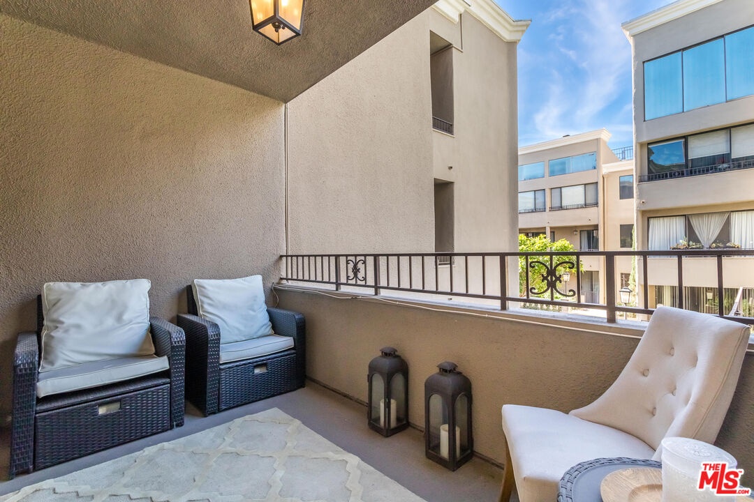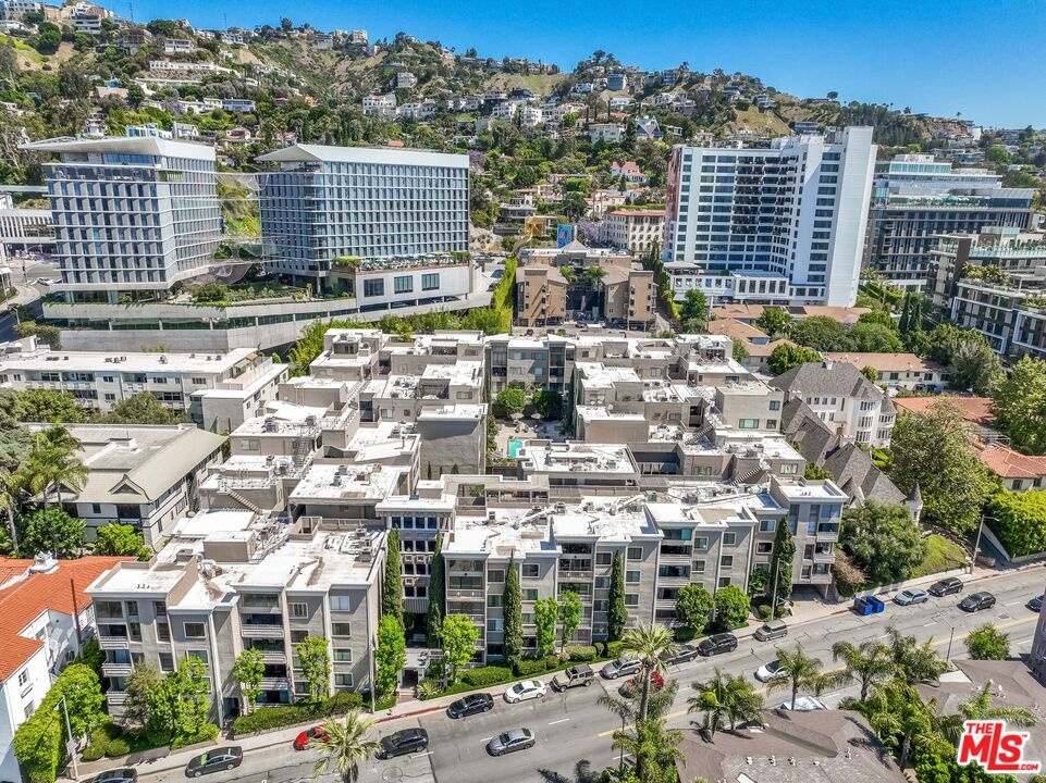Remodeled and privately set just one block south of the Sunset Strip, this gated 2-bedroom, 2-bath residence offers approximately 1,570 sq. ft. of bright, open living space with a rare sense of calm in the heart of West Hollywood. Tucked behind mature trees within a serene courtyard setting, Residence 414 combines generous scale, thoughtful design, and resort-style amenities. A step-down living room with recessed lighting opens to a private balcony overlooking the tranquil interior grounds, while a gated front patio provides an uncommon sense of arrival and additional outdoor privacy. The kitchen features custom cabinetry and new stainless-steel appliances, complemented by a nearby wet bar with built-in storage ideal for entertaining. The spacious primary suite is a true retreat, complete with a walk-in closet and a spa-inspired bathroom featuring marble countertops, soaking tub, step-in shower, dual sinks, make-up station, custom lighting, and a dedicated vanity. The second bedroom is privately situated down the hall near a full bathroom, making it well-suited for guests or a home office. Additional highlights include hardwood flooring, designer fixtures, refined lighting, a full-size washer and dryer, and a secure location near the elevator and building amenities. The home includes two side-by-side parking spaces in the secure garage and a separate storage unit. Residents enjoy an exceptional suite of amenities, including a swimming pool, indoor and outdoor spas, gym, saunas, library, and clubhouse, offering a true resort-like lifestyle moments from world-class dining, shopping, and nightlife.