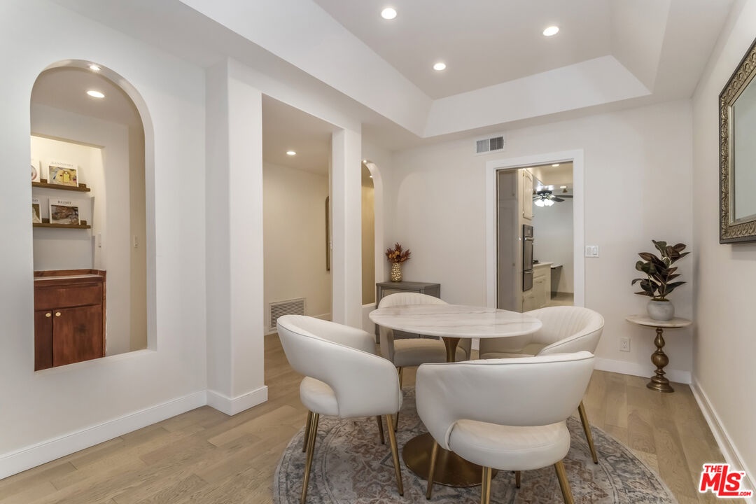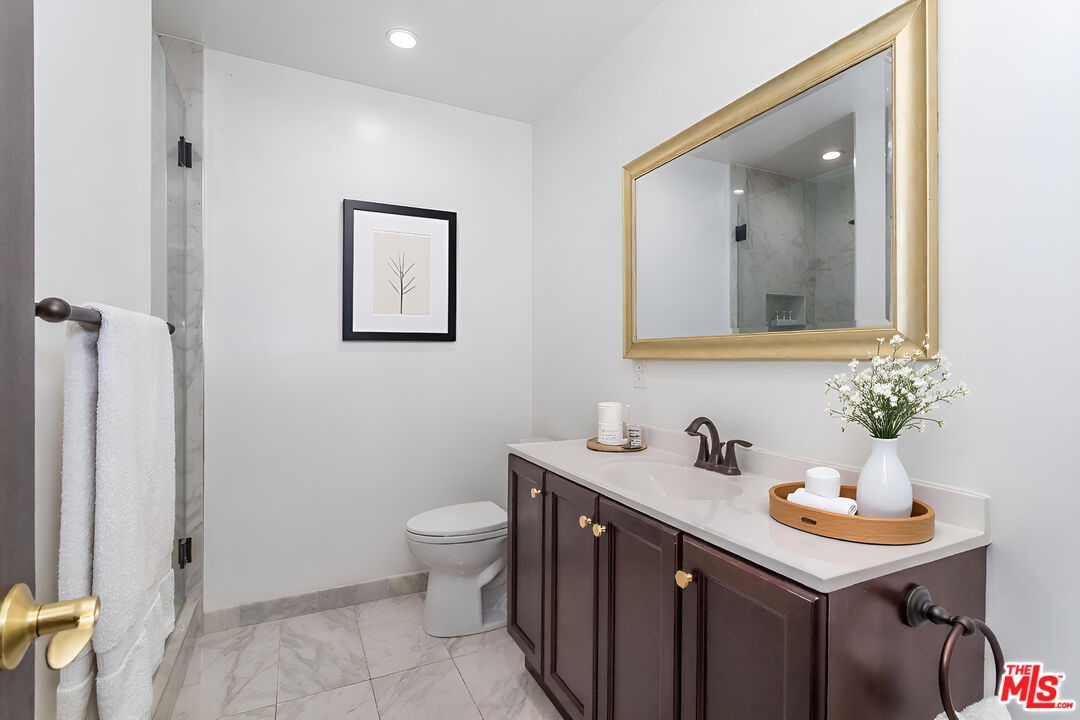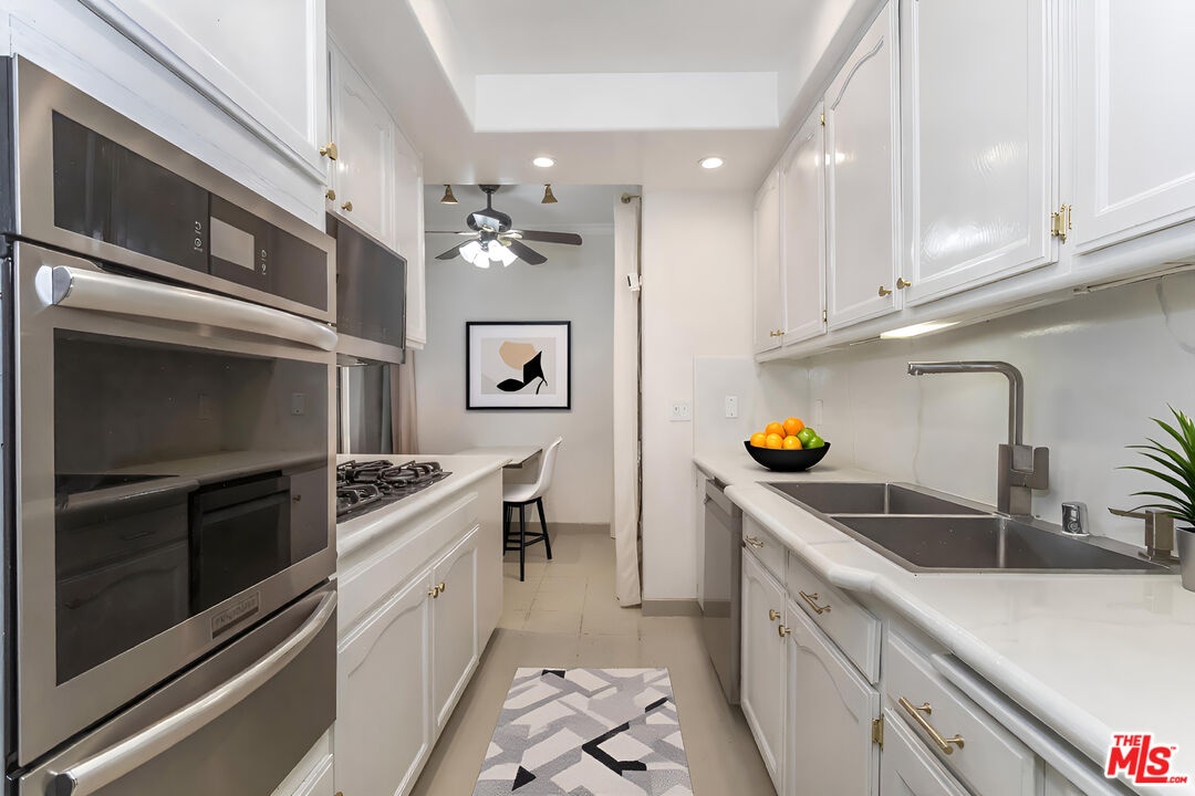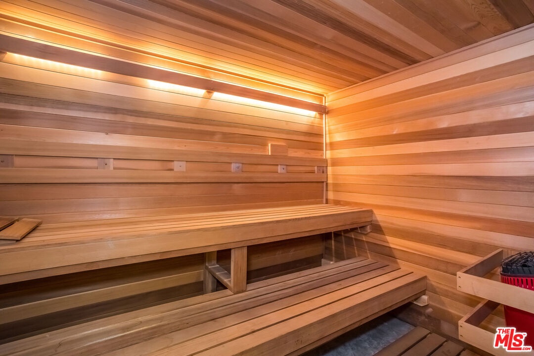 Remodeled and privately set just one block south of the Sunset Strip, this gated 2-bedroom, 2-bath residence offers approximately 1,570 sq. ft. of bright, open living space with a rare sense of calm in the heart of West Hollywood. Tucked behind mature trees within a serene courtyard setting, Residence 414 combines generous scale, thoughtful design, and resort-style amenities. A step-down living room with recessed lighting opens to a private balcony overlooking the tranquil interior grounds, while a gated front patio provides an uncommon sense of arrival and additional outdoor privacy. The kitchen features custom cabinetry and new stainless-steel appliances, complemented by a nearby wet bar with built-in storage ideal for entertaining. The spacious primary suite is a true retreat, complete with a walk-in closet and a spa-inspired bathroom featuring marble countertops, soaking tub, step-in shower, dual sinks, make-up station, custom lighting, and a dedicated vanity. The second bedroom is privately situated down the hall near a full bathroom, making it well-suited for guests or a home office. Additional highlights include hardwood flooring, designer fixtures, refined lighting, a full-size washer and dryer, and a secure location near the elevator and building amenities. The home includes two side-by-side parking spaces in the secure garage and a separate storage unit. Residents enjoy an exceptional suite of amenities, including a swimming pool, indoor and outdoor spas, gym, saunas, library, and clubhouse, offering a true resort-like lifestyle moments from world-class dining, shopping, and nightlife.