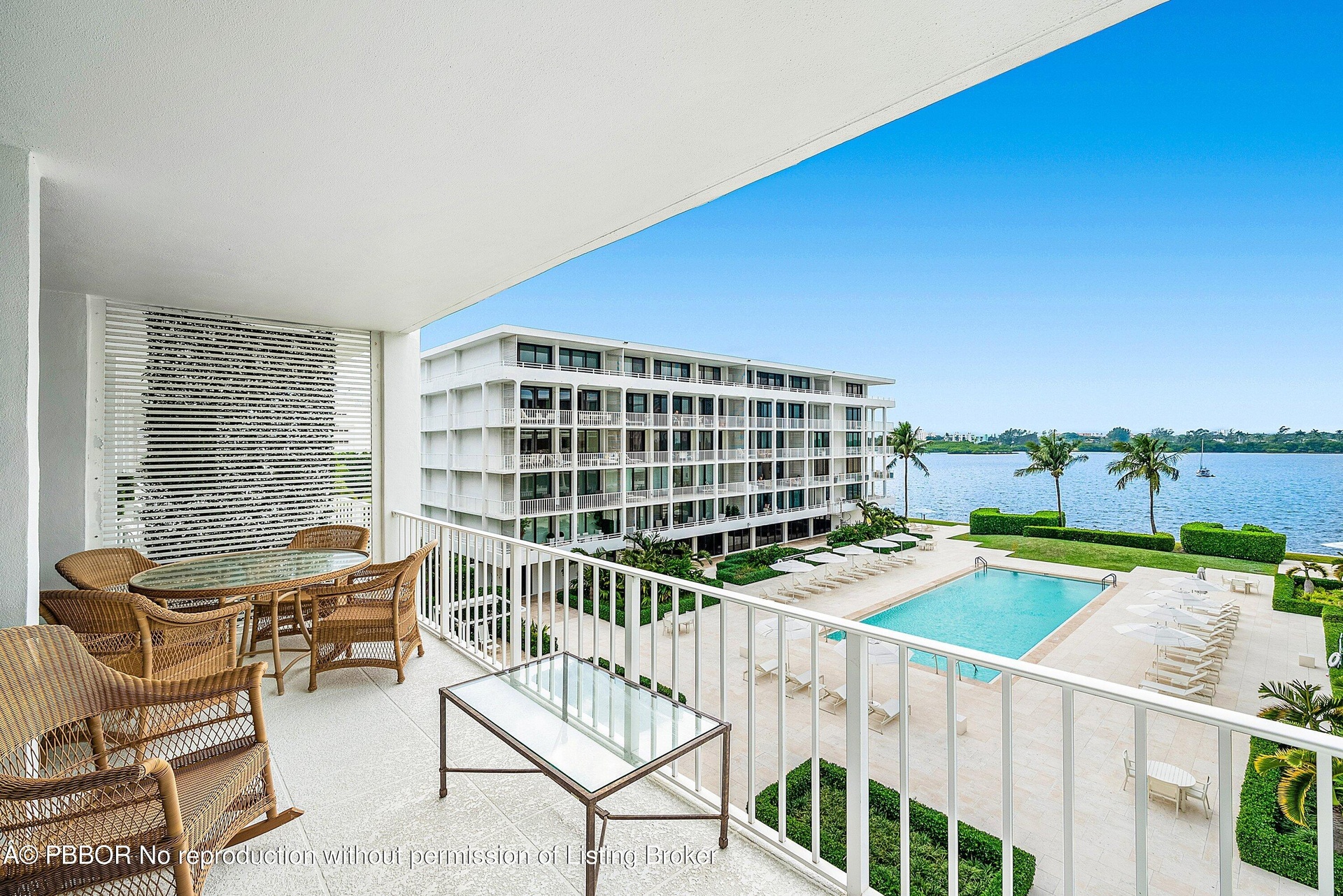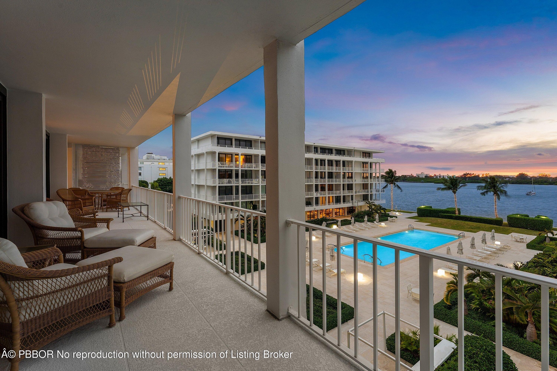 Nestled in an exclusive Palm Beach enclave directly across from the renowned Four Seasons Hotel, this expansive residence offers a lifestyle of unparalleled luxury. Boasting a versatile three-bedroom floor plan, the home features two elegant bedroom suites with generous closet space and a sophisticated office complete with custom built-in cabinetry. The heart of the home is a sprawling 'Great Room'—combining the living, dining, and den areas—which can easily be converted into a third bedroom. Floor-to-ceiling vistas overlook the Intracoastal Waterway, the property's shimmering pool, and meticulously manicured gardens. Whether you are preparing a meal in the chef's kitchen with premium stainless appliances or enjoying a sunset cocktail on the oversized balcony, the views of passing boat and Florida's golden hour are spectacular.