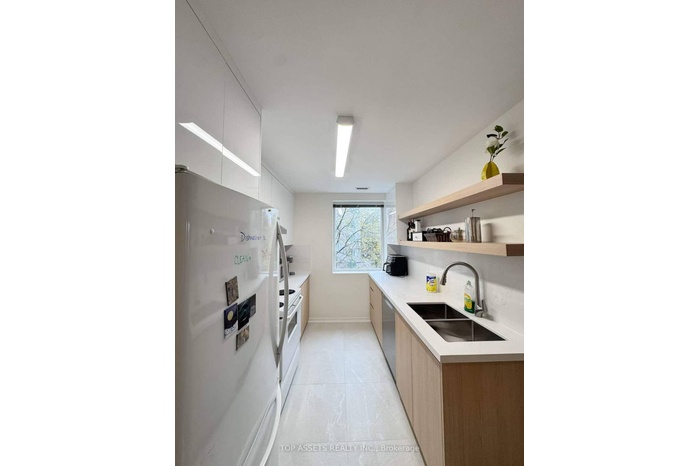 Bright and freshly painted 2 bedrooms, 2 baths corner unit in prime Bayview / Eglinton ave E. The baths and kitchen have just been completely renovated with a modern design. Open concept kitchen, dining and living area with 9ft ceilings, large windows and a walk-out balcony providing plenty of natural light. Primary bedroom includes a double closet and ensuite 4 pc bath. Ensuite washer and dryer. Include a tandem parking space which can provide 2 fully parking spaces. Boutique building with fitness, party room, outdoor terrace and library. Step to 24-hr Metro, restaurants, shops, parks, schools, and the new Leaside Crosstown LRT station with wast transit to Yonge & Eglinton.