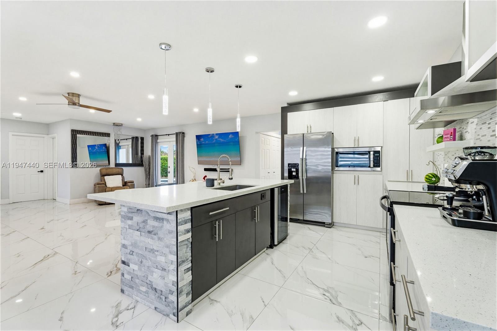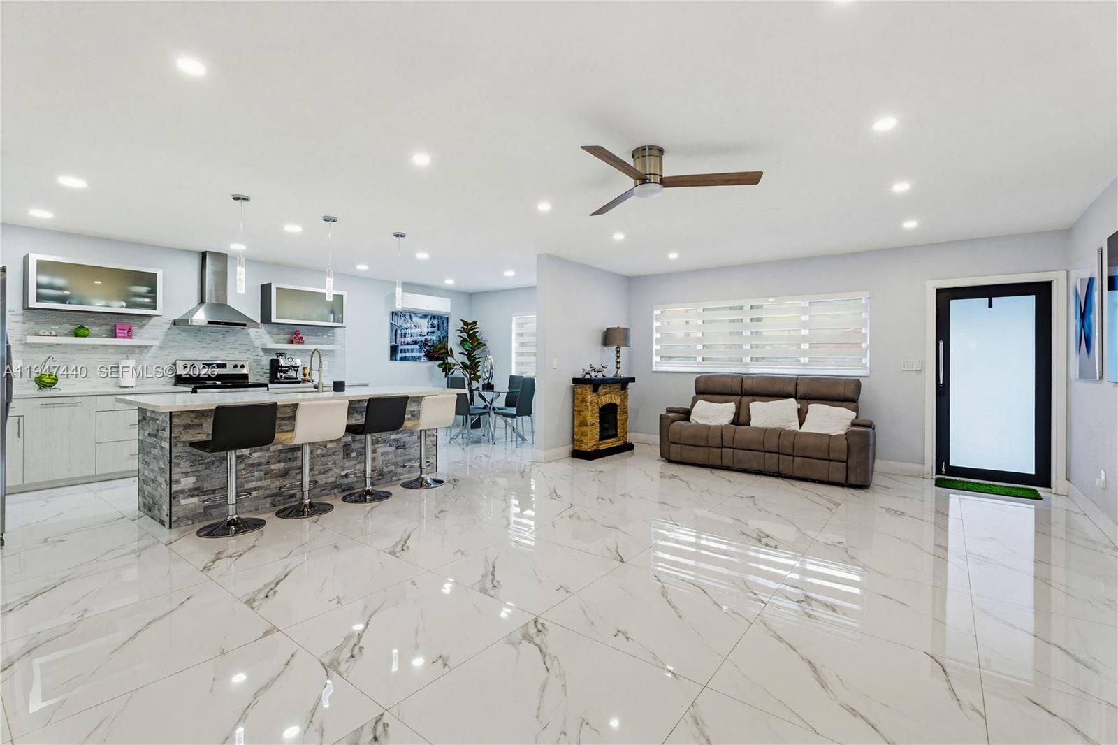 Beautifully remodeled single-family residence set on an expansive 10,386 s/f lot. This inviting home offers 3 bedrooms and 2 bathrooms in 1,580 total s/f. Upgrades include a brand-new roof, porcelain tile flooring throughout, and impact-resistant windows and doors. The private backyard is perfect for relaxation and entertaining, featuring a pool and generous space on both sides of the property to accommodate large boats. Additionally, the home is equipped with five mini-split systems, offering excellent energy efficiency and lower electricity costs. Ideally located in a family-friendly neighborhood, just minutes from shopping centers and schools.