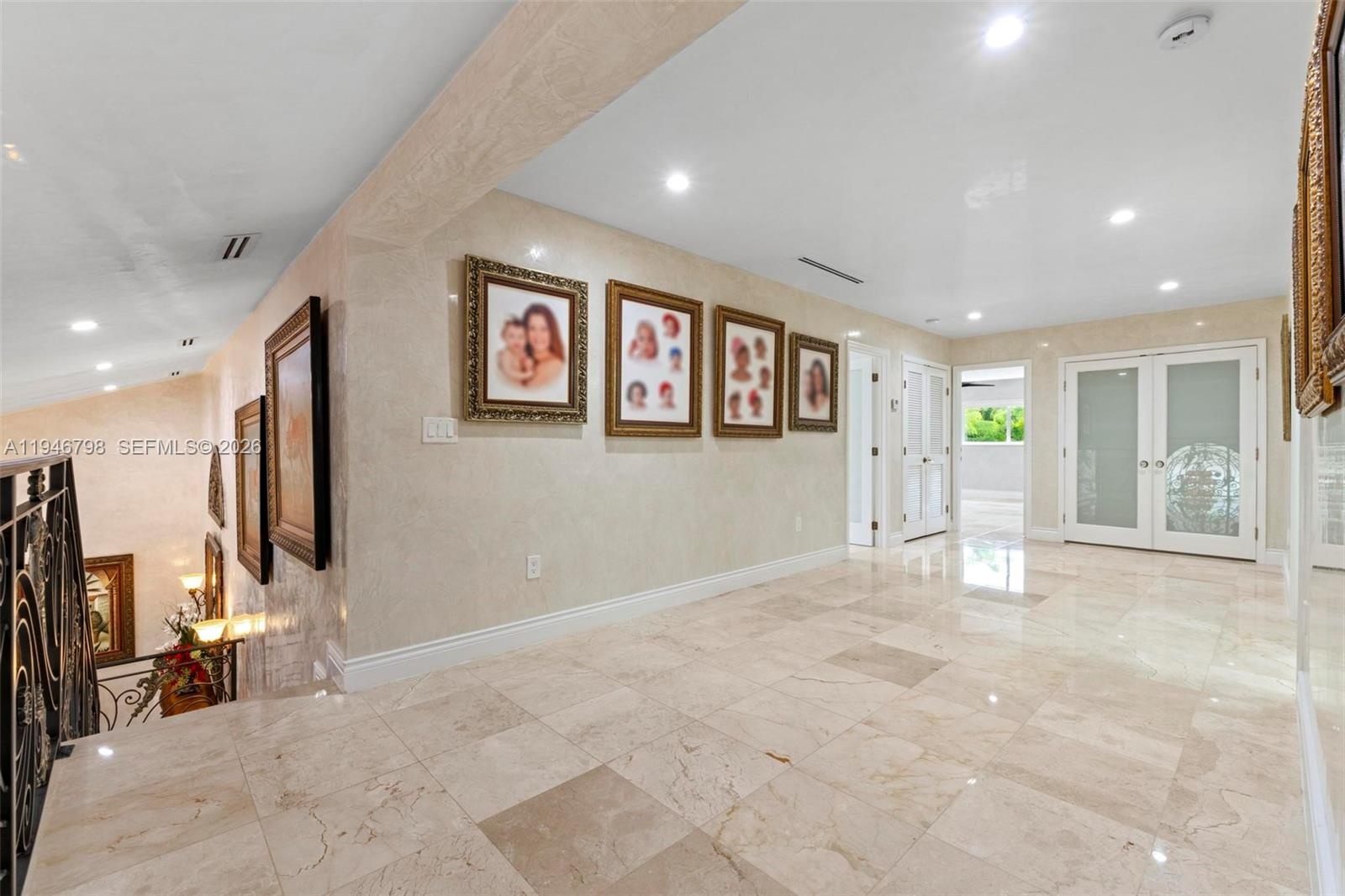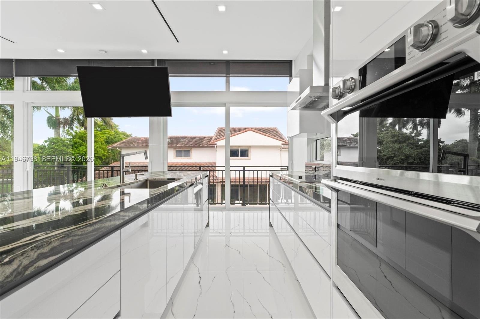 Stunning two-story estate in Miami on nearly an acre, featuring a European-style main house and a modern guest house. It offers 6 BRs, 7 BAs over 6,400 sq ft of living space, with a total area exceeding 8,500 sq ft. The chef’s kitchen highlights custom wood cabinetry, built-in appliances, and granite countertops. The bright dining area overlooks lush gardens, while a game room leads to a remodeled modern pool and outdoor entertaining area. The main living room has a vaulted ceiling with ambient lighting. The detached guest house features its own kitchen, private balcony, and entrance, making it an ideal accommodation for families or visitors. With mature landscaping, ample driveway space, and privacy, this turnkey property offers luxury and versatility, equipped with a generator. Must see!
