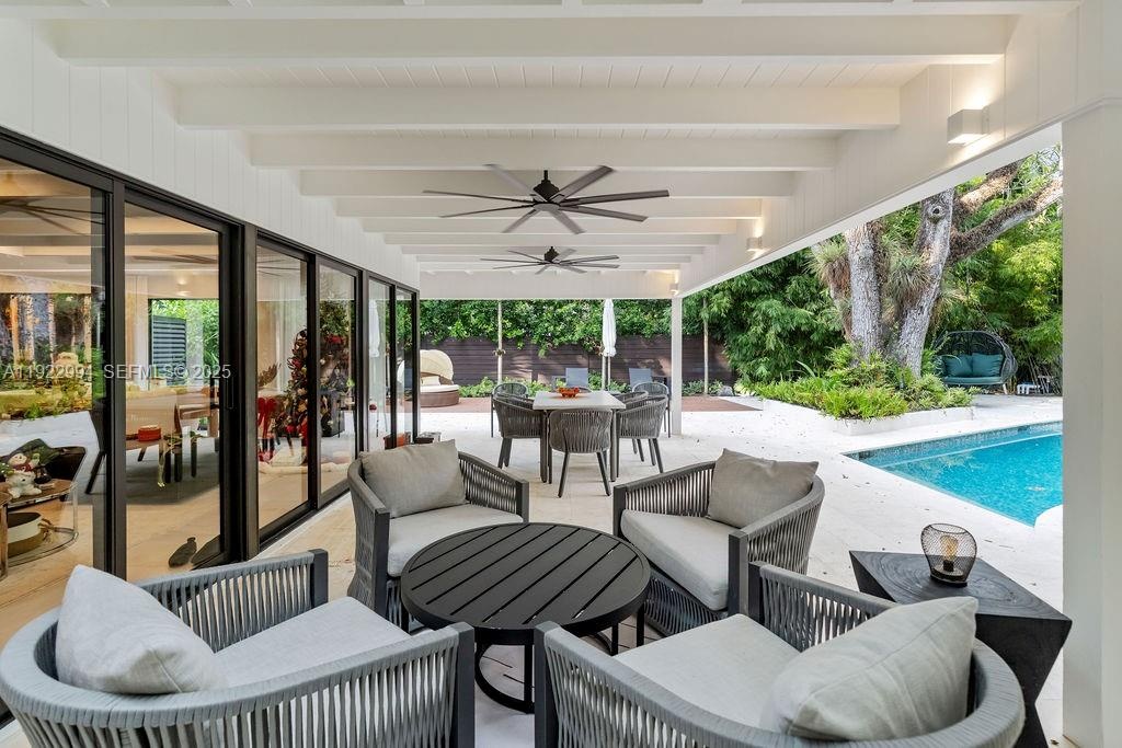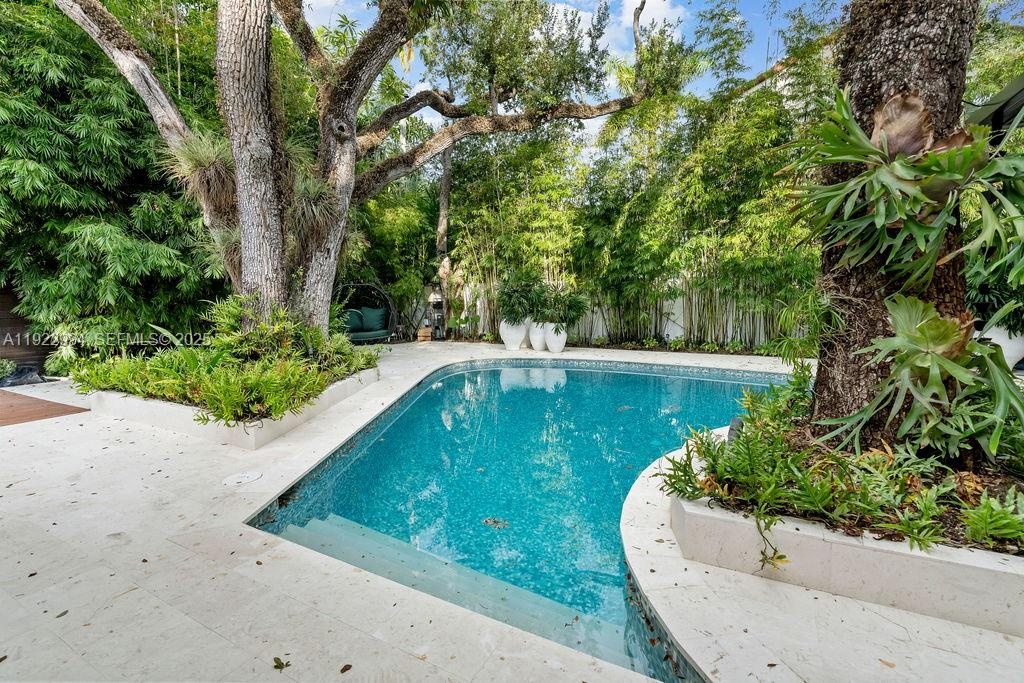 Experience a modern South Coconut Grove residence that perfectly blends luxury design, privacy, and lifestyle. Nestled in an exclusive residential enclave, this turnkey home sits on an oversized 13,000-sq-ft gated corner lot nearly double the average lot in the Grove offering exceptional space and tranquility amid lush tropical surroundings. Immaculately renovated by Farache Bromberg Design Studio & Casa DDI, the 5-bed, 4.5-bath residence features a spacious open floor plan with wood and porcelain floors, abundant natural light, and custom architectural details. The chef’s kitchen includes Miele appliances and a waterfall island, connecting to a formal dining room, living area with exposed beams, and intimate sitting room. The double-height primary suite evokes a resort ambiance, complemented by spa-inspired baths and a green roof terrace. Outdoors, enjoy a diving pool, covered terrace, and lushly landscaped grounds with mature oaks. Major upgrades include new metal roof, electrical, plumbing, HVAC, and irrigation. Minutes to the village center, marinas, and top-rated private schools—this home captures modern comfort, timeless design, and Miami luxury living.