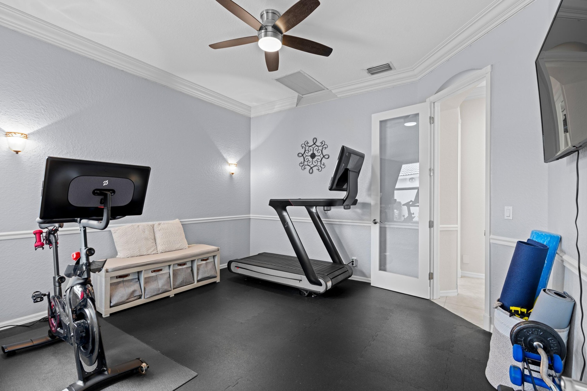 Amazing opportunity to own the popular Ibiza model that features FIVE bedrooms, including the option to have your primary bedroom upstairs or down. Perfectly maintained, ALL IMPACT windows and doors. This home sits on the canal with great views from the family and kitchen area. Three car garage with EV charger in place. Backyard pavers recently redone. Room for a custom pool or enjoy the gorgeous pool at the clubhouse, along with tennis courts, resort-like gym, events and more. Mirabella is walking distance to desirable Marsh Pointe Elementary and minutes from everywhere you would want to be: beach, airport, restaurants, Alton Town Center and more.