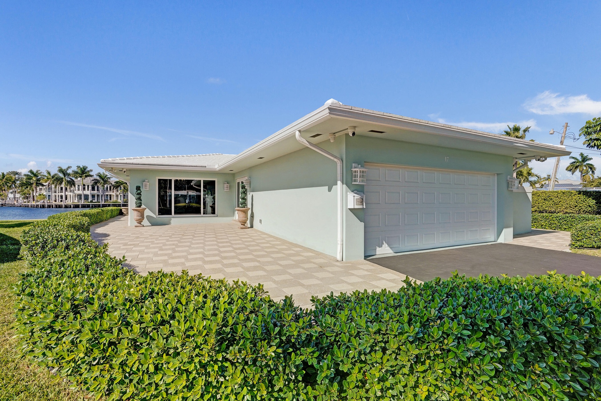 The chef's kitchen is equipped with premium Miele stainless steel appliances, including a gas range, double/steam ovens, built-in coffee maker, and marble countertops. Additional highlights include a butler's pantry/home office, a full-house generator and tankless hot water heater. The home is impeccably kept and offers a central vacuum, Honeywell security and infrared camera system, impact windows throughout, and a newer A/C unit. The Air-conditioned 2-car garage with custom epoxy flooring and split A/C unit provides ample space for cars and toys. Incredibly, Palm Yacht & Beach club offers free dockage in it's own private marina for boats with a minimum of 15 feet and a maximum of 50 feet, a gorgeous oceanfront clubhouse with resort style pool and kitchen for entertaining as well as private beach access. Restaurants and Shopping in popular Lauderdale-by-the-Sea and Pompano Beach are just a few minutes away. This is truly South Florida living at its best with both ocean and Intracoastal access in a beautiful and tranquil 55+ community.