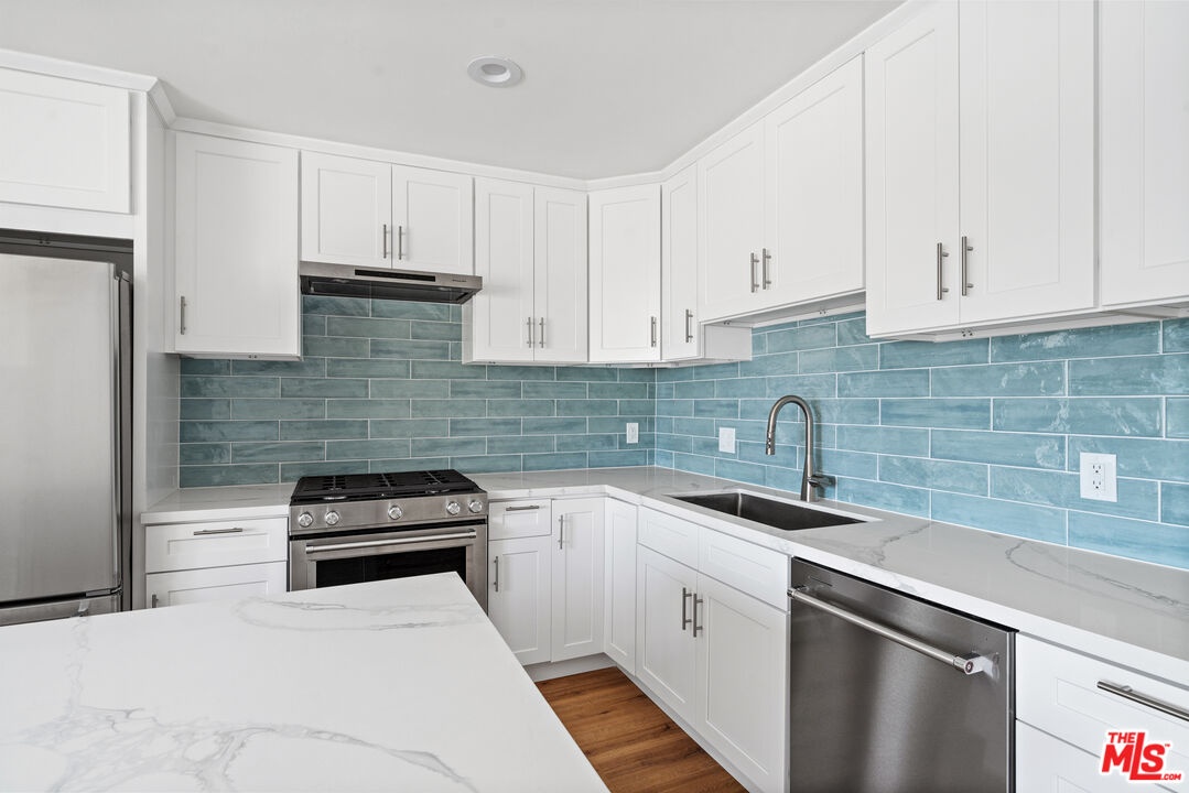 Nestled on a lush, tree-lined street at the corner of 6th and Vernon, this newly renovated first-floor 3-bedroom, 2-bathroom unit in Venice offers the perfect blend of modern comfort and beachside charm. Just a short distance from the vibrant Rose Avenue corridor, this home is ideally situated for enjoying the best of Westside living. The building itself is wrapped in mature greenery and ivy, creating a serene, private atmosphere that feels like a hidden retreat in the heart of the city.Inside, the open-concept layout is bathed in natural light from oversized windows that look out onto swaying eucalyptus and palm trees. Wide-plank oak-style floors run throughout the spacious living area, leading into a contemporary kitchen designed with both style and functionality in mind. The kitchen features gleaming quartz countertops, brand new stainless steel appliances, white shaker cabinetry, and a striking aqua glass tile backsplash that adds a fresh coastal flair. Both bathrooms are beautifully updated with designer finishes. The unit is freshly painted and includes recessed lighting, Air conditioning, and thoughtful details throughout. With close proximity to Rose Avenue's cafe's and shops, the beach, Abbot Kinney, and Main Street, this home offers the ideal Venice lifestyle, relaxed, stylish, and conveniently located. Available now, this first-floor gem is a must-see for anyone seeking comfort and character in one of L.A.'s most sought-after neighborhoods.