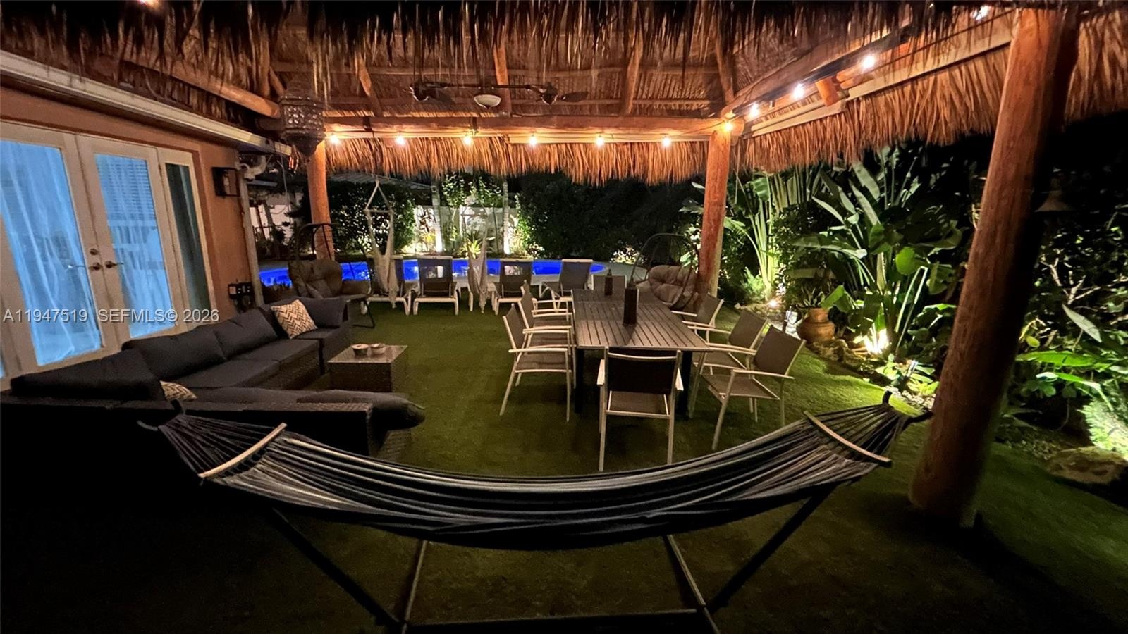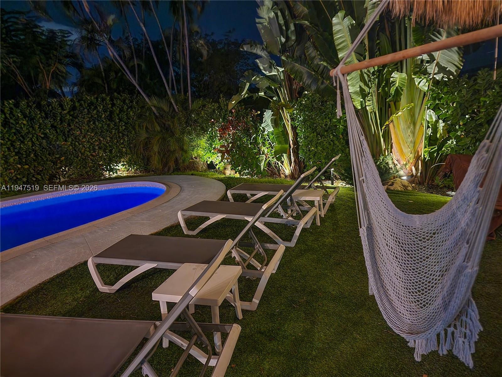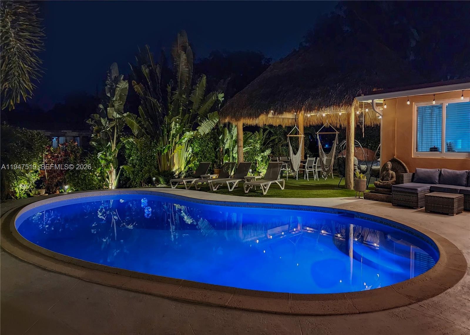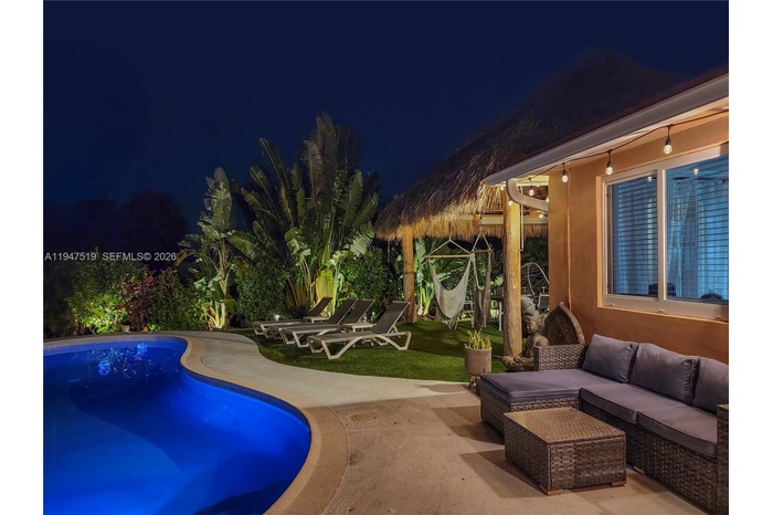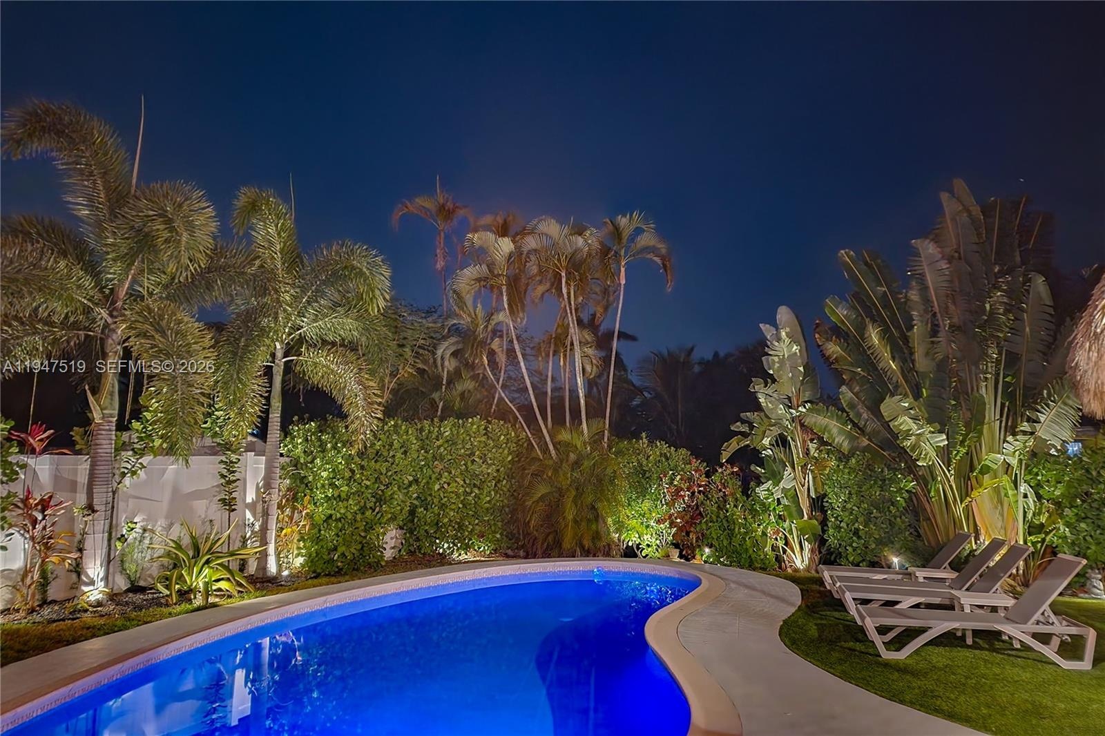 Experience resort-style living year-round in this exceptional canal-front home with impeccable landscaping. Thoughtfully updated and professionally designed, this residence features newer saltwater concrete heated pool, private floating dock, and a charming very private expansive backyard with oversized Tiki—perfect for relaxing or entertaining. Enjoy peace of mind with a newer roof, hurricane-impact windows and doors installed in 2022, and a new AC system. EV charger installed and the whole house is pre-wired for the generator. Meticulously maintained house, freshly painted interiors complement the home’s modern, coastal aesthetic. Ideally located in a highly desirable area, close to shopping, dining, entertainment, and major conveniences. This is waterfront living at its finest—where comfort, style, and location come together seamlessly.