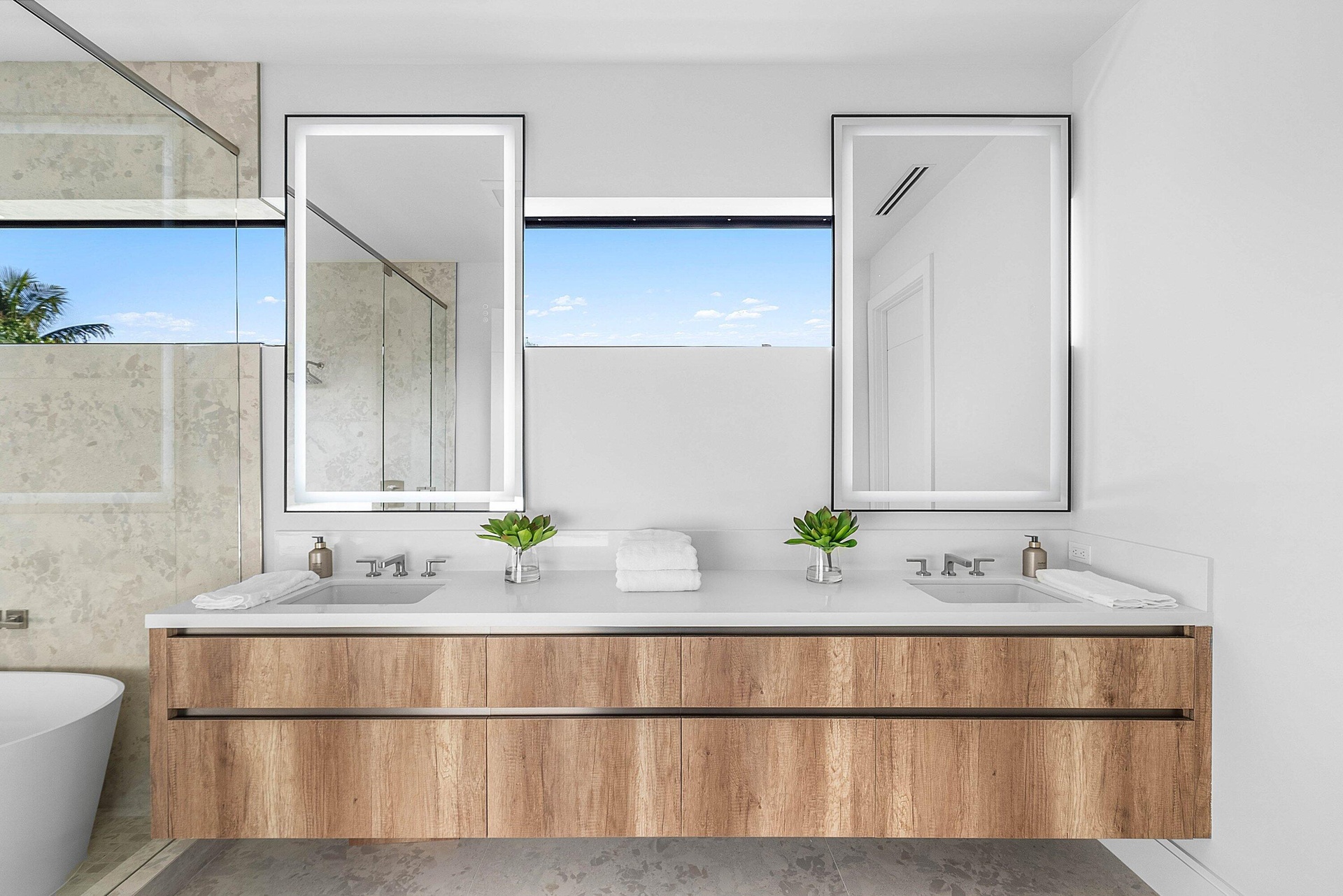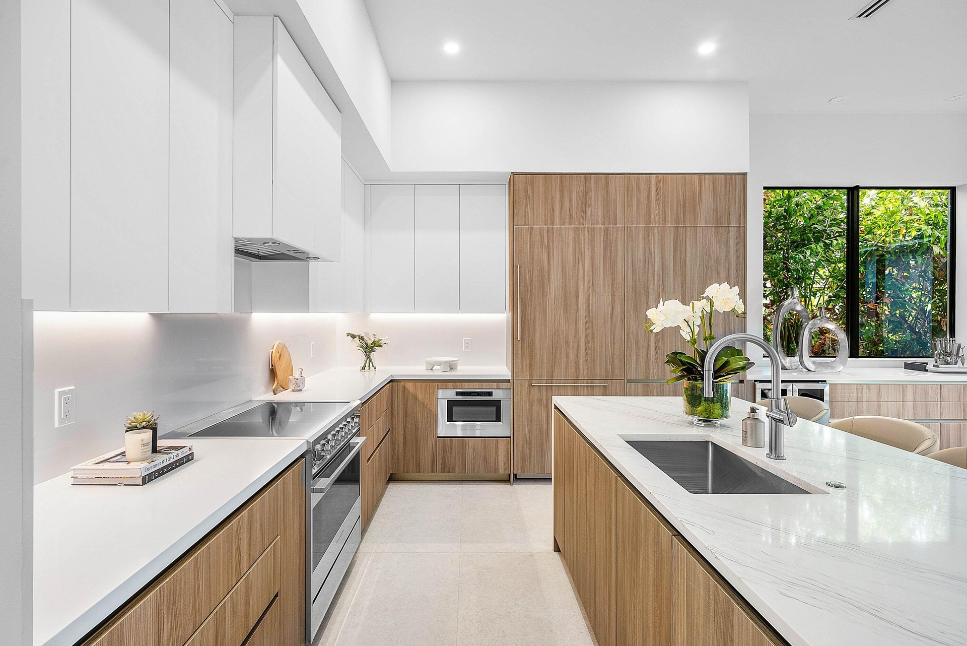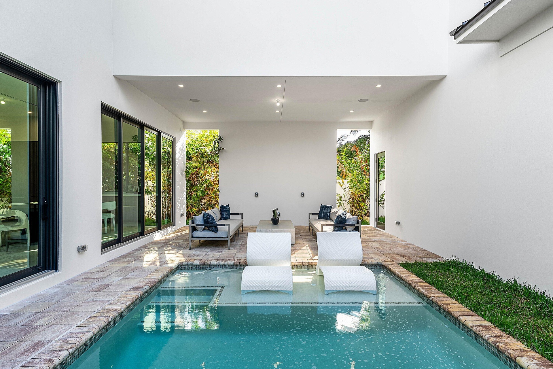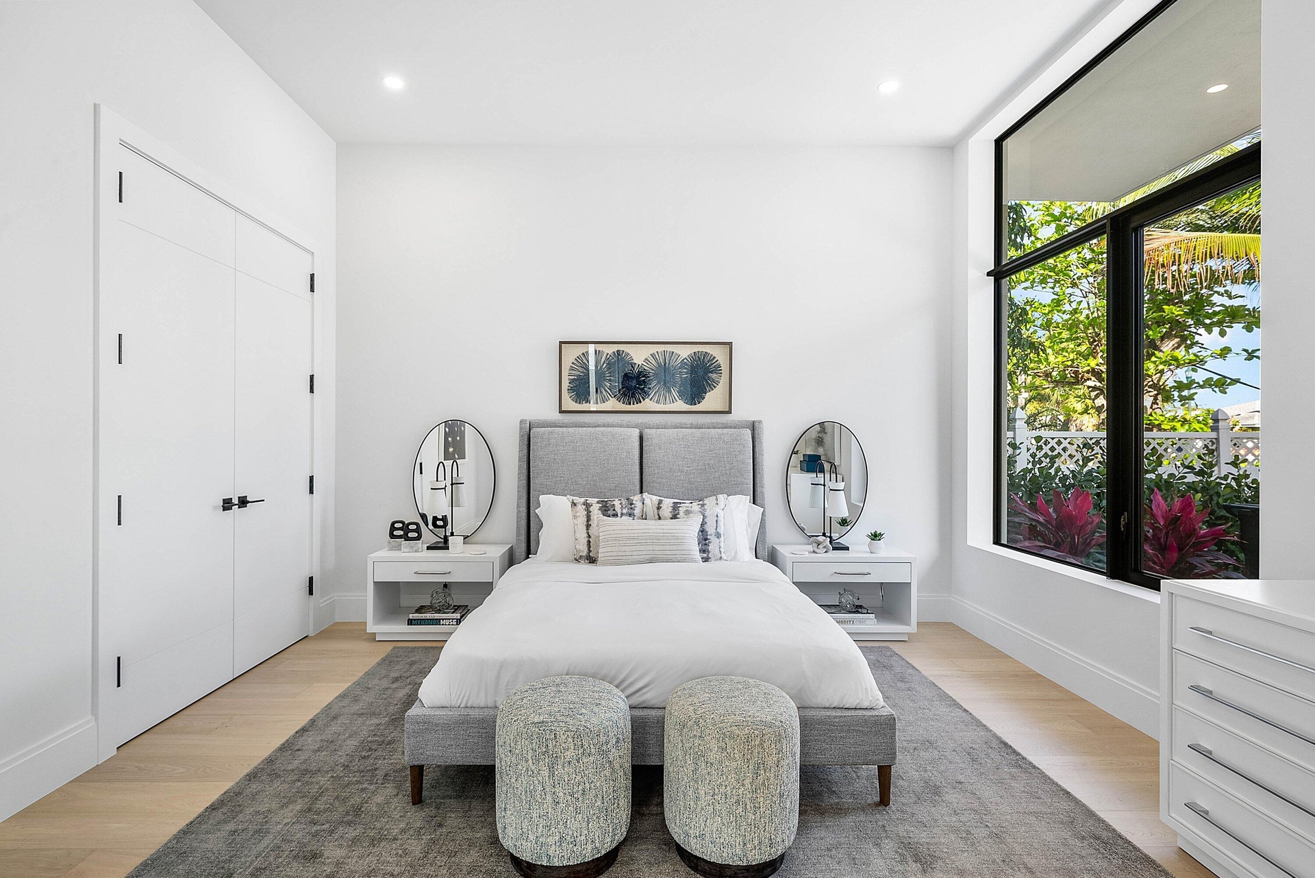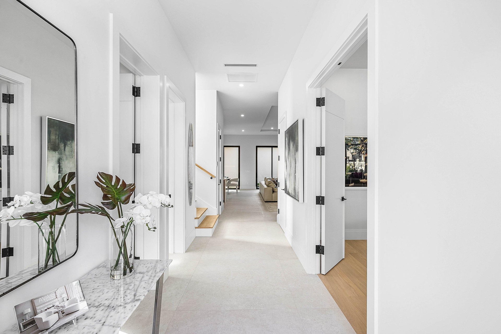 Exquisite new contemporary estate by Marc Julien in East Delray Beach, offering 5 bedrooms, an office, and a three-car garage. The open-concept main level features two guest suites, a great room, dining area, and a chef's kitchen with an oversized island. Upstairs includes a private primary suite with dual walk-in closets and a spa-style bath, plus three ensuite bedrooms and a loft. Built with impact windows and doors, the home offers quality construction, warm neutral finishes, abundant natural light, and seamless indoor-outdoor flow. The backyard features a covered loggia, tropical landscaping, and a saltwater pool and spa. Located in a highly walkable area near the beach, Atlantic Avenue, and top dining and shopping.