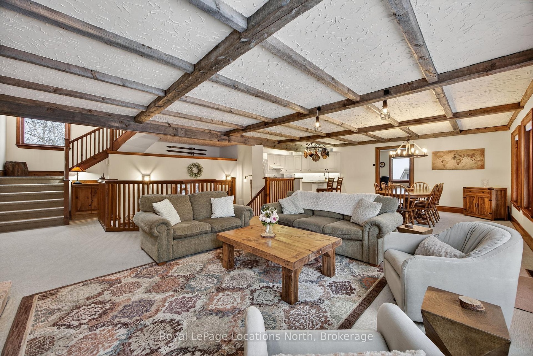 Offered as a fully furnished rental, this stunning custom-built chalet showcases exceptional craftsmanship and timeless design throughout. Thoughtfully constructed by the owner from the ground up, no detail was overlooked and no expense spared, resulting in a home that was truly ahead of its time when originally designed. With its open-concept layout and distinctive architectural features, this residence is ideal for those seeking a refined yet comfortable mountain lifestyle. Upon entry, a dramatic split-level foyer highlights the home's unique and functional design. The well-appointed kitchen features granite countertops and overlooks the spacious dining and living areas, creating a seamless flow for everyday living and entertaining. The living room is anchored by a striking gas fireplace and offers a walkout to the main deck-perfect for enjoying outdoor living year-round. Character-rich grey pine beams sourced from a local log home builder accent the living and dining room ceilings, adding warmth and authenticity. Solid pine interior doors are featured throughout, complemented by cedar doors in the sunroom and impressive solid oak double doors in the foyer. The lower level provides an inviting retreat with a classic pool room and British pub-style bar, complete with an additional fireplace and walkout to the outdoor space-an ideal setting for entertaining or relaxing after a day on the slopes. This home truly reflects pride of ownership and offers a rare opportunity to rent a furnished chalet of this caliber. Ideally located, enjoy views of the ski hills from your private backyard oasis, while being close to year-round recreational amenities. A perfect furnished rental for those seeking quality, comfort, and an unbeatable alpine setting.