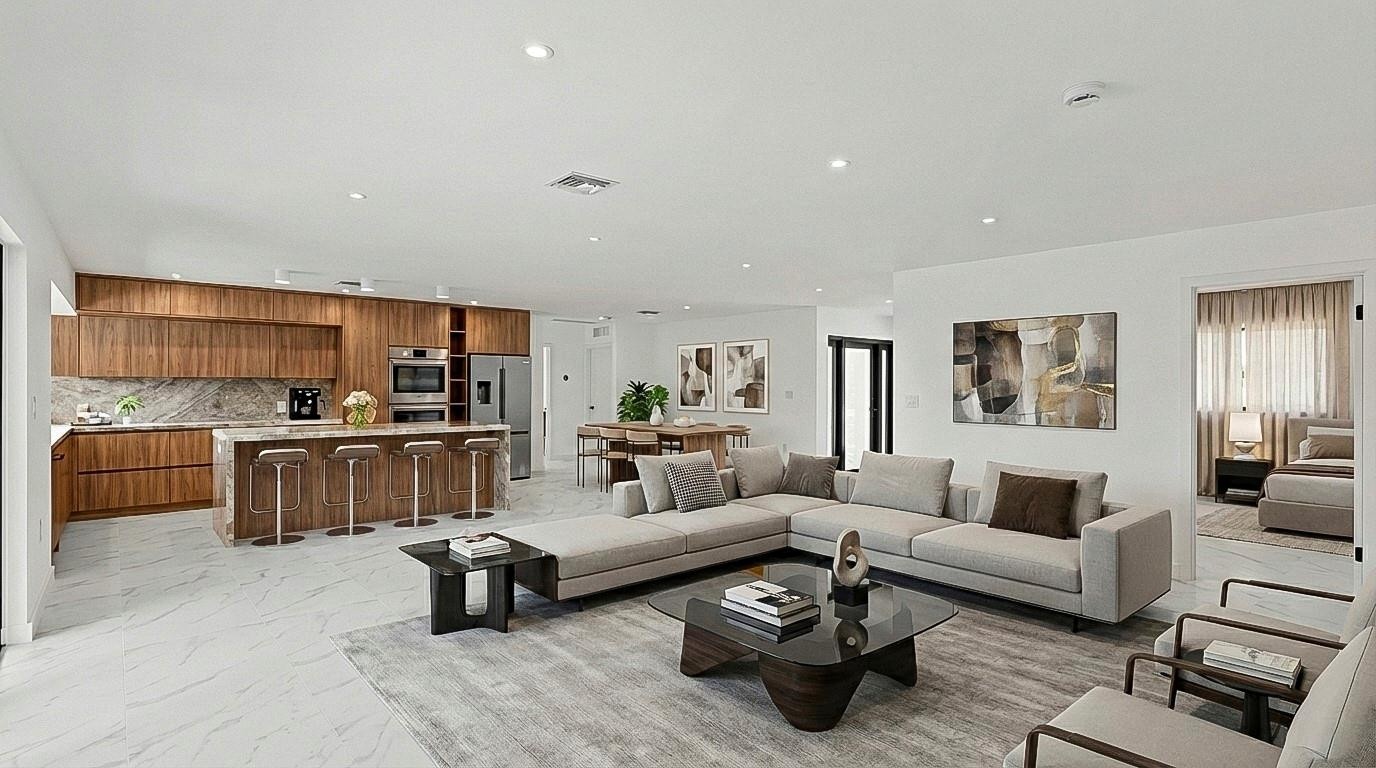 Completely rebuilt from floor to ceiling, this brand-new bespoke residence delivers modern luxury in the highly sought-after Highland Lakes neighborhood. Designed as a true modern masterpiece, the home offers 5 bedrooms, 3.5 designer bathrooms, new roof, new A/C, impact windows, and premium finishes throughout. The stunning kitchen features jade quartzite countertops, Bosch appliances, and custom cabinetry. Sun-filled interiors flow seamlessly to a private resort-style pool, creating an ideal setting for refined living and sophisticated entertaining. Offered with a 1-year builder’s warranty for complete peace of mind, this exceptional home embodies elevated South Florida luxury living.
