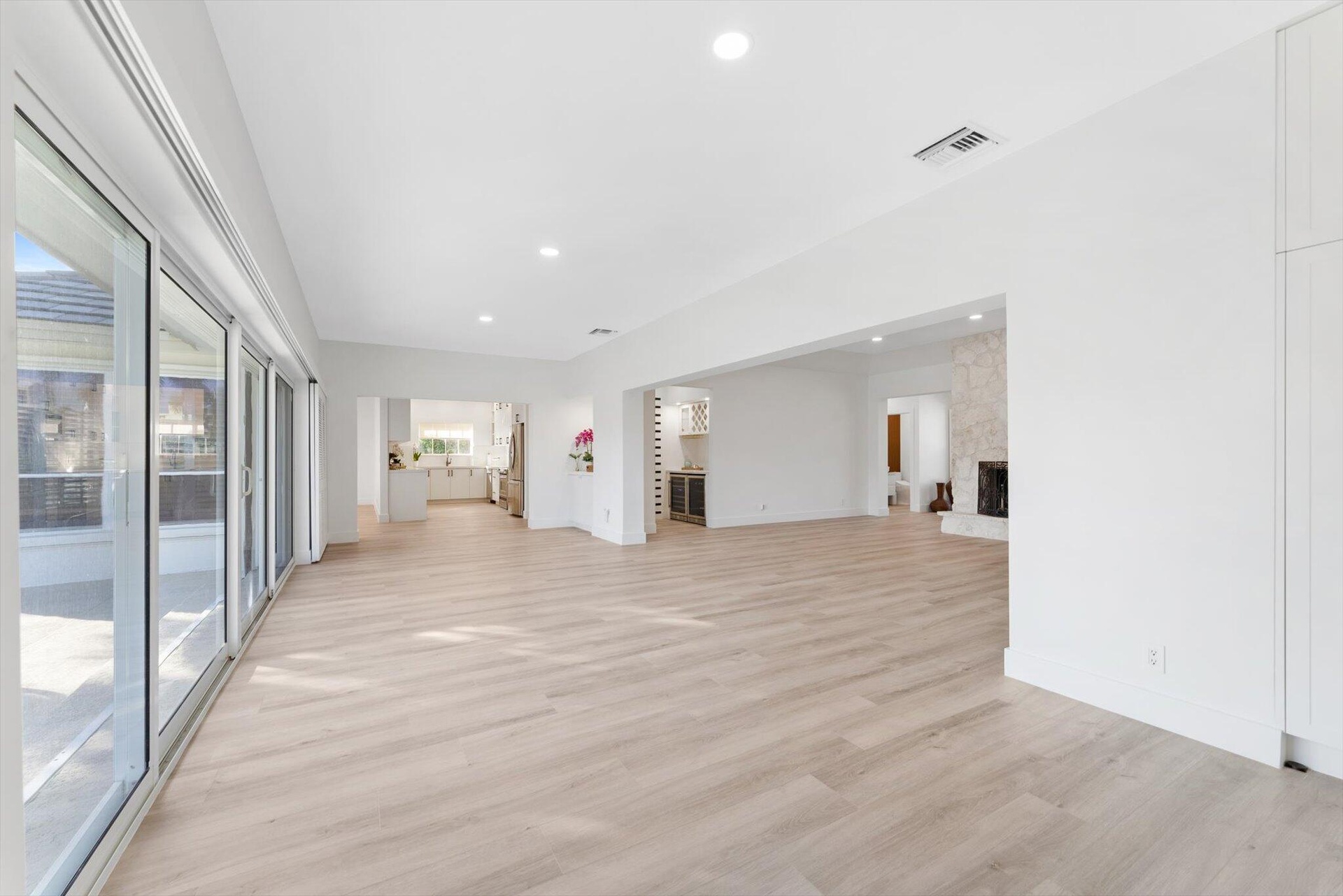 Fresh from a complete transformation, 872 Lilac Drive doesn't apologize for being different. The design is clean, modern, unapologetically bright. Light wood floors lead you through spaces that actually make sense - a kitchen that opens instead of closes you off, rooms that breathe, a fireplace wrapped in stone that commands attention without trying too hard.