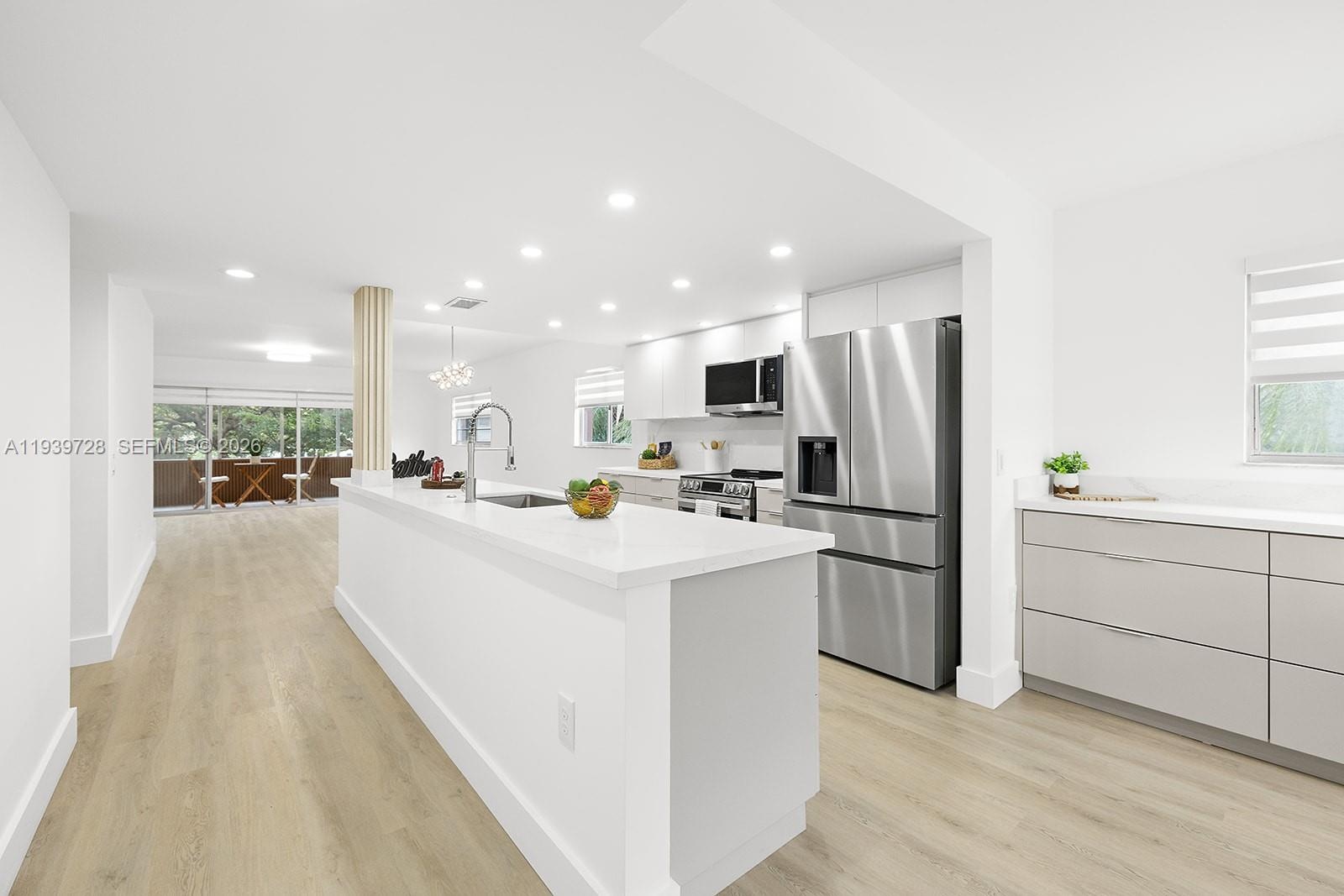 Beautifully renovated 2 bedroom, 2 bath residence overlooking lush garden views. The open contemporary kitchen offers tall modern cabinetry, quartz countertops and new stainless steel appliances. New vinyl flooring, freshly painted interiors and stylishly remodeled bathrooms add a clean, elegant feel throughout. The A/C was replaced in 2020. A Brand new, big-size washer and dryer and a tankless water heater provide modern comfort and efficiency. Relax while taking in beautiful views and enjoy the convenience of a corner unit with more windows and lighting throughout. HOA fees are $563/month (includes water cable, internet and master insurance) plus $291/month for spectacular million-dollar clubhouse with endeless activities, golf course, teather, bus shutter and much more! Situated in Ivanhoe III at Century Village, a premier 55+ community in Pembroke Pines, close to shopping, entertainment, and major highways.