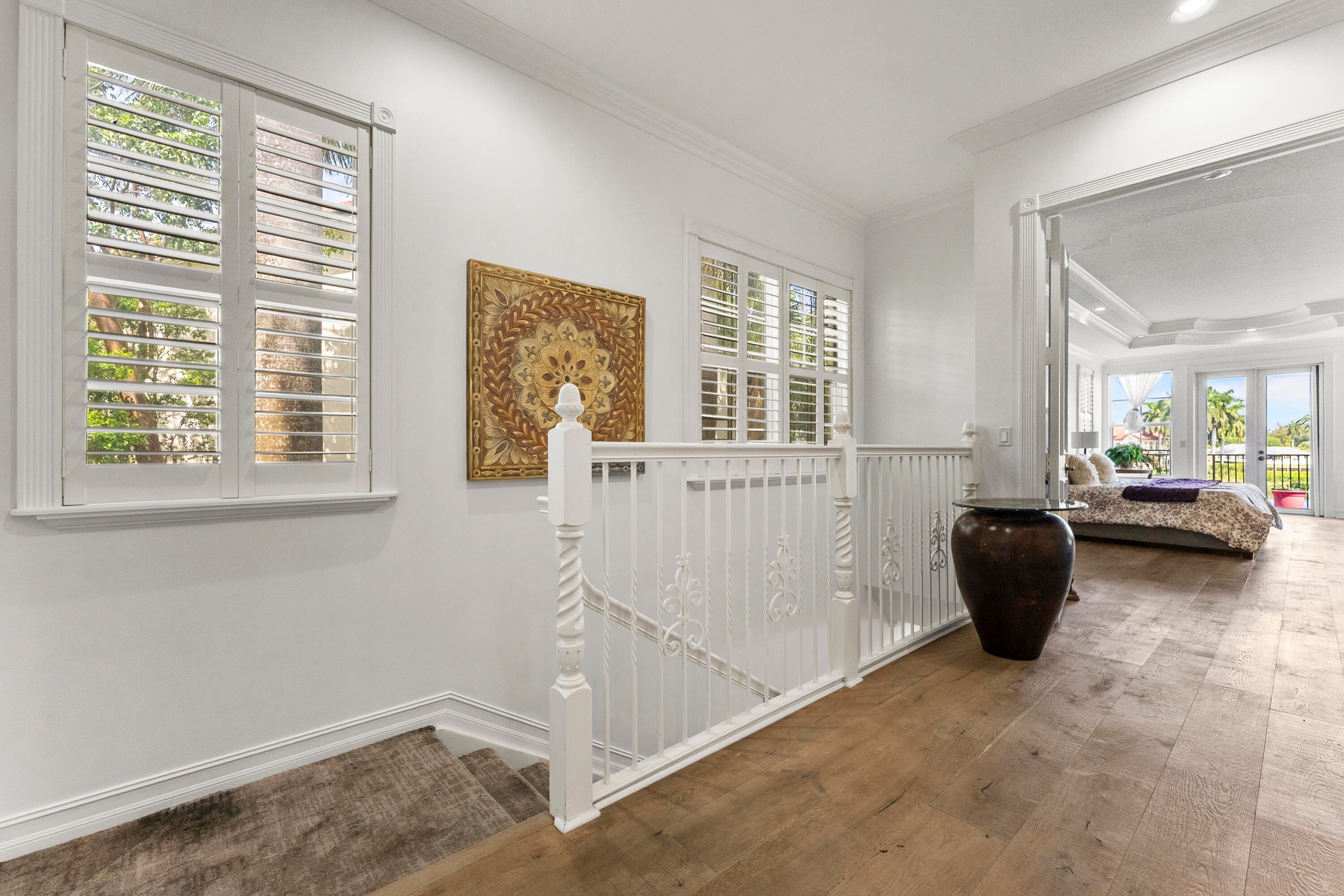 Nestled in the prestigious Estuary community, this 24-hour guard-gated gem offers breathtaking lake and Intracoastal views, complete with private beach access and a kayak launch. Professionally landscaped, the home boasts a screened porch, patio, and a brand-new roof. Inside, soaring 10'+ ceilings, hardwood floors, and a stunning open floor plan await. The chef's kitchen dazzles with quartzite counters, white cabinets, and an induction range, while a custom bar with a wine fridge makes entertaining effortless. Spanning 2,900± sq ft, it features 3 bedrooms, upstairs laundry, and an elevator-ready closet. The primary suite is pure luxury with his-and-hers baths, a private balcony, and spectacular sunrise views.