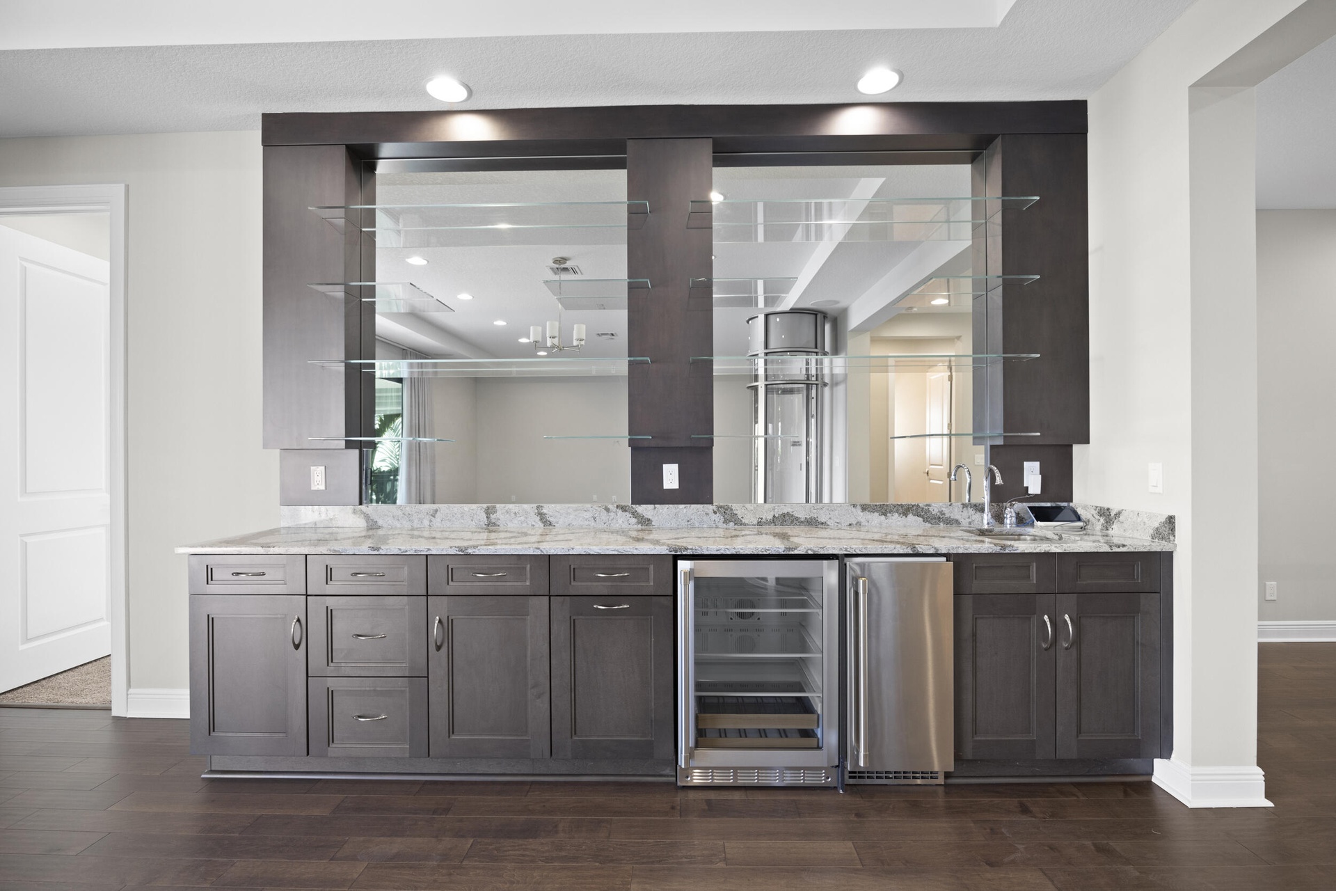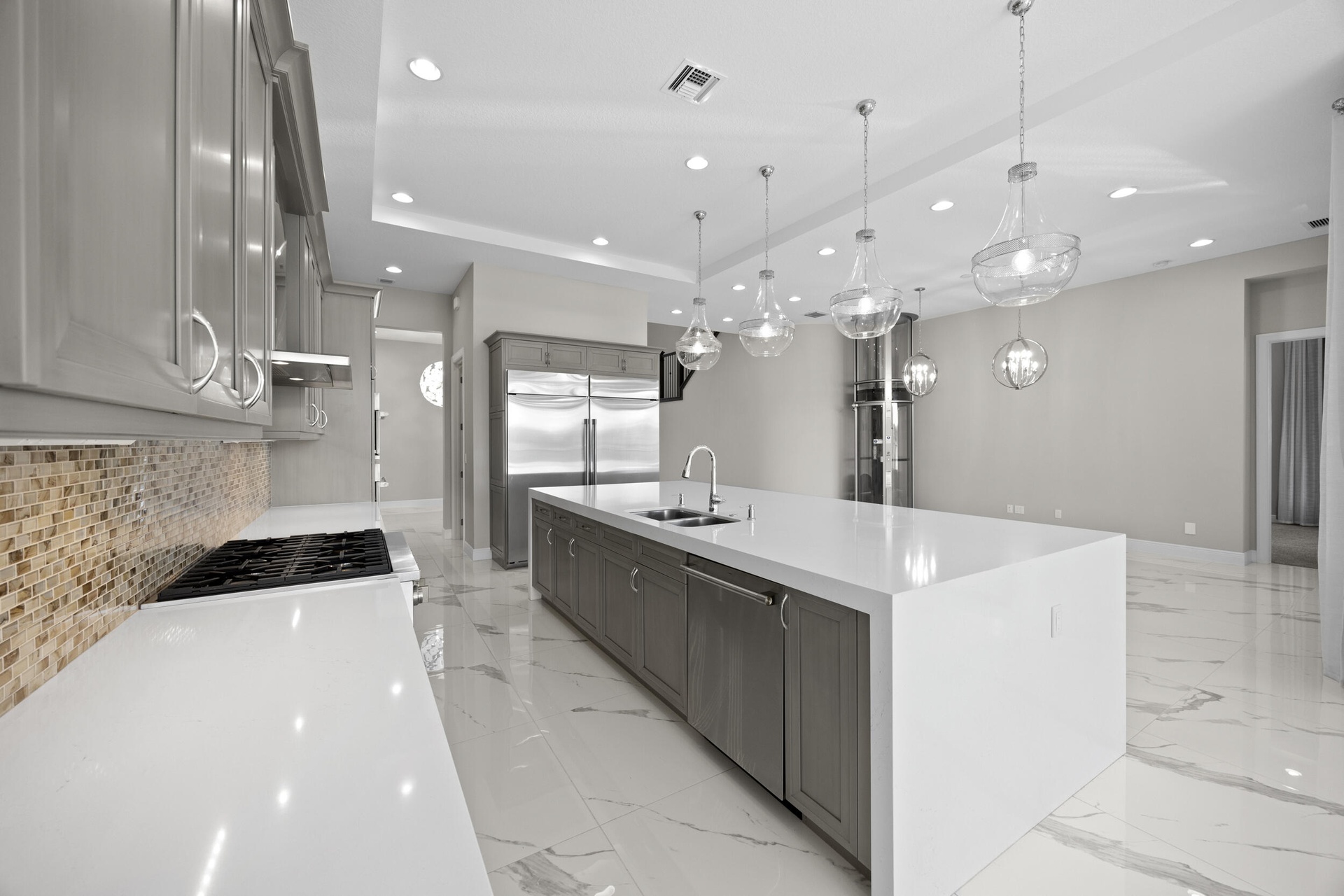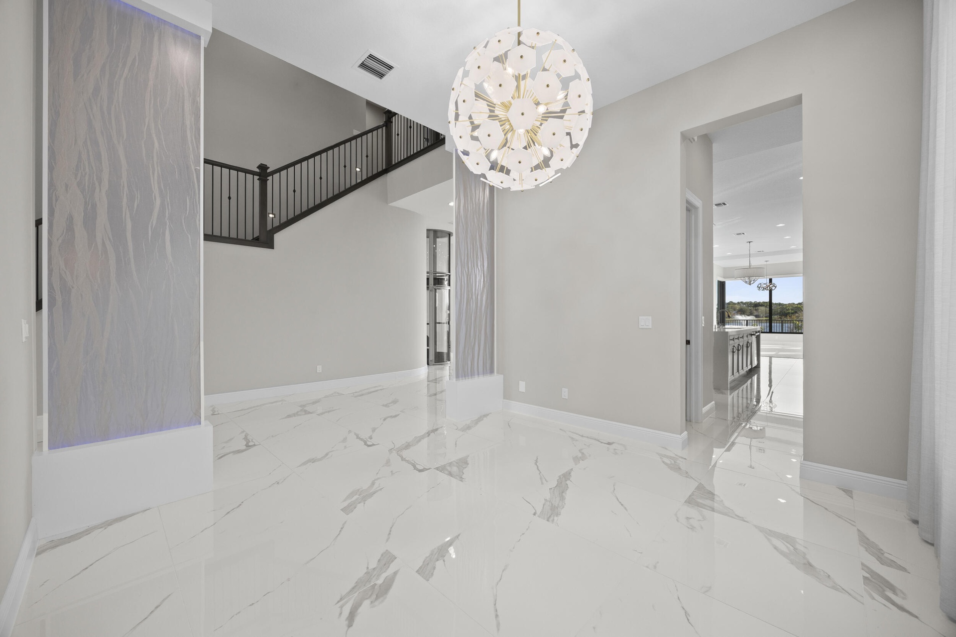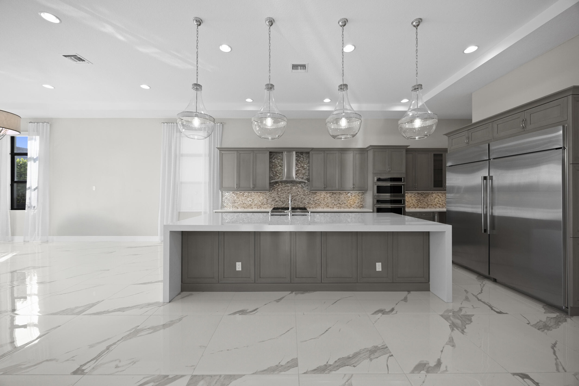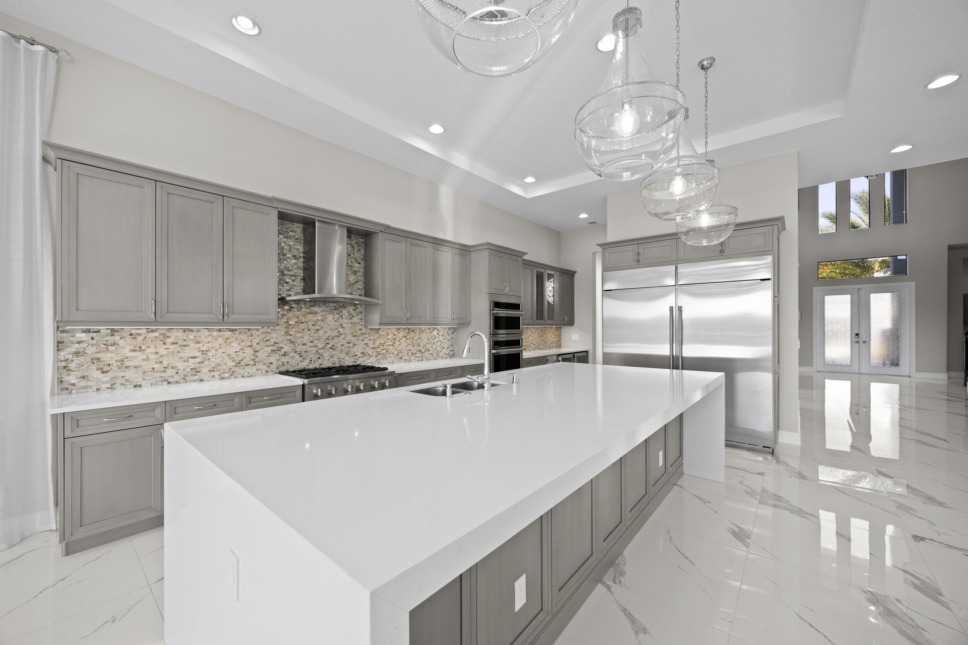 Splendidly designed and adorned with elegant details throughout, this 5 Bedroom, 5 Full and 1 Half Bath Pool home, with split 2-Car and 1-Car Garages, offers a balance of formal and informal living. The magnificent two-story Foyer greets you with grandeur and elegance. In front of the staircase is the entrance to the Den, where you'll cozy up to the fireplace with a book and a drink from the beverage cooler. Between the Den and Garage, you'll find the Half Bath and First Floor Laundry Room. Further into the home, the Dining Room, with expansive triple windows, creates a bright and welcoming area for formal parties. The Island Kitchen is spacious and opens to the Living Room, which is highlighted with expansive windows showcasing the Beauty of Blue Skies and Florida Sunshine. The The Kitchen offers double 42" Refrigerators, Undercounter Ice Maker & Wine Cooler, a Gas Cooktop, and a gracious Walk-in Pantry. The Sun Filled Family Room with, a casual dining area and a triple slider is excellent for entertaining or enjoying movie night.