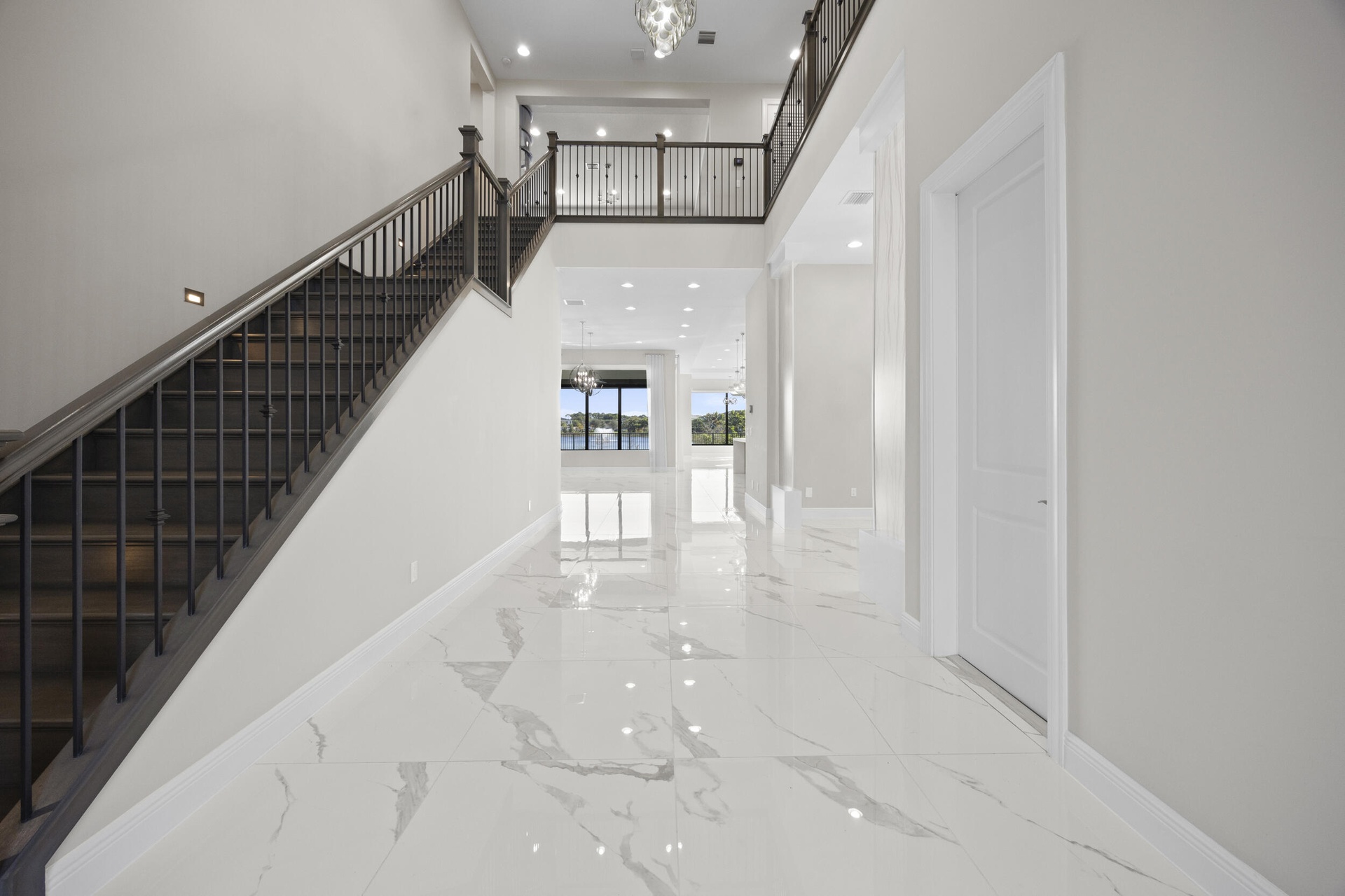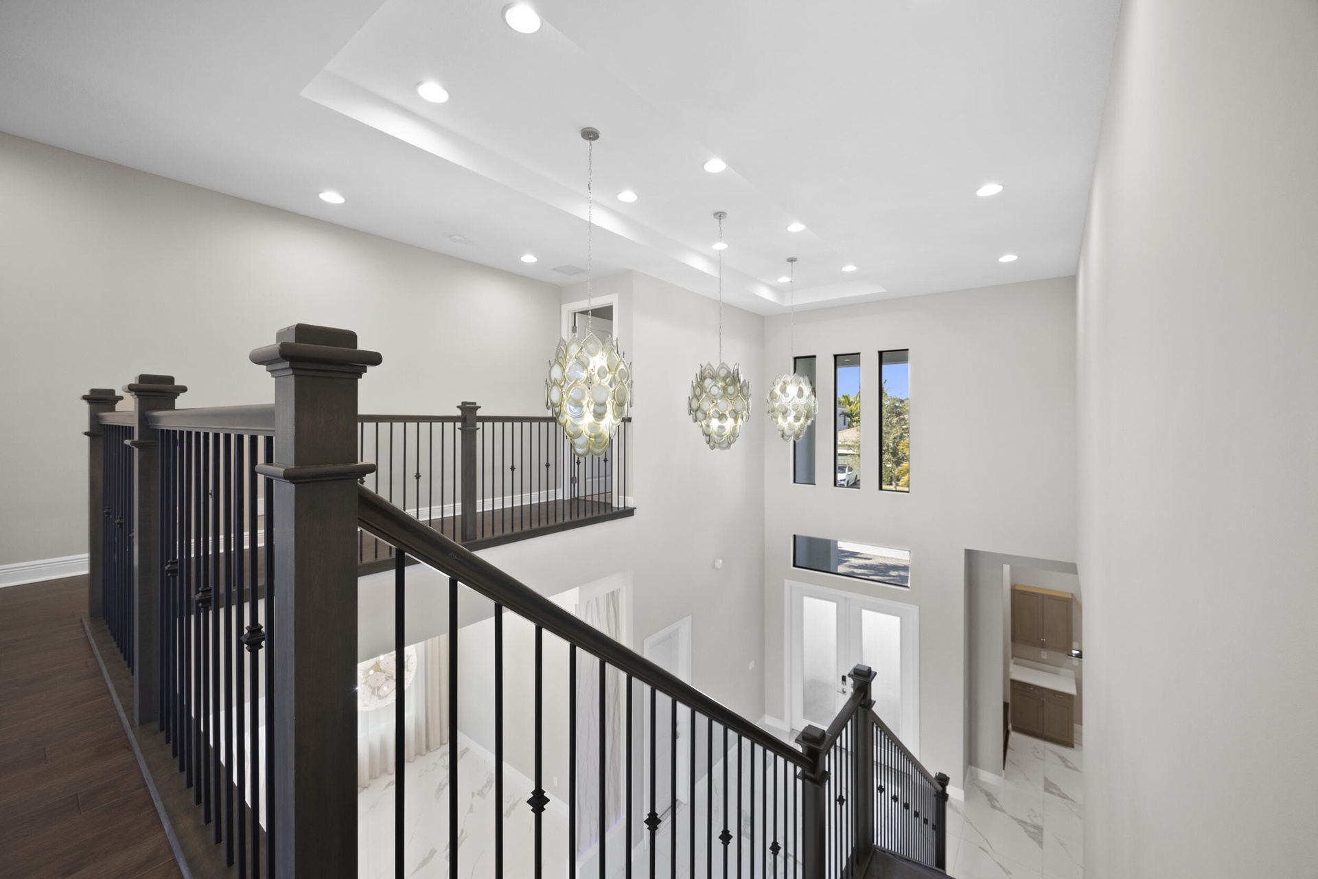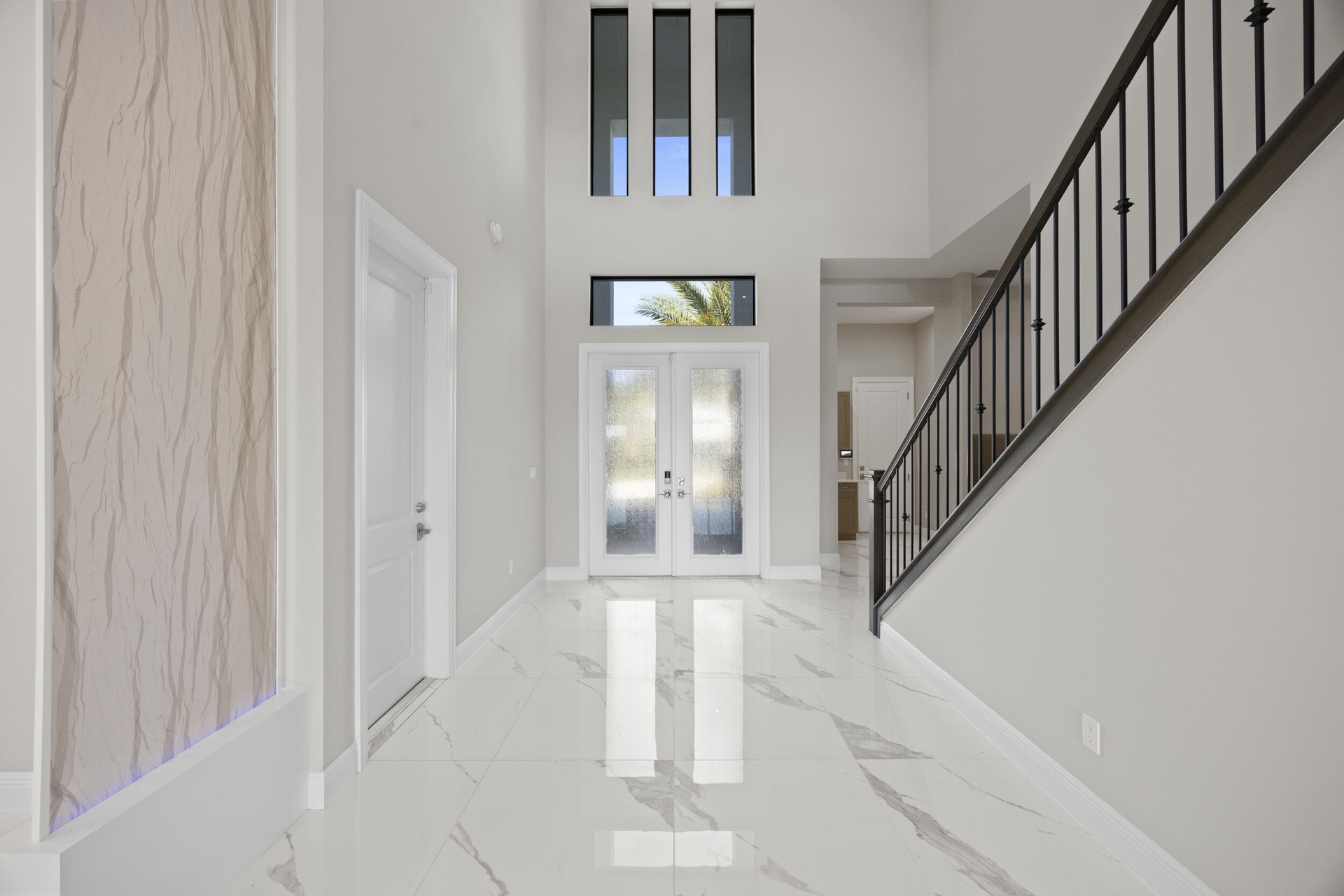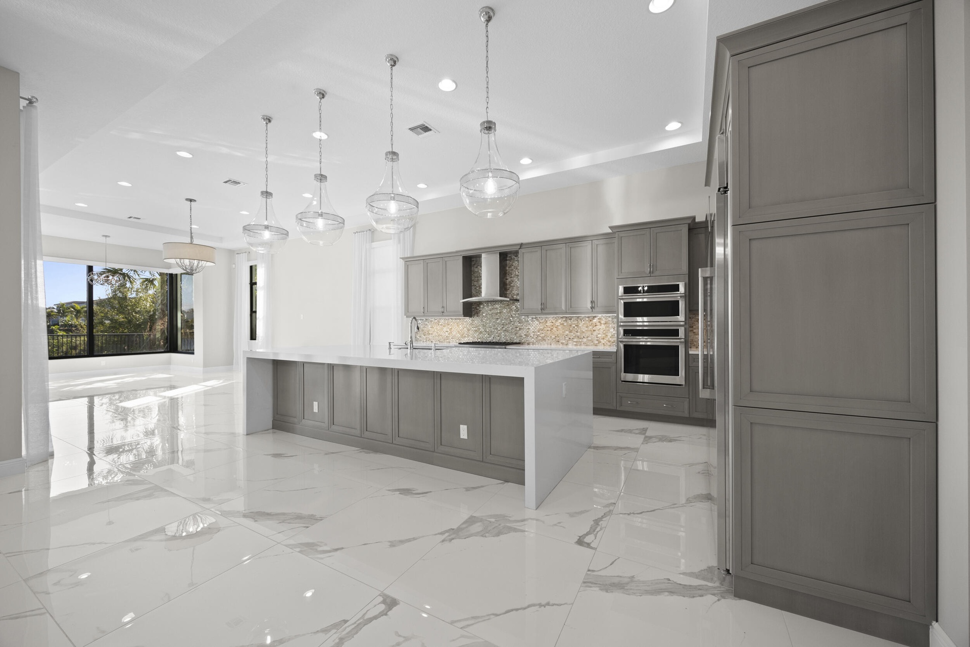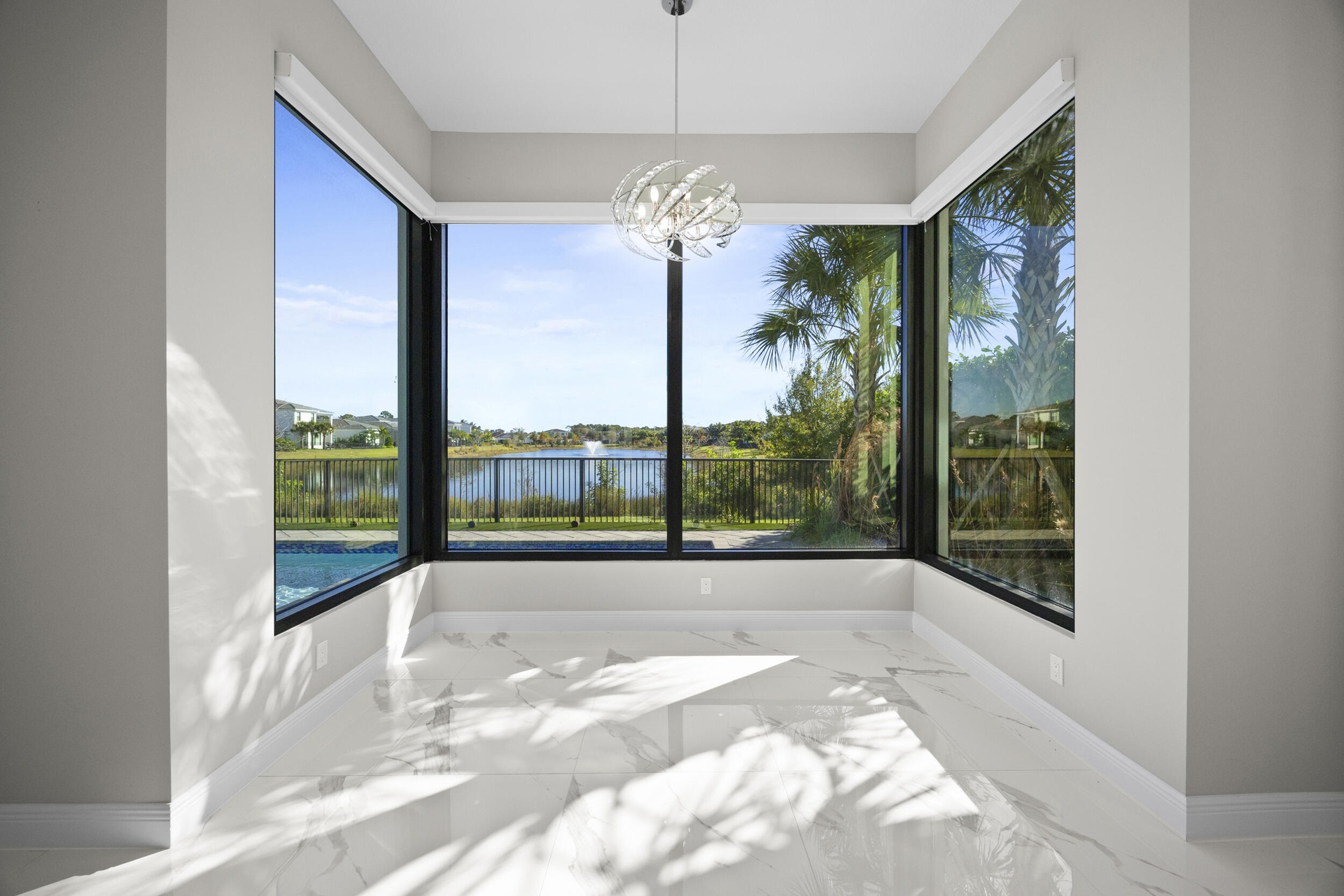 Splendidly designed and adorned with elegant details throughout, this 5 Bedroom, 5 Full and 1 Half Bath Pool home, with split 2-Car and 1-Car Garages, offers a balance of formal and informal living. The magnificent two-story Foyer greets you with grandeur and elegance. In front of the staircase is the entrance to the Den, where you'll cozy up to the fireplace with a book and a drink from the beverage cooler. Between the Den and Garage, you'll find the Half Bath and First Floor Laundry Room. Further into the home, the Dining Room, with expansive triple windows, creates a bright and welcoming area for formal parties. The Island Kitchen is spacious and opens to the Living Room, which is highlighted with expansive windows showcasing the Beauty of Blue Skies and Florida Sunshine. The The Kitchen offers double 42" Refrigerators, Undercounter Ice Maker & Wine Cooler, a Gas Cooktop, and a gracious Walk-in Pantry. The Sun Filled Family Room with, a casual dining area and a triple slider is excellent for entertaining or enjoying movie night.