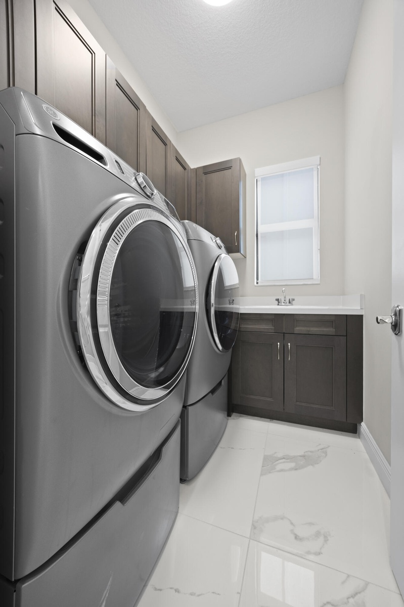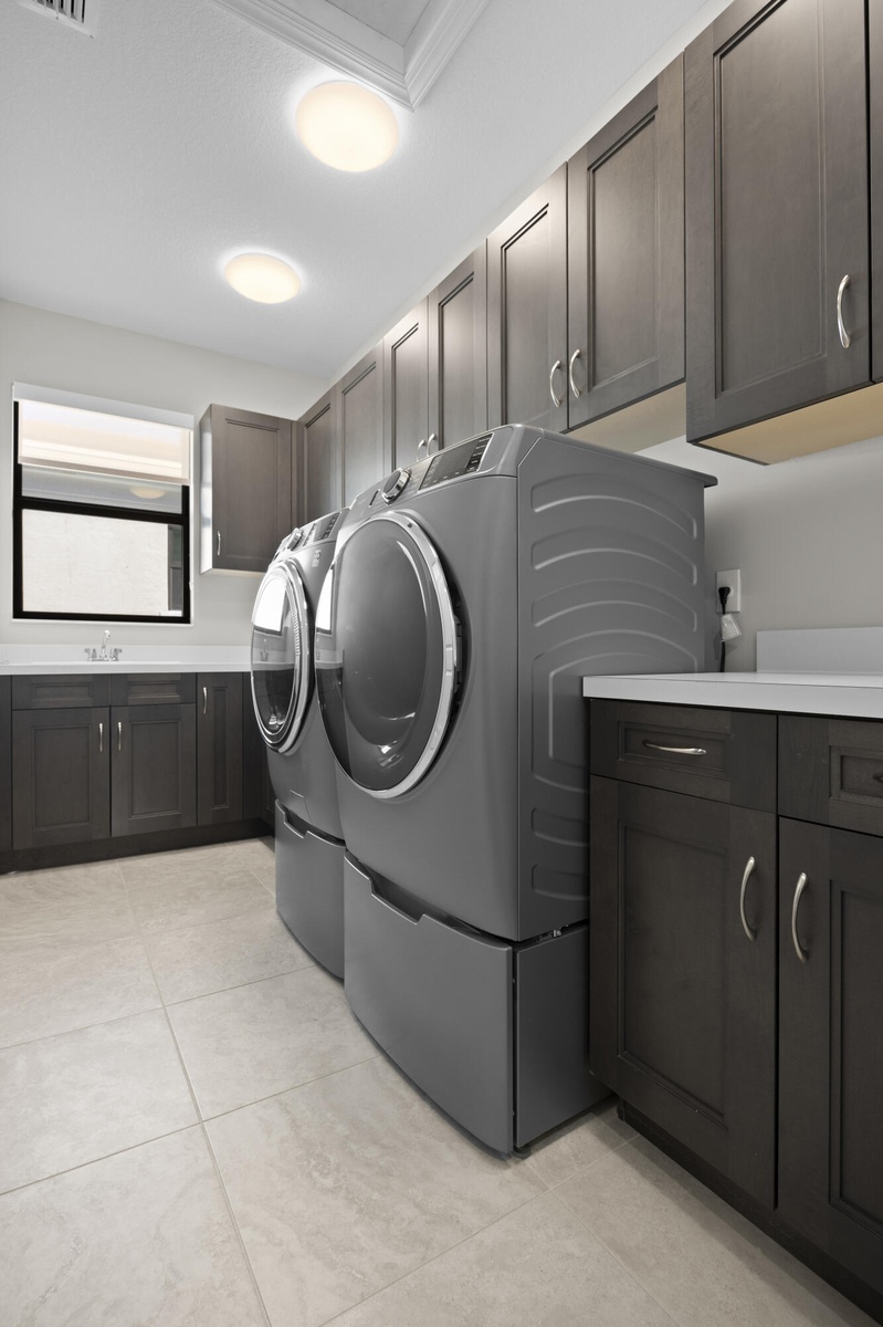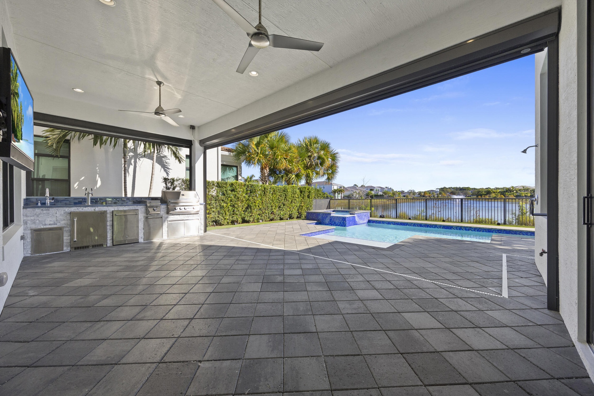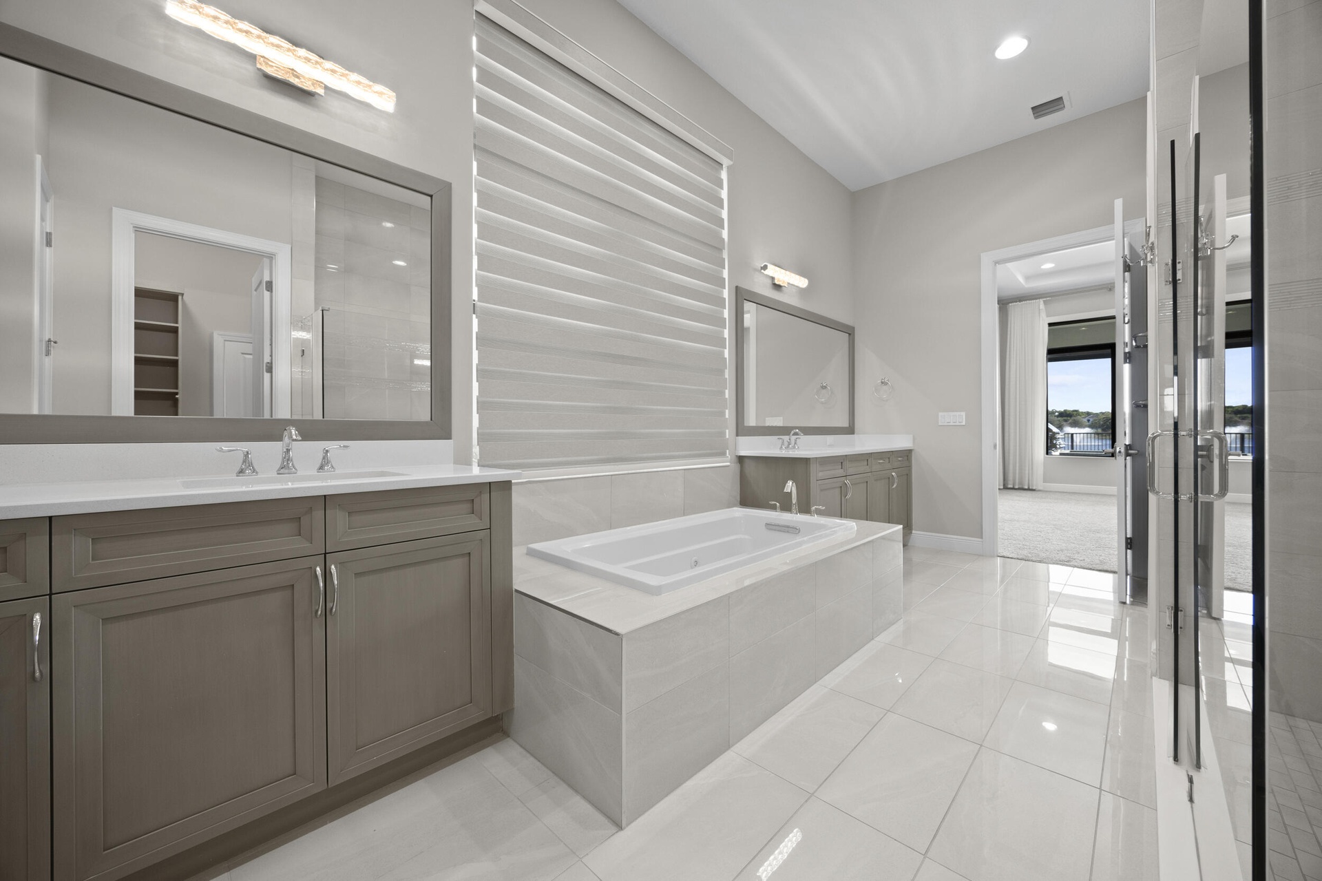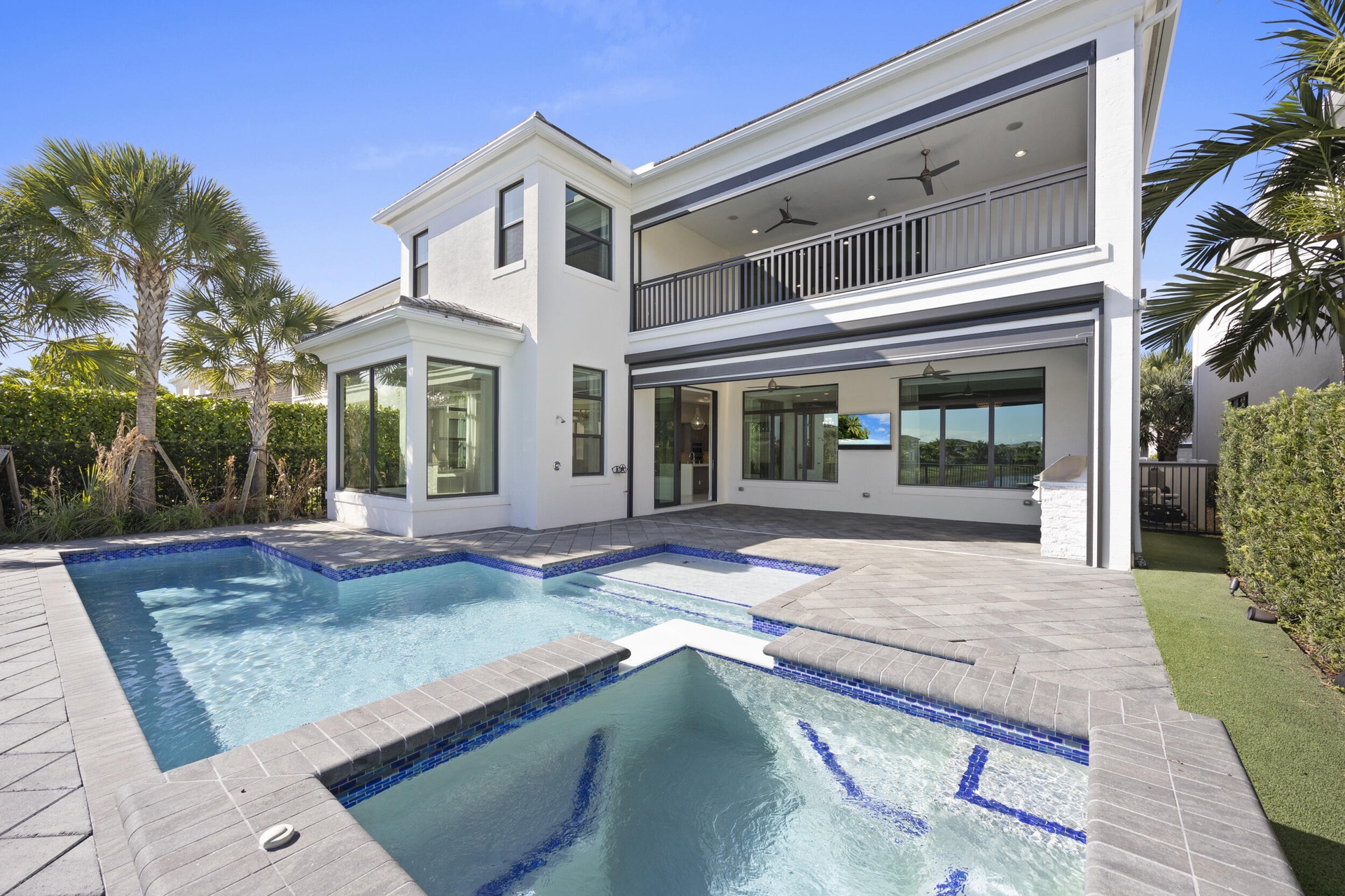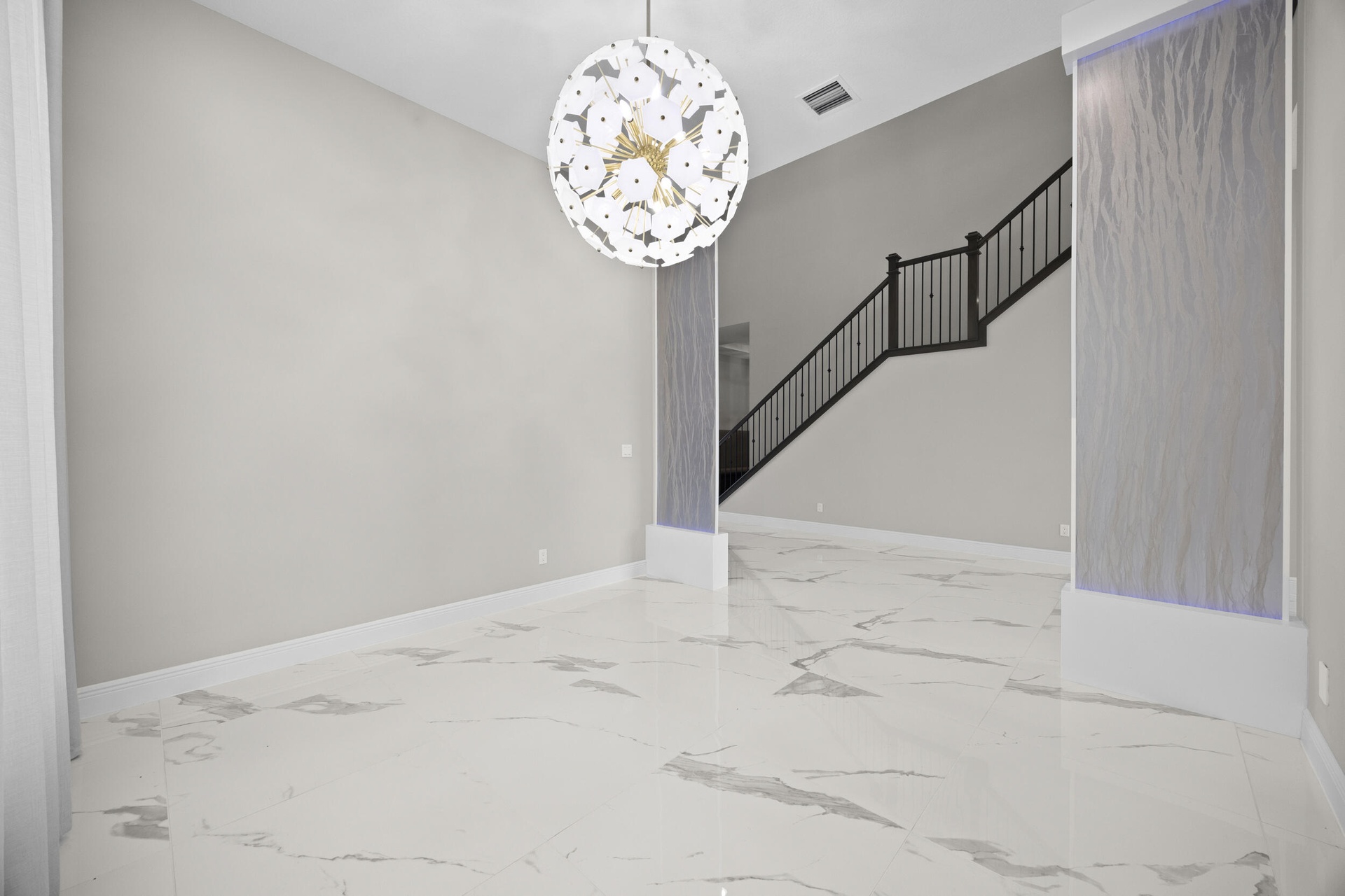 Splendidly designed and adorned with elegant details throughout, this 5 Bedroom, 5 Full and 1 Half Bath Pool home, with split 2-Car and 1-Car Garages, offers a balance of formal and informal living. The magnificent two-story Foyer greets you with grandeur and elegance. In front of the staircase is the entrance to the Den, where you'll cozy up to the fireplace with a book and a drink from the beverage cooler. Between the Den and Garage, you'll find the Half Bath and First Floor Laundry Room. Further into the home, the Dining Room, with expansive triple windows, creates a bright and welcoming area for formal parties. The Island Kitchen is spacious and opens to the Living Room, which is highlighted with expansive windows showcasing the Beauty of Blue Skies and Florida Sunshine. The The Kitchen offers double 42" Refrigerators, Undercounter Ice Maker & Wine Cooler, a Gas Cooktop, and a gracious Walk-in Pantry. The Sun Filled Family Room with, a casual dining area and a triple slider is excellent for entertaining or enjoying movie night.