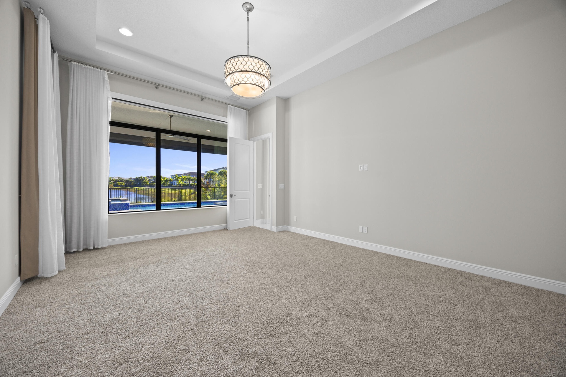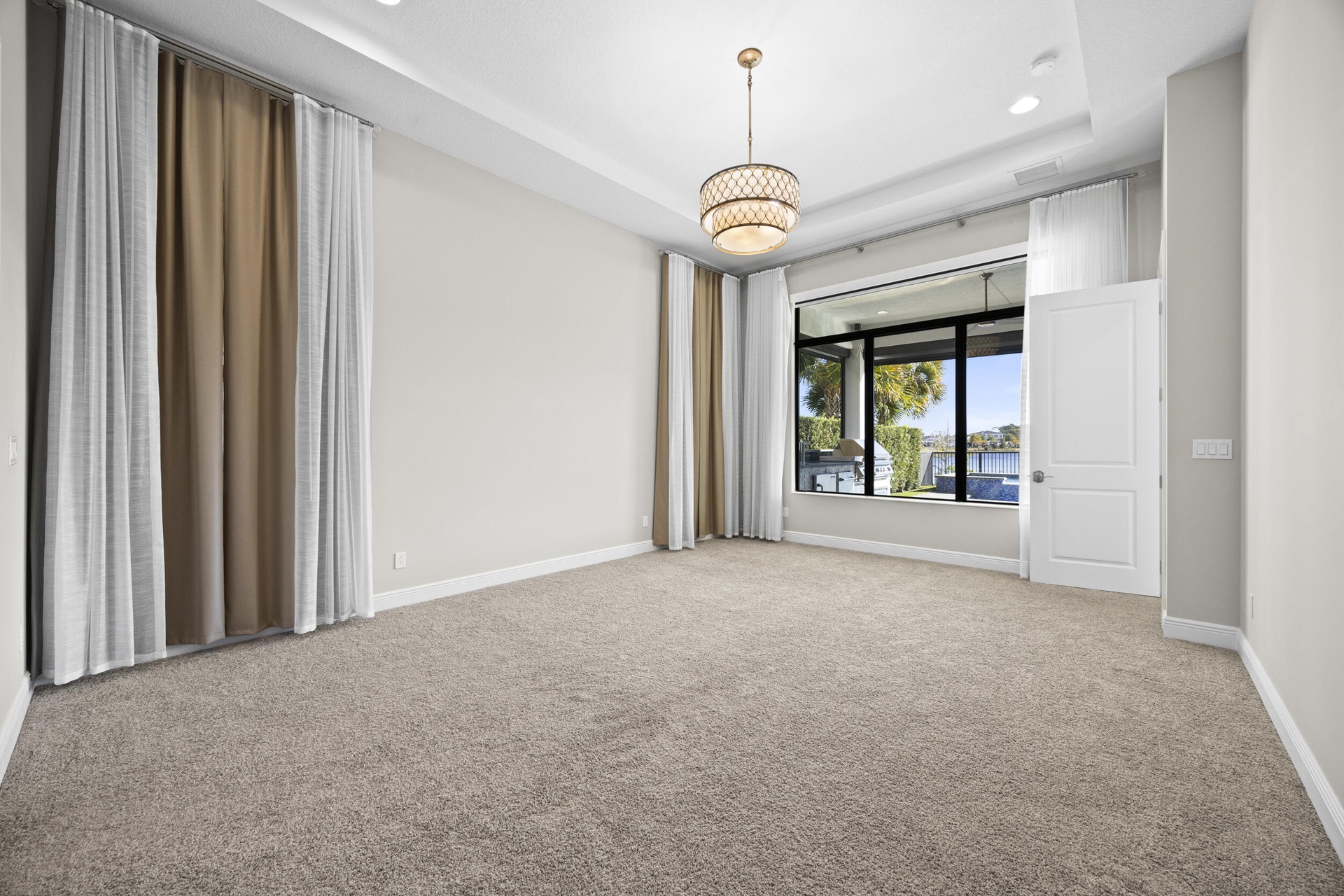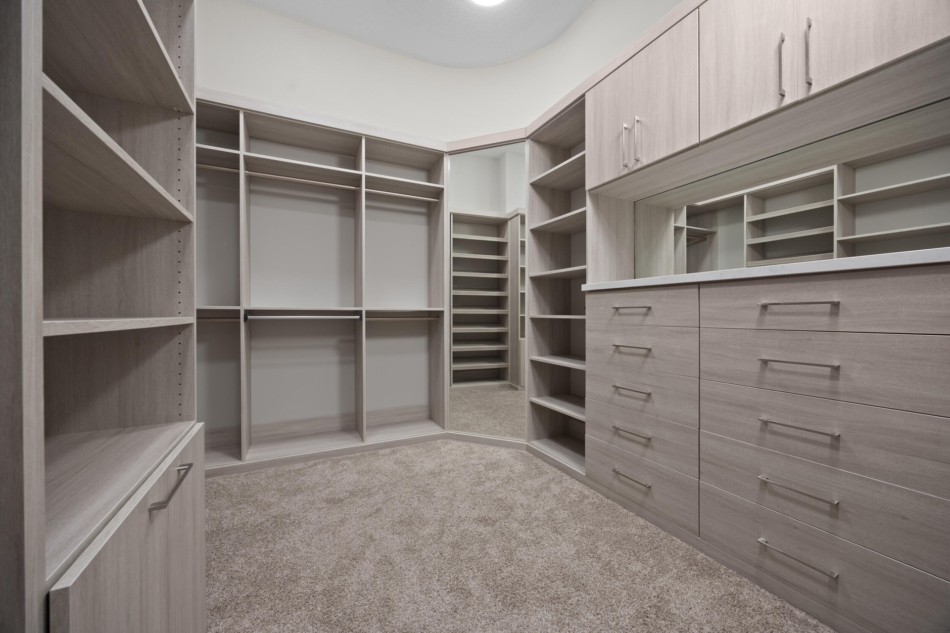 The Magnificent Owner's Suite is located on the first floor, with large windows overlooking the Lanai, Pool, Spa and Beautiful Lake where you'll watch the Poetic Mating Dance of the Sandhills Cranes. The Owner's Bath has dual vanities, a large jetted soaker tub, and a walk-in shower. The generous Walk-in Closet is complete with under stair storage.