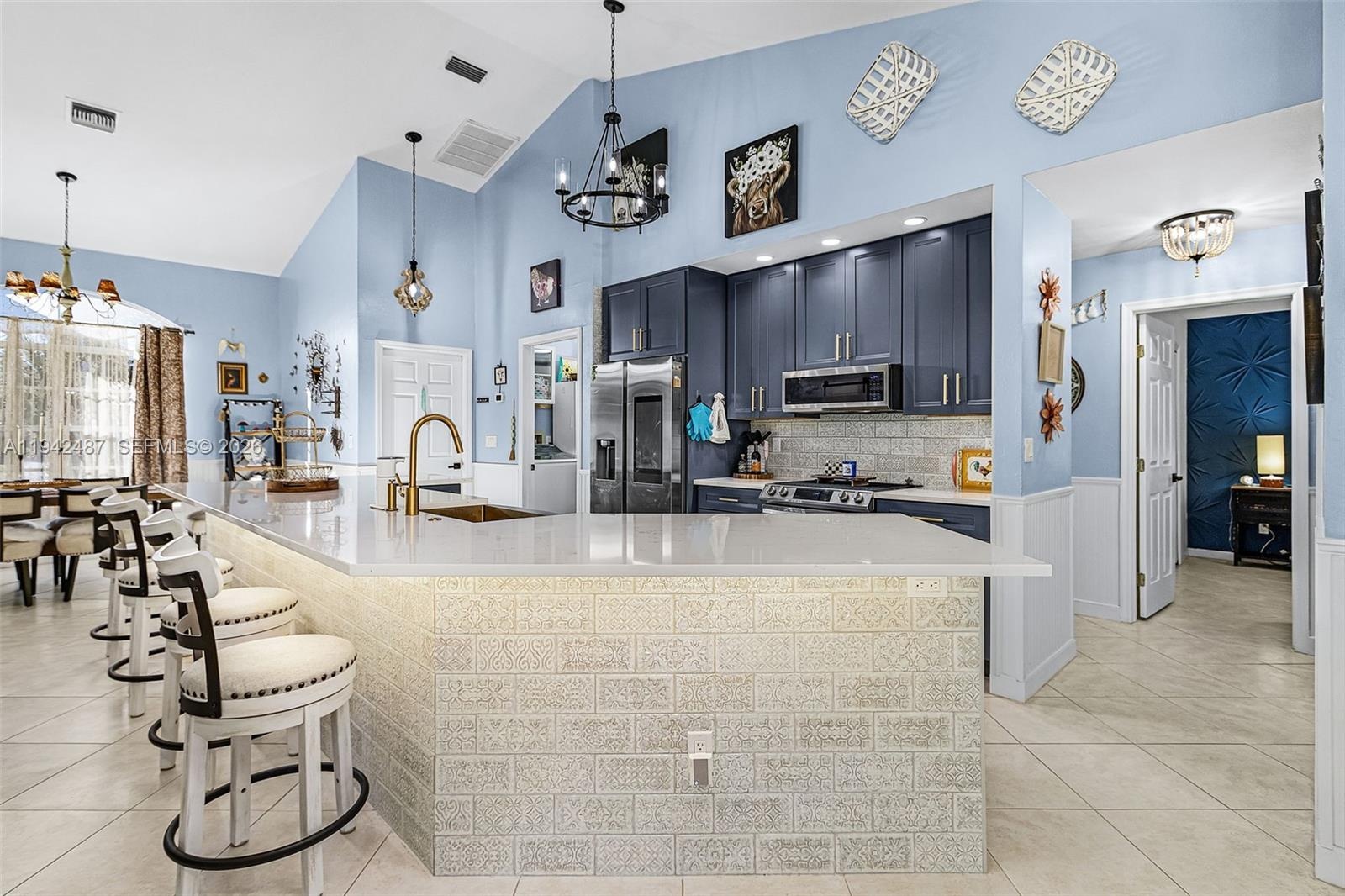 This move-in-ready home may be sold fully furnished/turnkey for an additional price. Recent updates include a new roof, brick-paver driveway, and an elegant double-door entry with a screened sitting area. Inside, you’ll find tile flooring throughout, custom trim work, and a bright open layout. The kitchen features a large quartz island, stainless steel appliances, ample cabinetry, and modern finishes.