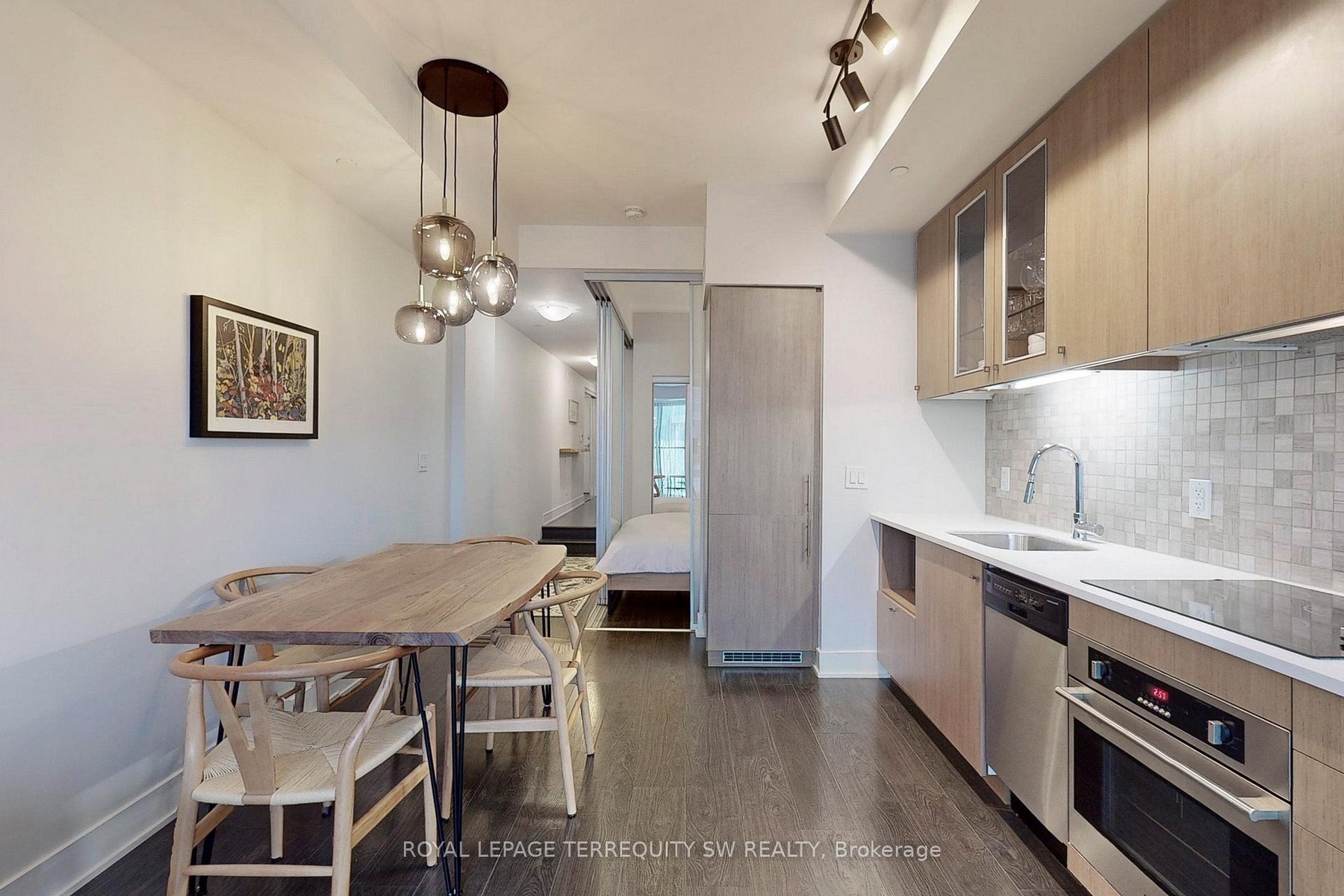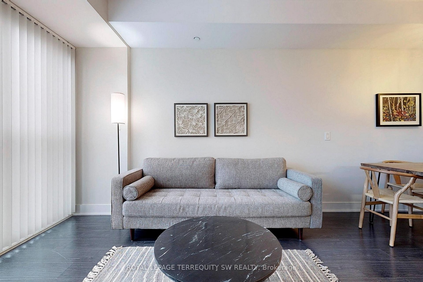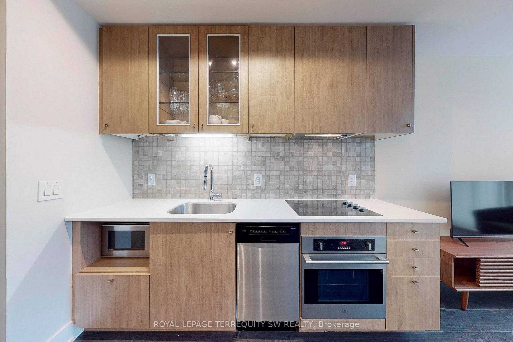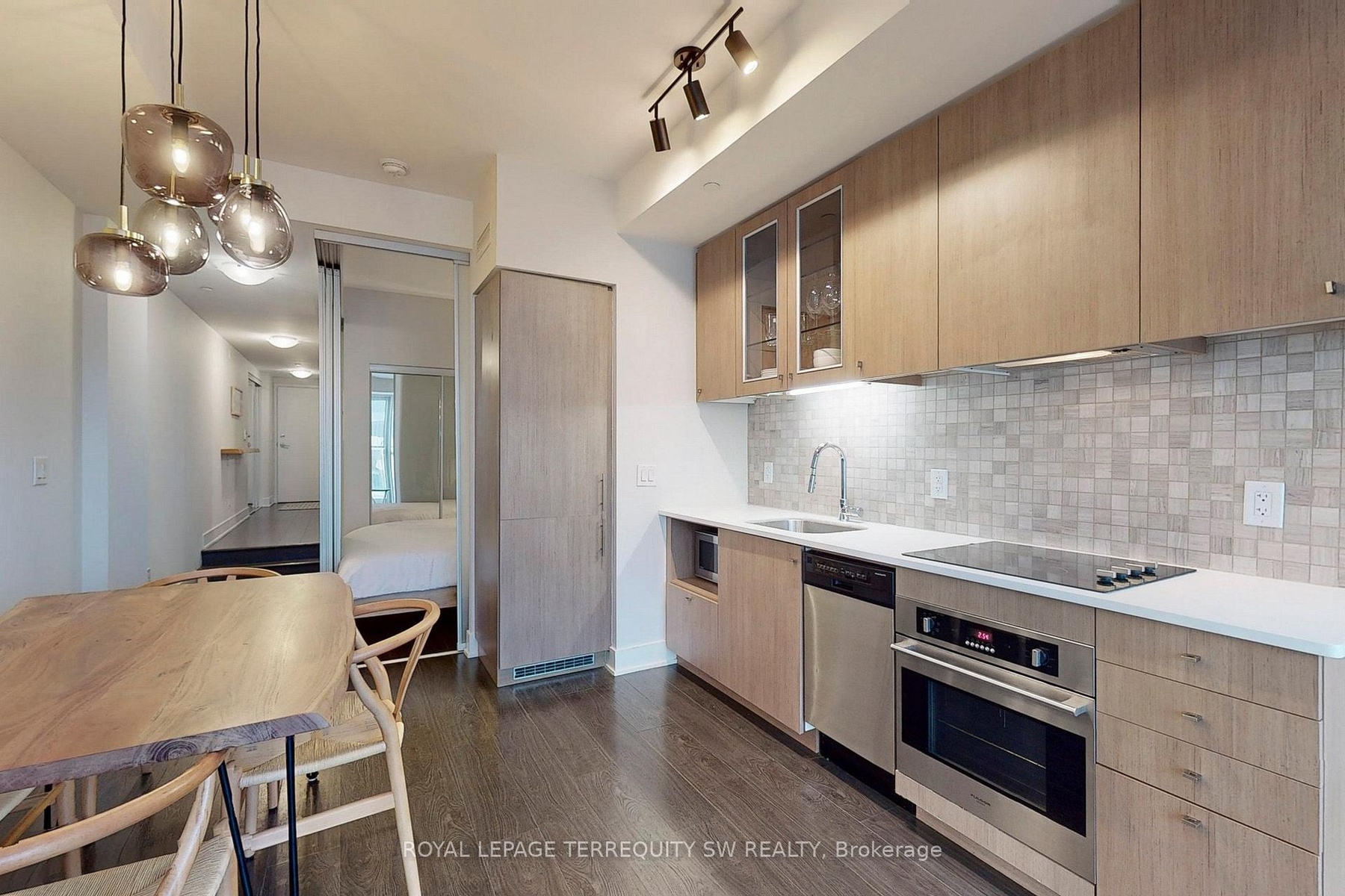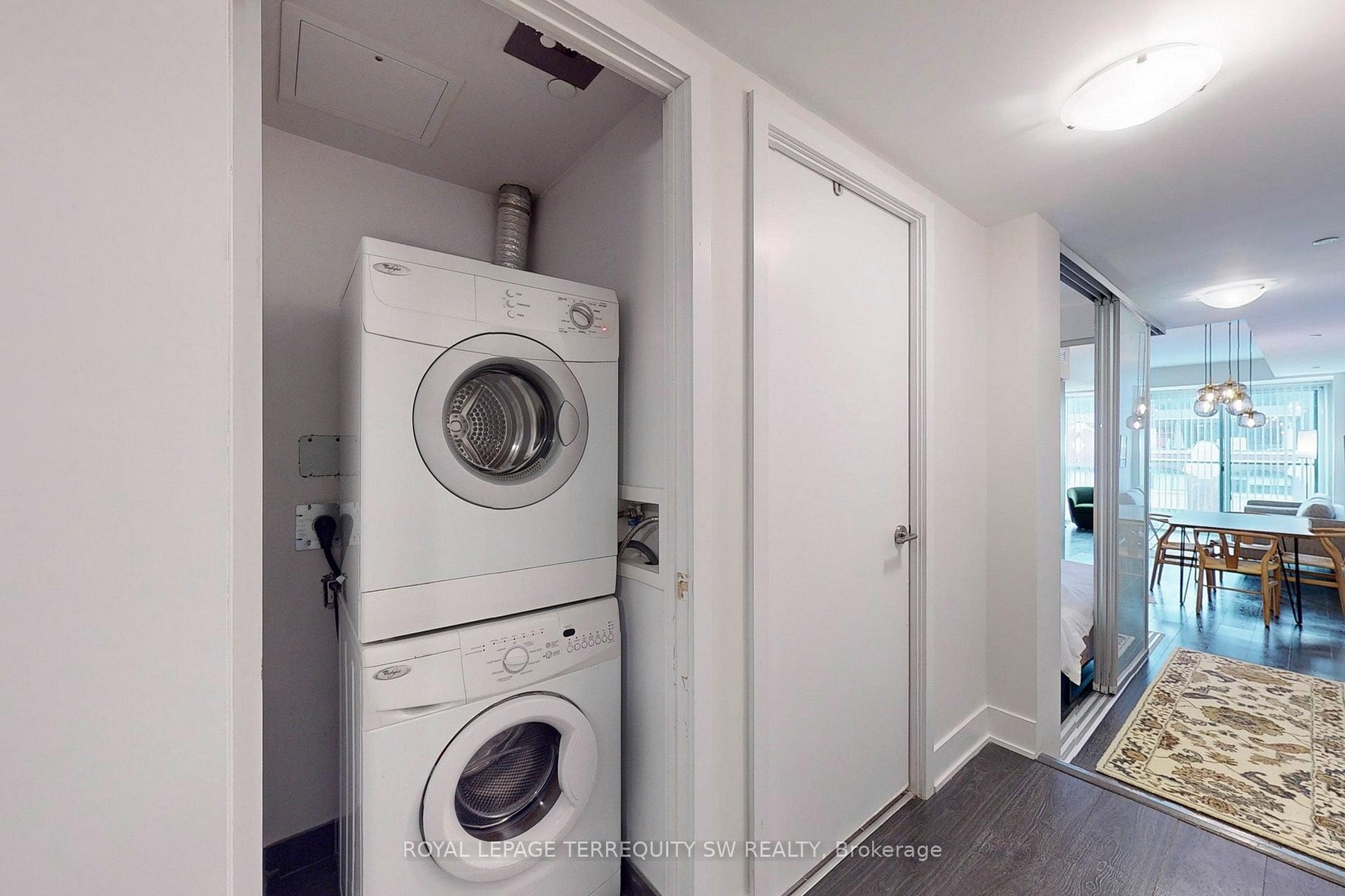 **Rent includes Heating/Cooling/Hydro/Water/ Fully Furnished with linens/cutlery/and appliances - enjoy peace of mind with fixed monthly cost of living!! Perfect for corporate stays as well!!!** Welcome to the nexus of Toronto's hottest neighbourhoods! Sophisticated living awaits in this Fully Furnished south facing suite. Fully refreshed & completely turnkey with modern furnishings & contents. Premium appliances from FULGOR, including flattop cooking range & built-in oven, panelled fridge, & built-in dishwasher. Whirlpool front-load stacked laundry. 3-pc washroom w/spa-like rainfall shower head & wash wand. Updated flooring & repainted. Bedding, utensils, flatware, furniture (including TV) & artwork included. Literally nothing to do but land in the door and put up your feet! Amenities include a gym & concierge. Stepping outside places you steps away from The Well, King St West, Shopping, Dining, Restos, & Parks. Mins to Billy Bishop Airport / Financial District / Theatre District / Queen West. Pack your bags its moving time!!!