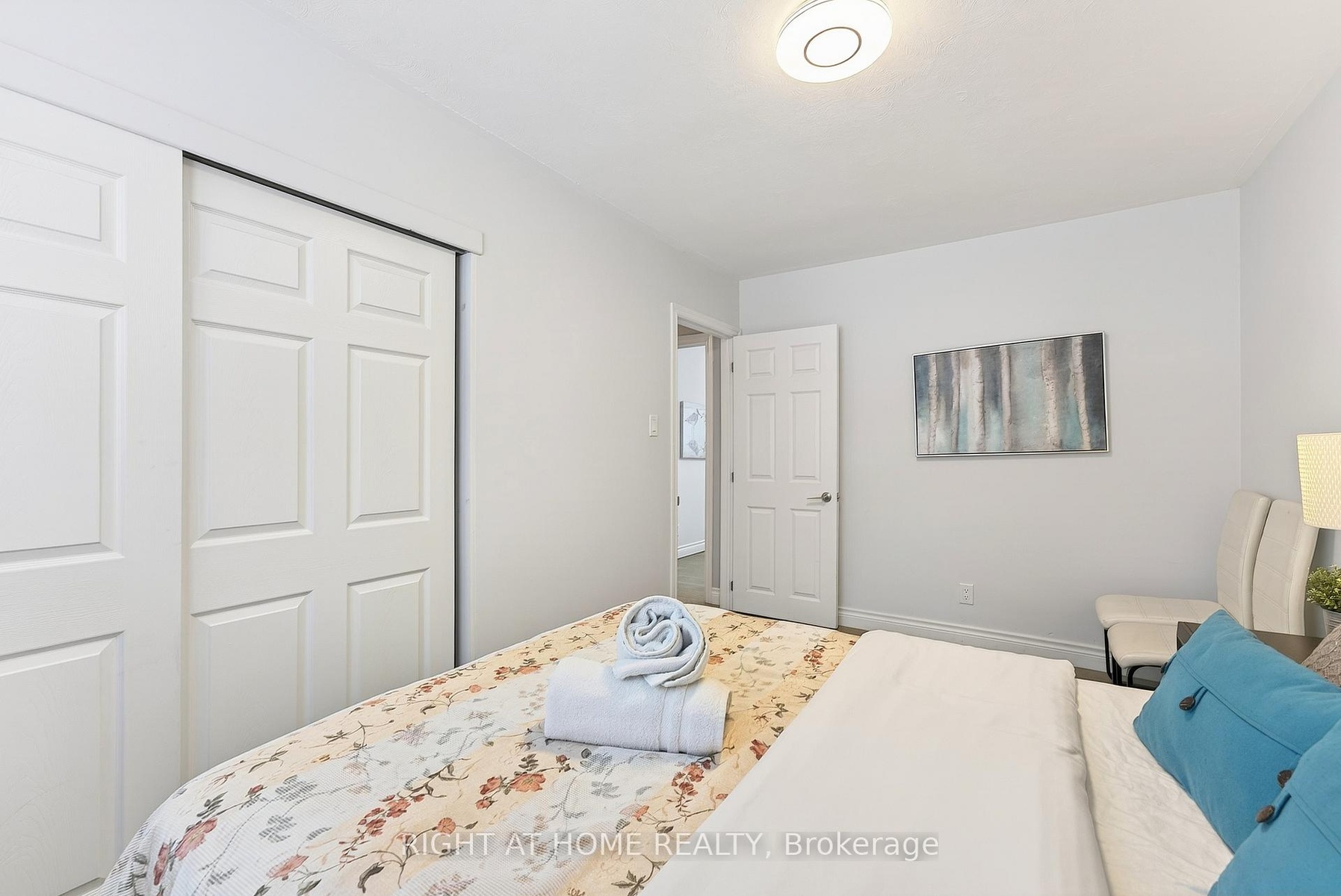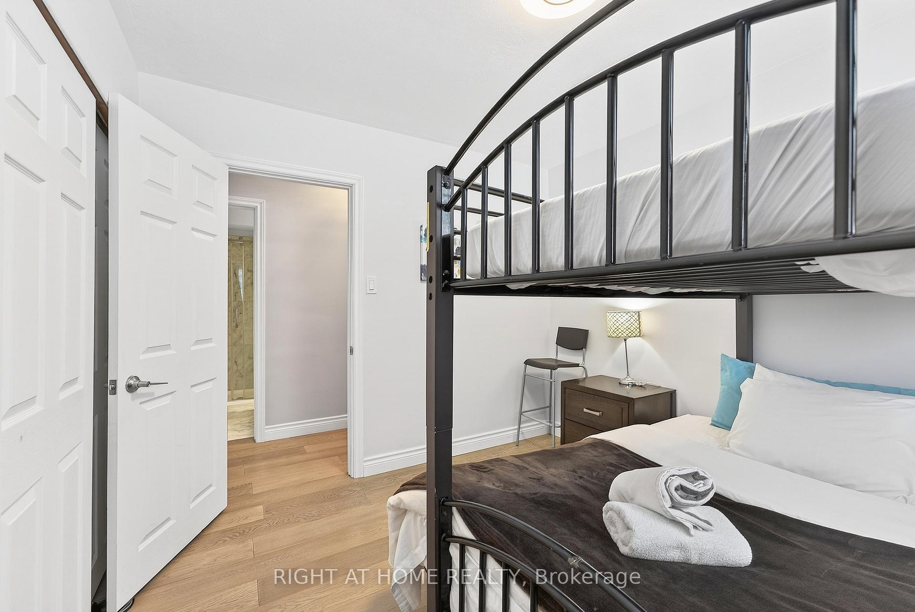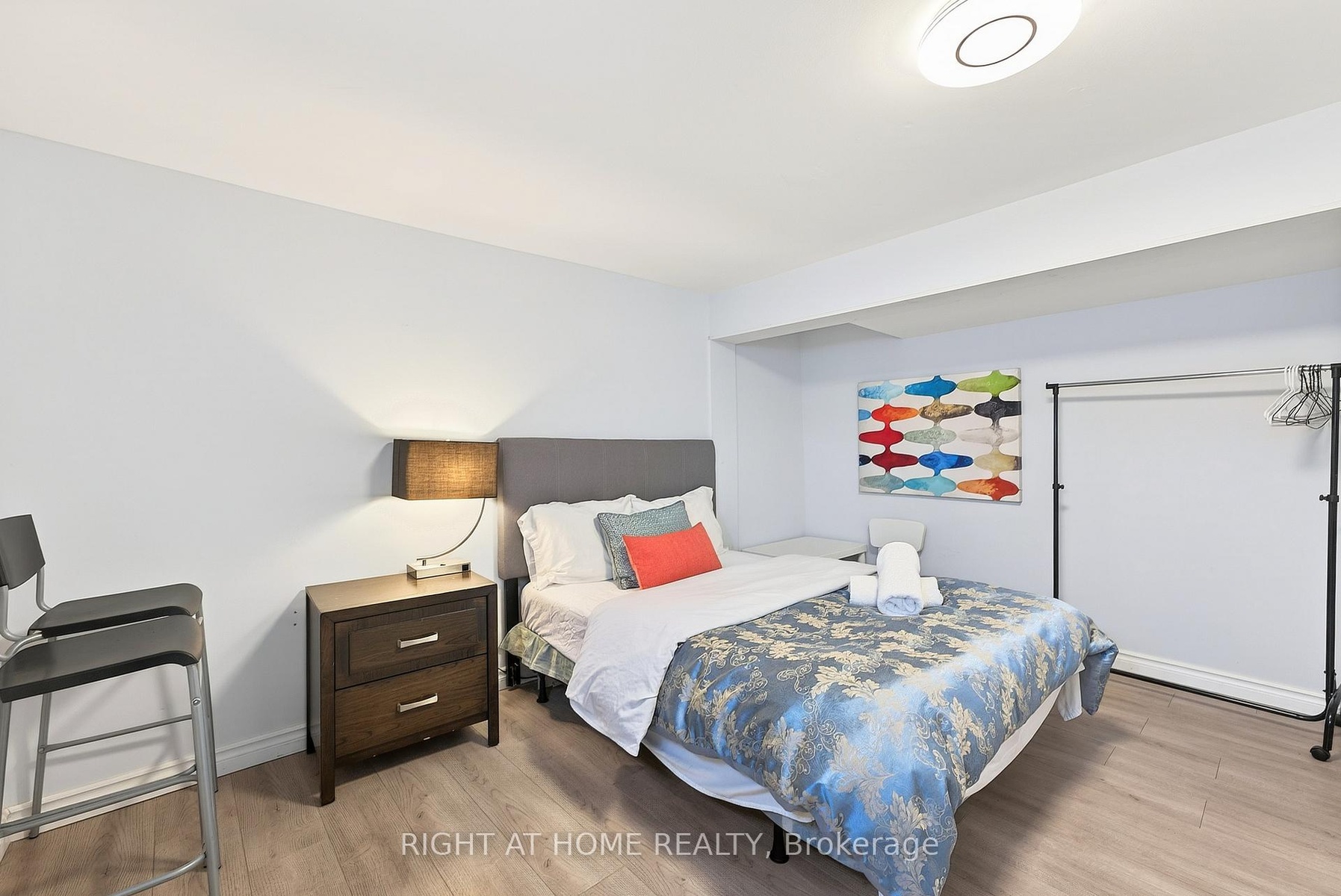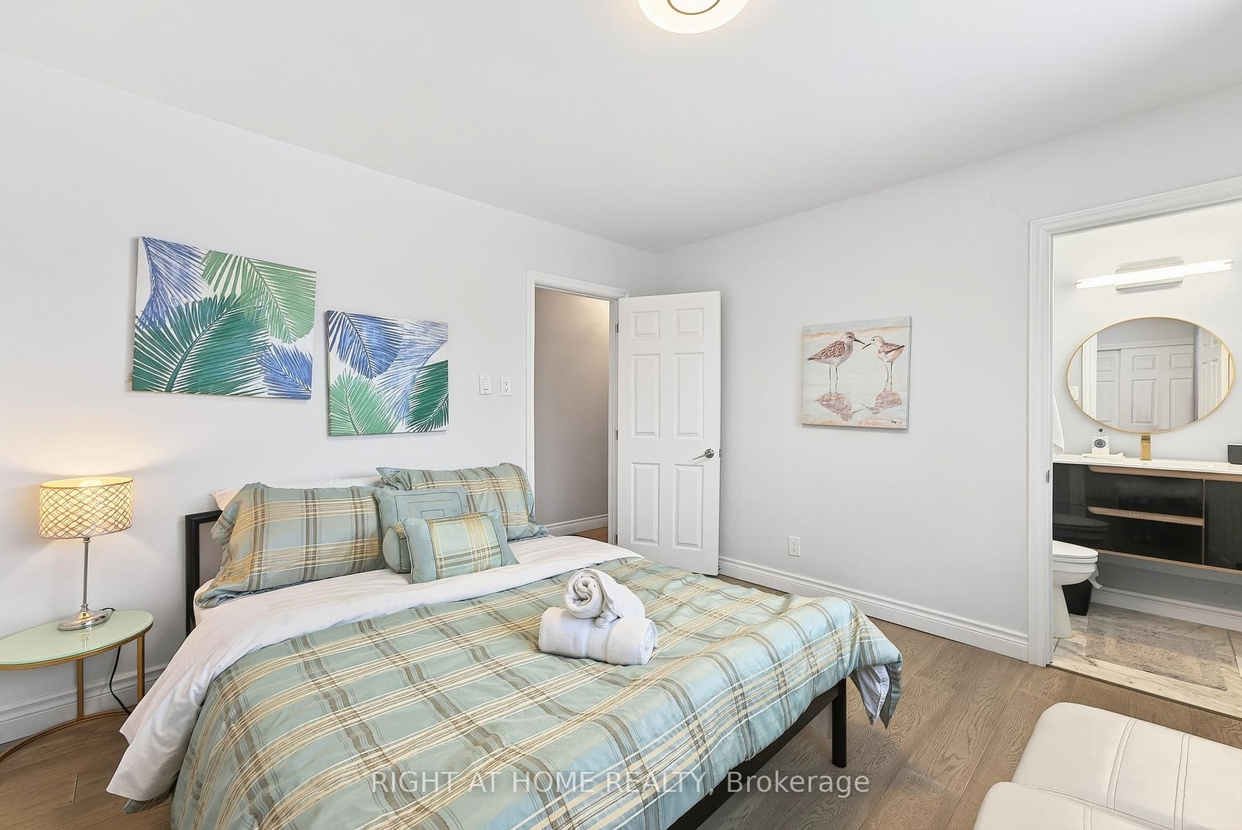 FULLY FURNISHED W/ TOP TO BOTTOM RENOVATION! | Experience luxury living in this fully renovated, top-to-bottom bungalow located on a peaceful, quiet street. This sun-drenched beautiful bungalow home comes fully furnished and professionally decorated, offering a seamless immediate possession.Enjoy an open-concept layout featuring gleaming hardwood floors, a spacious living area, and a modern kitchen overlooking your private, fenced backyard. The primary suite includes a private 2-piece ensuite for added comfort. The other full bathroom with walk-in shower & beautiful vanity is comfortably shared with other bedrooms on this floor. The finished basement expands your living space significantly, offering a large family room, a second full bathroom, another bedroom, and massive storage.With a like-new furnace and roof (2021), AC (2024), HWT (2025), this home offers total peace of mind. Perfectly situated near transit, elite schools, and shopping, this is a rare, turnkey opportunity in a prime central neighbourhood. Just bring your suitcase! OPTION TO RENT UNFURNISHED AS WELL.