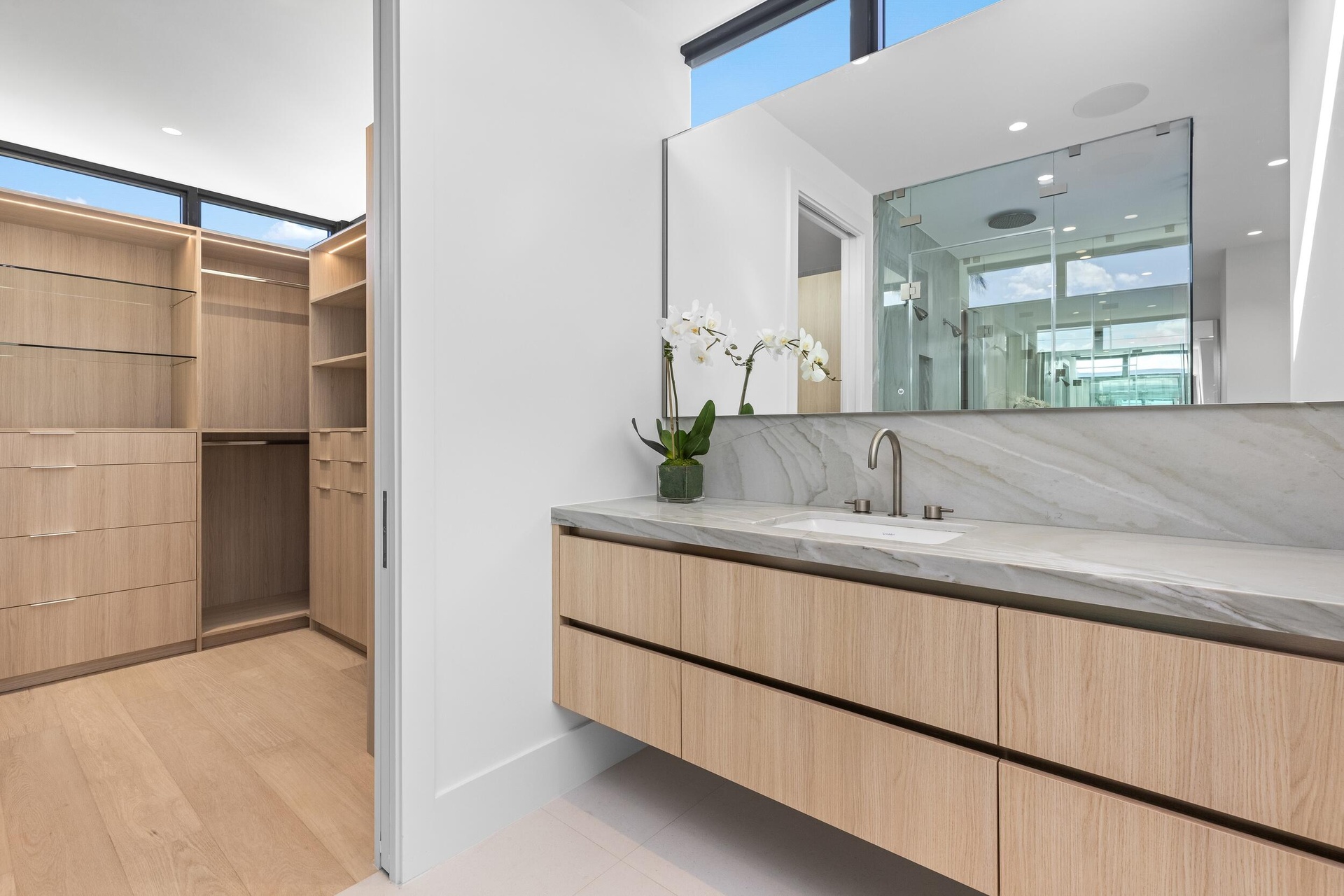 Villa Tempesta showcases a masterful contemporary aesthetic defined by clean architectural lines, dramatic scale, and meticulous craftsmanship. Upon entry, soaring ceilings and expansive glass invite natural light throughout, creating a refined yet inviting ambiance. Luxury finishes and custom details are evident at every turn, reflecting an uncompromising commitment to quality.