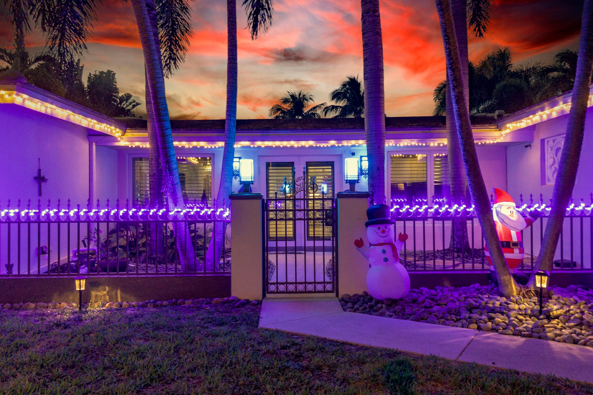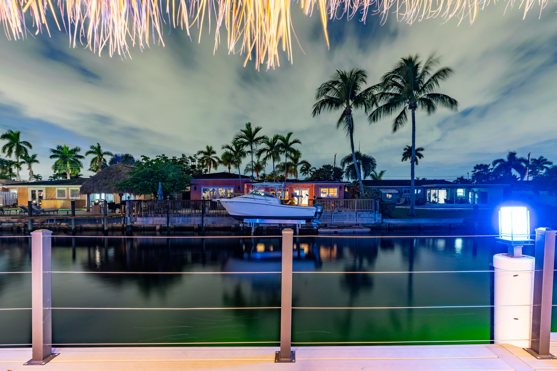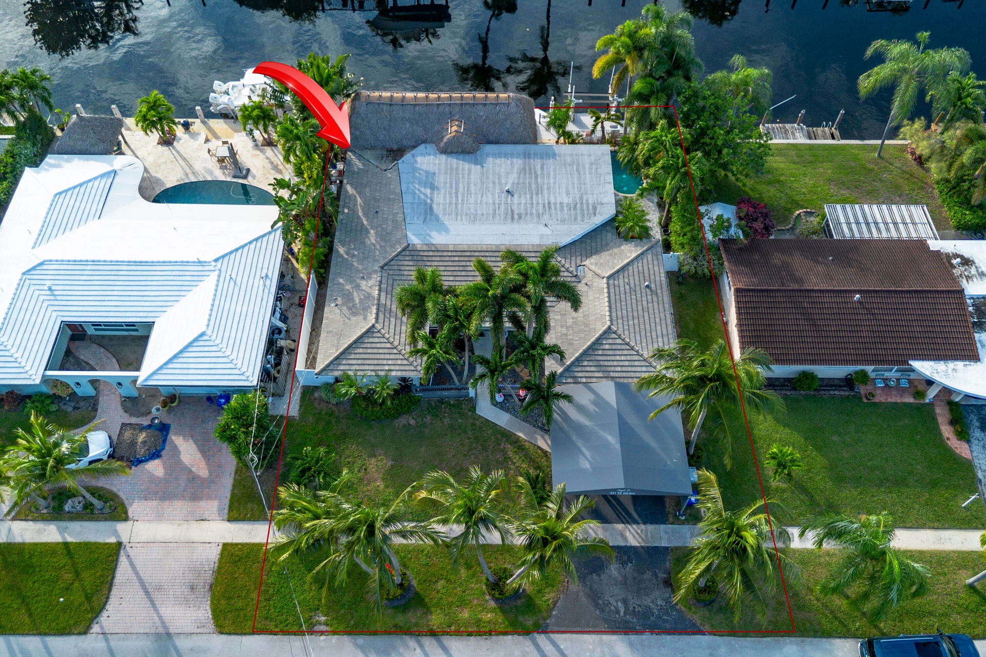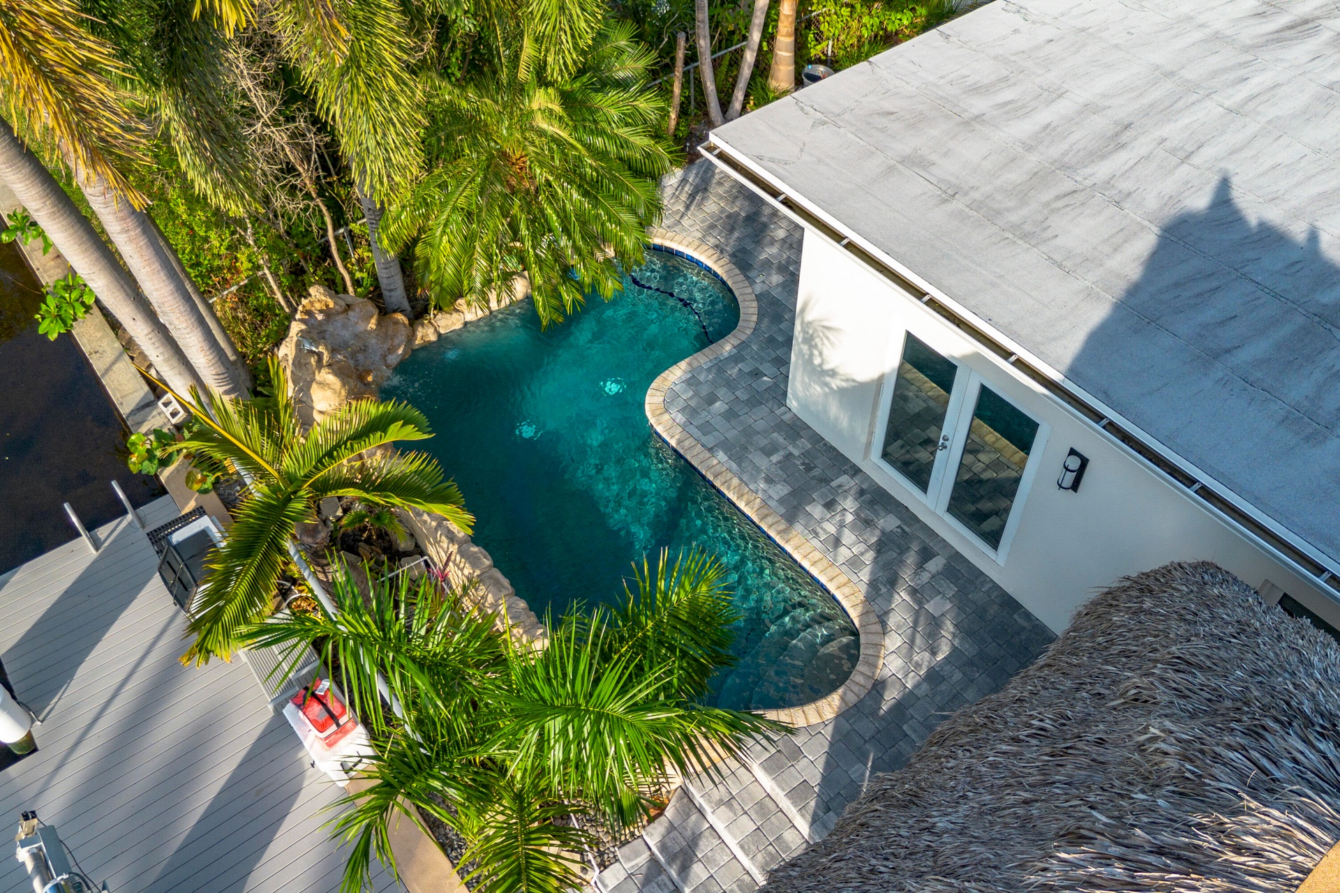 Step outside and experience a resort-caliber backyard oasis that defines Florida luxury living. A spectacular newly constructed tiki pavilion (2024)soaring 20 feet high and spanning over 1,050 square feet of covered entertaining spacesets the stage for unforgettable gatherings. No detail was overlooked: rope-wrapped columns, ambient accent lighting, and a fully equipped commercial-grade summer kitchen featuring dual refrigerators, beverage cooler, ice maker, Twin Eagle grill, flat grill, rotisserie, side-by-side burners, prep sink, storage drawers, and a dedicated condiment station.