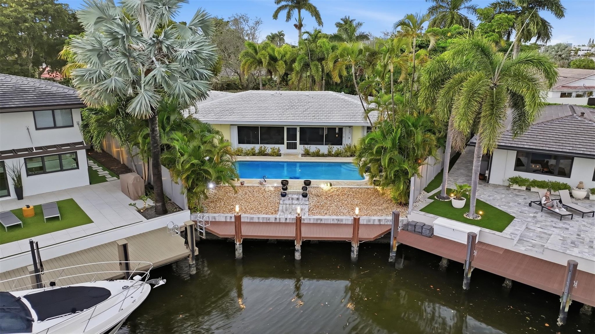 Discover waterfront living in this deep-water home located in Coral Ridge, one of Fort Lauderdale's most sought-after neighborhoods. This large corner lot boasts over a 1/4 acre with 40 feet of water, no fixed bridges, and ocean access. gaze out over your large, beautiful, sparkling blue pool, canal, and new composite dock. The house itself is beautifully maintained, but is waiting for some modern touches. Great waterfront views with seamless indoor and outdoor connectivity. The roof is 6 years old. Hurricane-ready with a whole-house generator. This residence offers the ideal setting for avid boaters and those seeking a true Fort Lauderdale lifestyle.