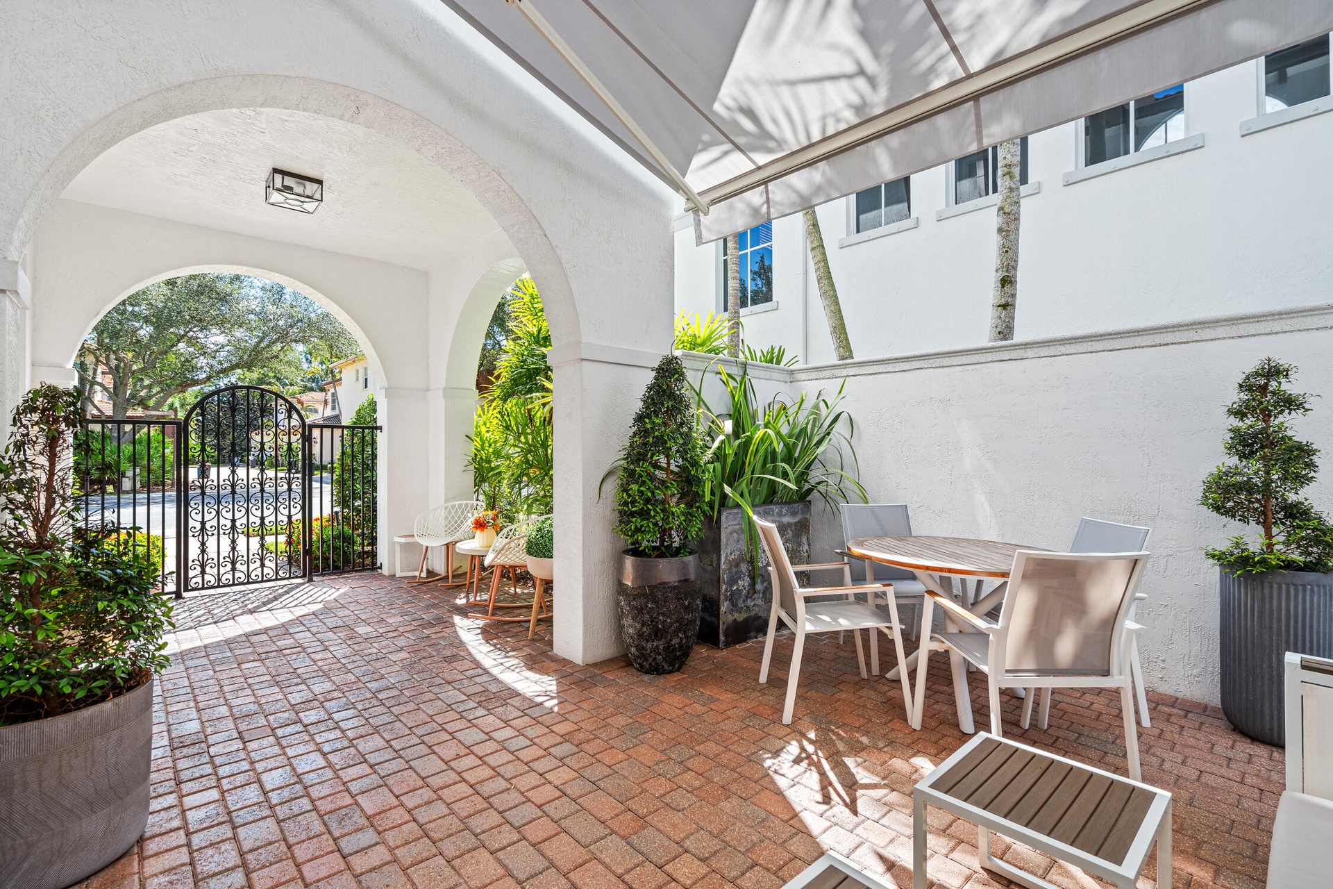 " Smart Home Features: Motorized and mechanically operated roller blinds integrated with the Sonos app for effortless control. Mechanical awning with remote control panel for outdoor comfort.