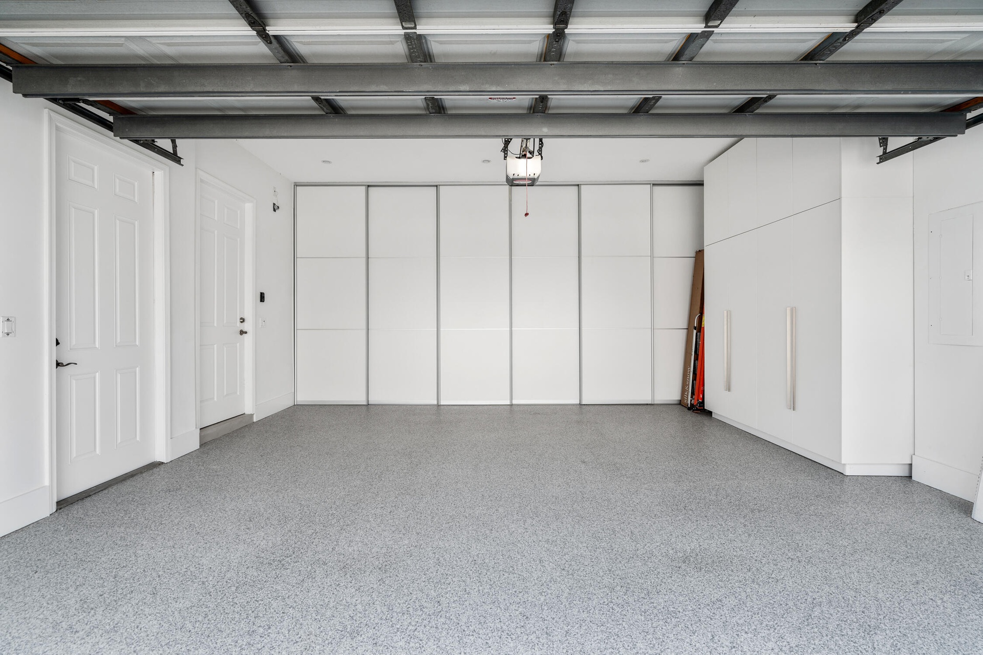 " Stunning Garage: Fully renovated with custom-built panels, storage cabinets, brand new EV charger and a durable polyaspartic floor coating.