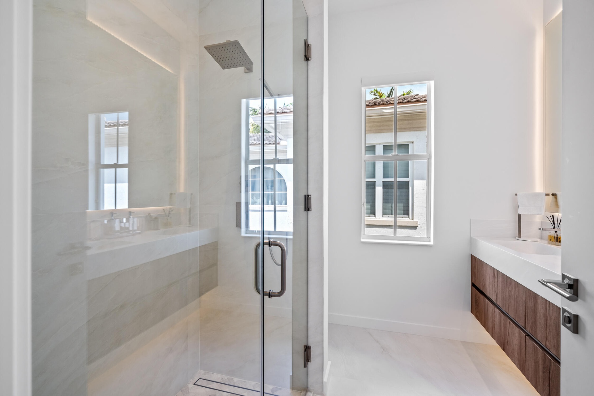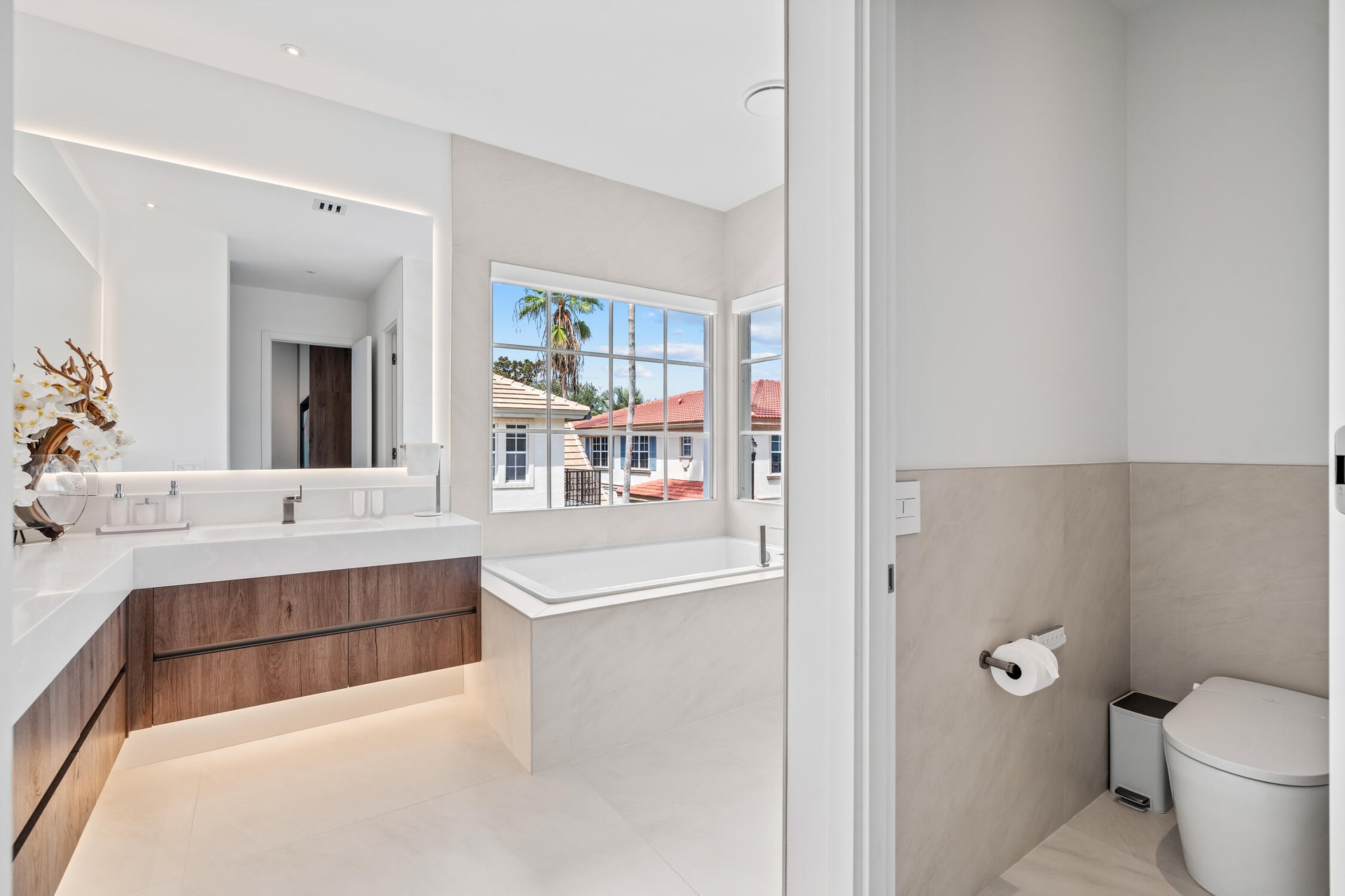 " Spa-Inspired Bathrooms: Fully renovated with large 48"x48" modern tiles, signature hardware, smart toilets, large custom mirrors with integrated lighting, floating vanities, and a show-stopping 72x42 whirlpool jacuzzi in the master bathroom.