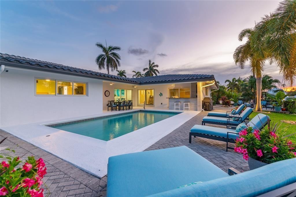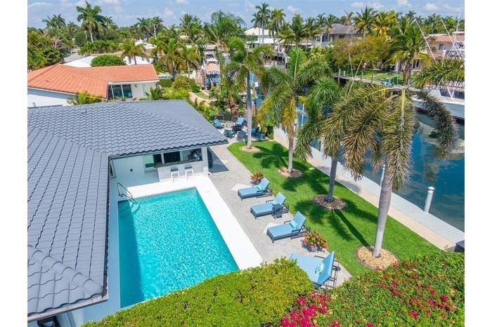 AVAILABLE FEB. 2026! FULLY FURNISHED TURN-KEY RESORT-STYLE BEACH HOUSE w/ 80’ of deep-water in sought after HARBOR VILLAGE!! Featuring a 20,000 lb boat lift 5 lots from the Intracoastal & MINUTES AWAY FROM THE INLET, the location is EVERY BOATERS DREAM! Designer finishes include NEW CHEFS KITCHEN, fully tiled bathrooms, wood look porcelain floors & expansive windows & doors that bring the outside in from every angle! MULTIPLE EXTERIOR ENTERTAINING AREAS offer covered dining room & wet bar as well as custom firepit retreat & private sunbathing deck! The oversize heated salt water pool, large grassed area, & full length dock complete the QUINTESSENTIAL S. FLORIDA BACKYARD! Impact windows & doors, natural gas HOME GENERATOR, & new A/C provide PEACE OF MIND! CLOSE TO THE BEACH & "A" SHOPPING!