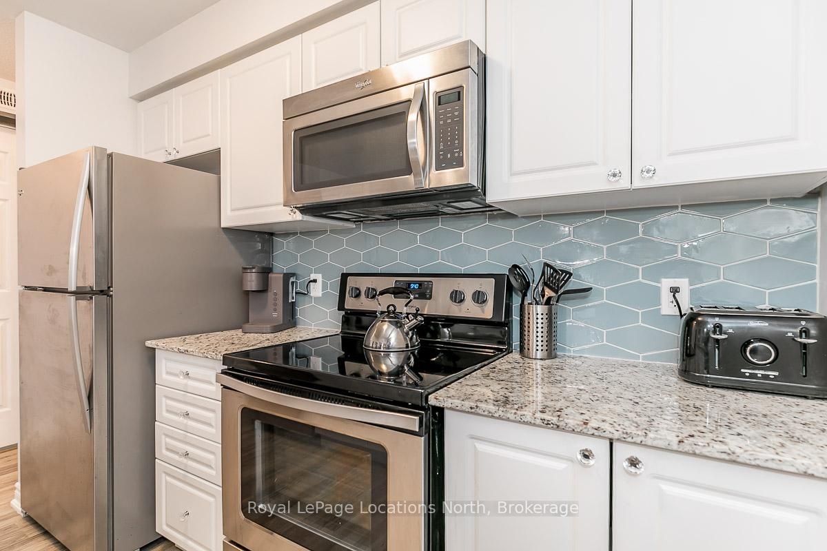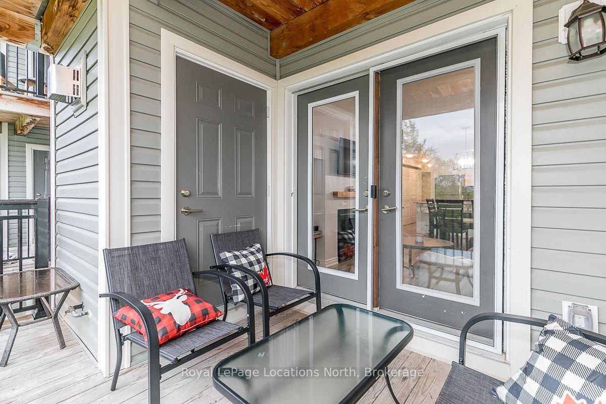 Furnished Annual Lease available at Wyldewood Cove! This charming one-bedroom, plus den, offers a cozy living space with stylish decor, granite countertops, and stainless steel appliances. Enjoy the convenience of main floor laundry and a gas fireplace for those colder nights. The den serves as an additional bedroom, with a door for added privacy. Step out onto your private terrace and enjoy breathtaking views of the Blue Mountain. The property offers a range of on-site amenities, including a year-round outdoor pool, fitness center, dock, pergola, and picturesque walking trails. With golf and skiing nearby, you'll never run out of activities to enjoy! A storage locker and one parking space are also included. Available April 1st.